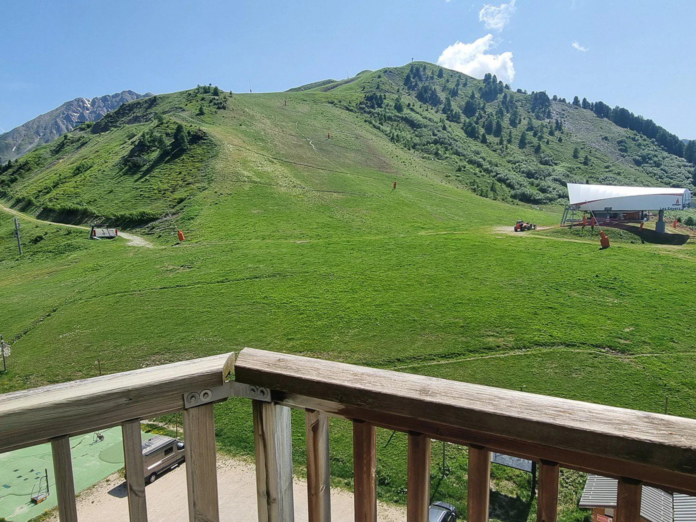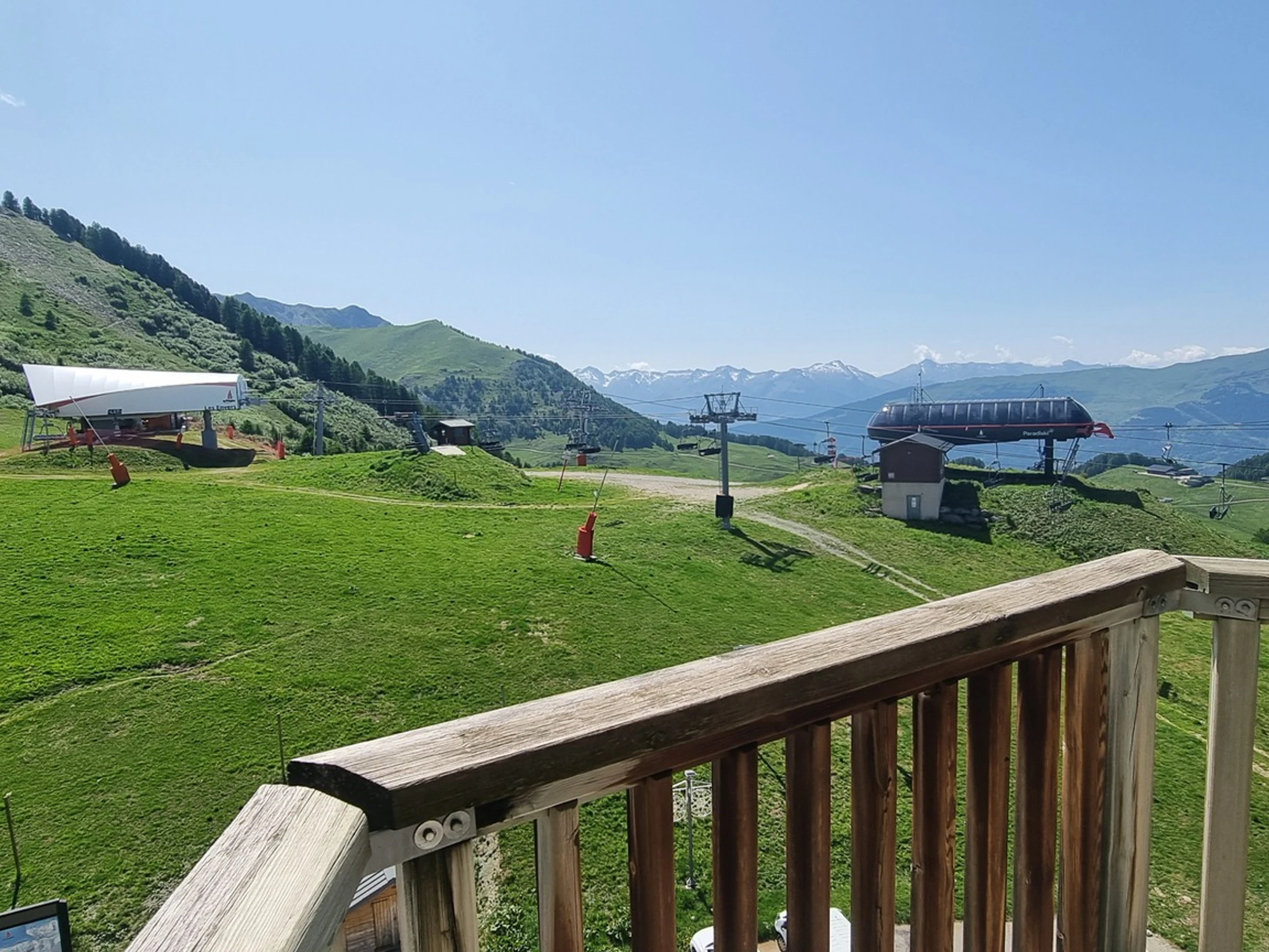 This studio is on level "N" of le Paquebot des Neiges and is accessible by the elevator "Diamant". It consists of a living room, a separate kitchen, a bathroom and a toilet not independent. Its South-facing balcony offers a nice view on the slopes of Aime 2000 resort.