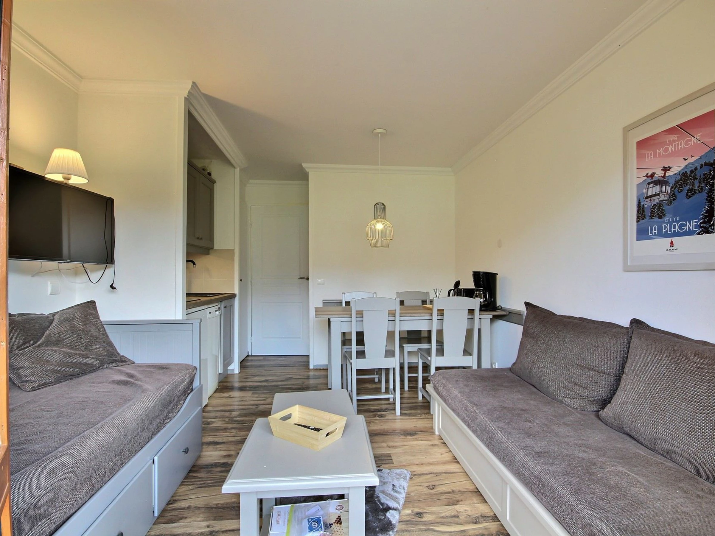 Living room opening onto the balcony: 2 single sofa beds, dining area for 4 guests, television