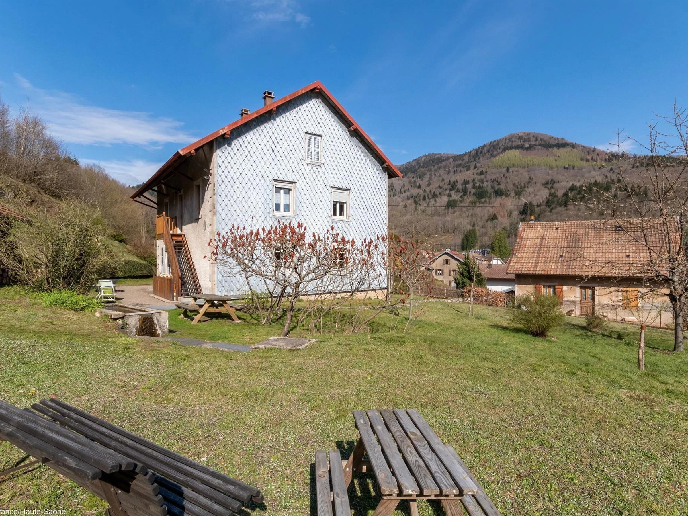 In a mountain village at the foot of the Ballon de Servance Massif and the Planche des Belles Filles ski resort, a legendary stage of the Tour de France. A privileged location for practicing all mid-mountain activities: downhill skiing, Nordic skiing and hiking in all its forms (hiking, cycling, etc.). The proximity of Ronchamp and Belfort is an asset for many cultural discoveries. Gîte upstairs in an independent house which includes another accommodation on the ground floor. Beautiful living room: kitchen, dining room and living room with wood stove. One bedroom with 1 double bed. One bedroom with 1 double bed and 1 single bed. Bathroom and separate WC. Small adjoining and communicating studio included in the rental and comprising: kitchenette area, one double bed and bathroom with shower and WC. This highly functional cottage has undergone a high-quality renovation, notably using materials used in eco-housing. The property boasts a large shared and partially enclosed garden. Internet access is available.