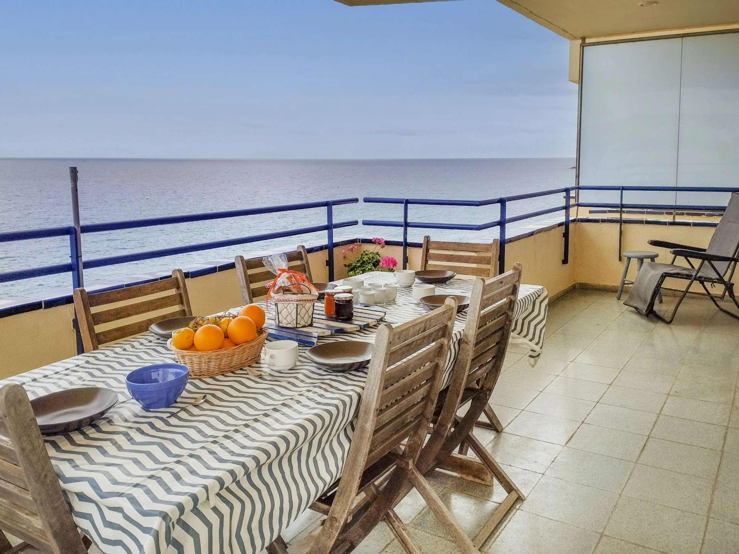On the seafront. Large, comfortable apartment block "Edificio Sant Sebastiá". In the centre of paseo marítimo de Platja d'Aro, in a central, busy, sunny position, 10 m from the sea, 10 m from the beach, direct access to the beach, in a cul-de-sac, in a pedestrian area. In the house: reception, lift. Shop 500 m, supermarket 120 m, restaurant, bar 10 m, pedestrian zone 5 m, 9 minute walk to the centre, bus stop "dirección Barcelona - Girona" 700 m, railway station "Girona" 35 km. Sports harbour 800 m, golf course (18 hole) 7 km, minigolf 500 m. Nearby attractions: Pp's Park - Parque de atracciones 650 m, Camí de Ronda - Calas Preciosas 1 km, Water Park Aquadiver 3 km, Via ferrata Cala del Molí 5 km, Tennis & Pàdel Piper's 6 km, Peratallada - Pueblo medieval 28 km. Neighbourhood highly sensitive to noise. Quietness and good behaviour expected.