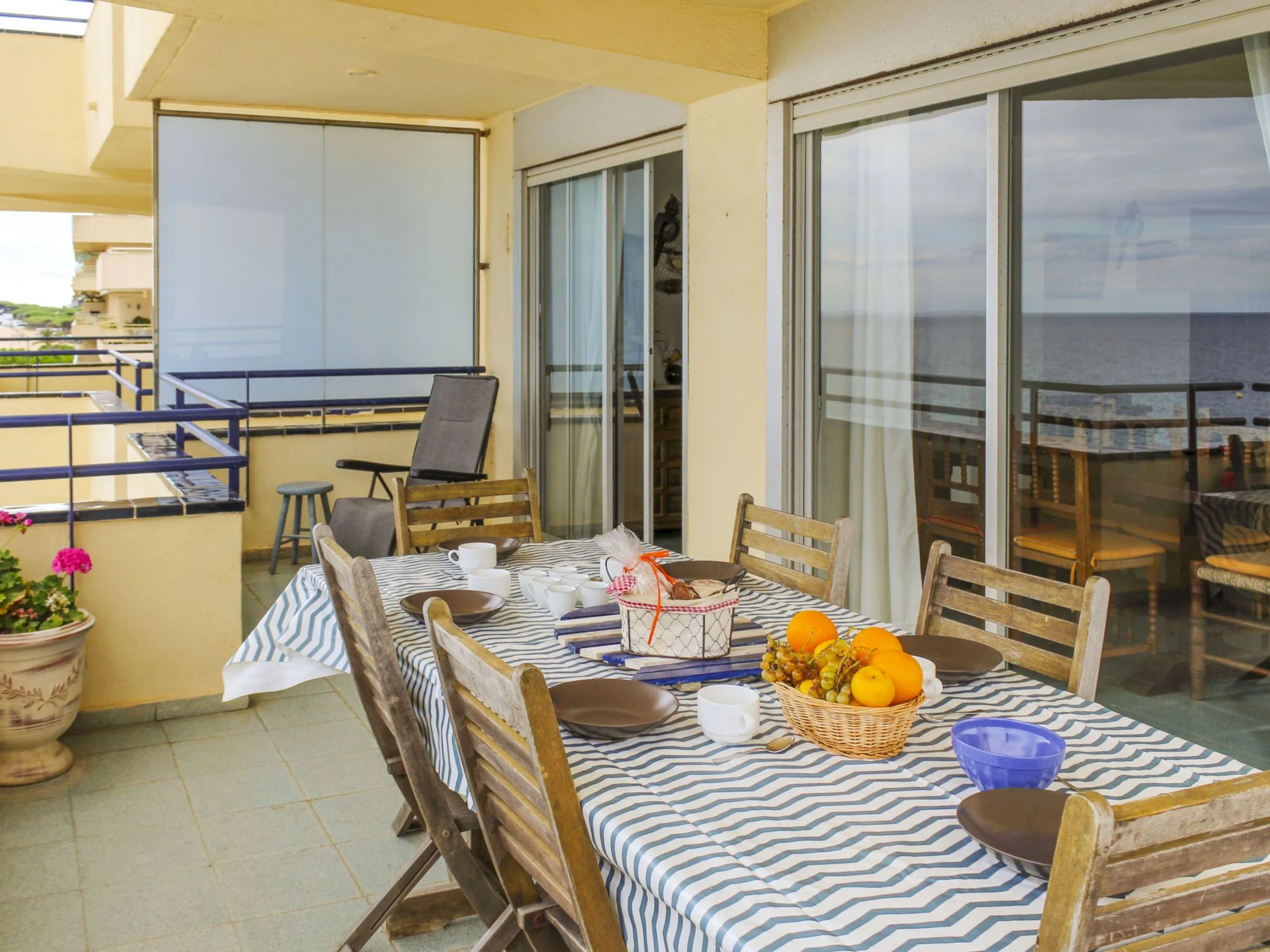 "Los Laureles Blancos", 5-room apartment 128 m2. Spacious and bright, practical and comfortable furnishings: large living/dining room with dining table, electric heating, air conditioning and forced-air heating. Exit to the terrace. 1 room with 1 french bed (140 cm, length 190 cm), air conditioning and forced-air heating. Exit to the balcony. 1 room with 1 french bed (140 cm, length 190 cm), air conditioning and forced-air heating. 1 room with 2 beds (90 cm, length 190 cm), air conditioning and forced-air heating. Exit to the balcony. 1 room with 2 beds (90 cm, length 190 cm), air conditioning and forced-air heating. Small kitchen (oven, dishwasher, 4 induction hot plates, toaster, kettle, microwave, electric coffee machine). Bath/WC, sep. WC. Heating. Large terrace. Balcony furniture, sitting area. Marvellous view of the sea. Facilities: washing machine, iron, children's high chair, baby cot for up to 2 year olds, hair dryer. Internet (WiFi, free). [hidden] // Reg. Nr.: ESFCTU00001701700018036600000000000000[hidden]-205