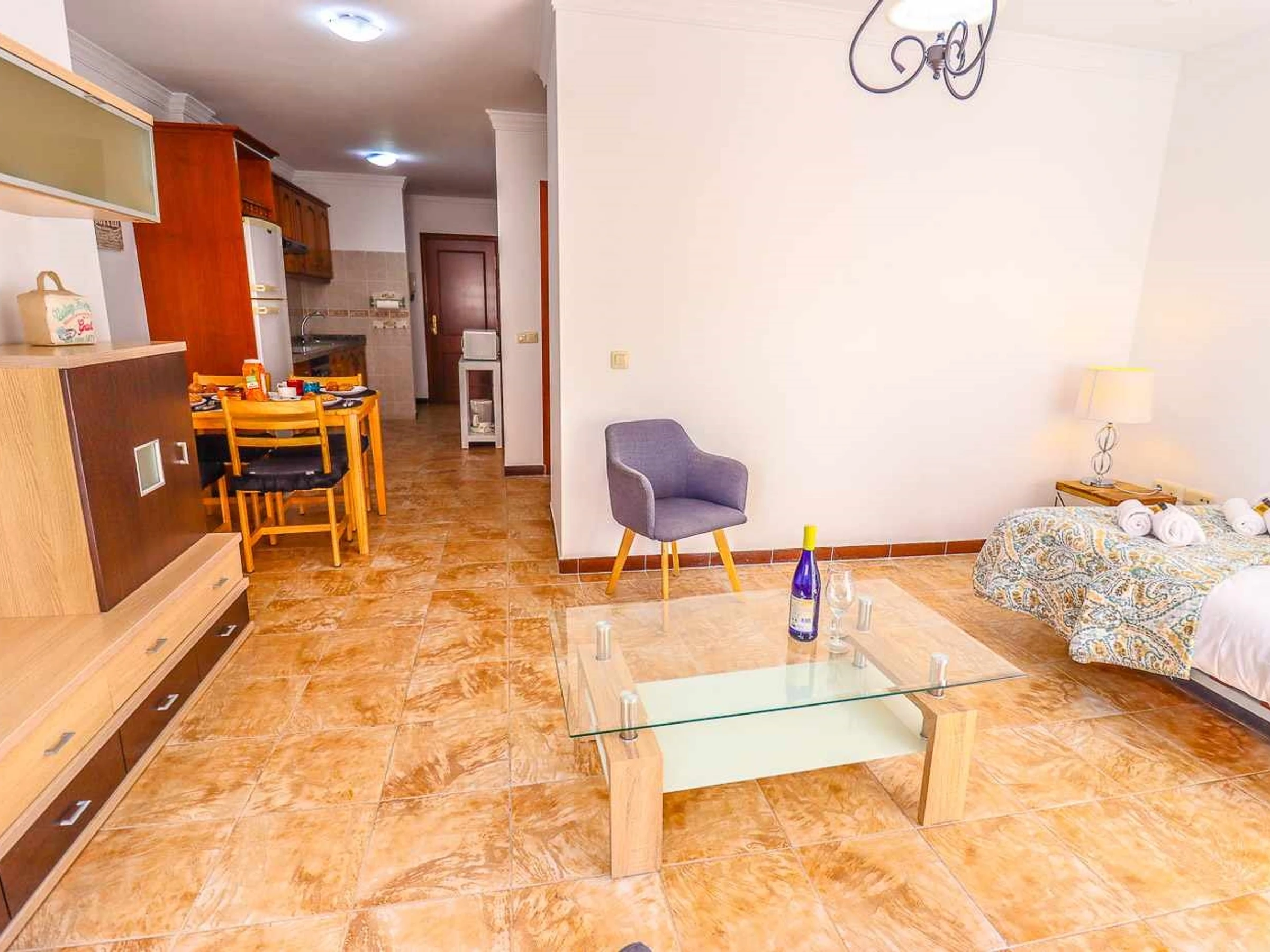 Rentaliday Blue Beach is an apartment just 50 meters from the beach, it is located in Playa San Juan, near the best restaurants in the area. It has 1 room with queen size bed measuring 180cm x 200cm, built-in closet and ceiling fan, fully renovated bathroom with screen, fully-equipped kitchen, has an oven, microwave, kettle, toaster. Dining table for 4 people. The living room has a sofa bed for 2 people , it's an Italian type, as if it were a mattress... Rentaliday Blue Beach is an apartment just 50 meters from the beach, it is located in Playa San Juan, near the best restaurants in the area. It has 1 room with queen size bed measuring 180cm x 200cm, built-in closet and ceiling fan, fully renovated bathroom with screen, fully-equipped kitchen, has an oven, microwave, kettle, toaster. Dining table for 4 people. The living room has a sofa bed for 2 people , it is an Italian type as if it were a normal mattress. Smart TV, 300mb fiber optic wifi. Private Parking & Balcony with Ocean Views. Great for families, couples, or friends.