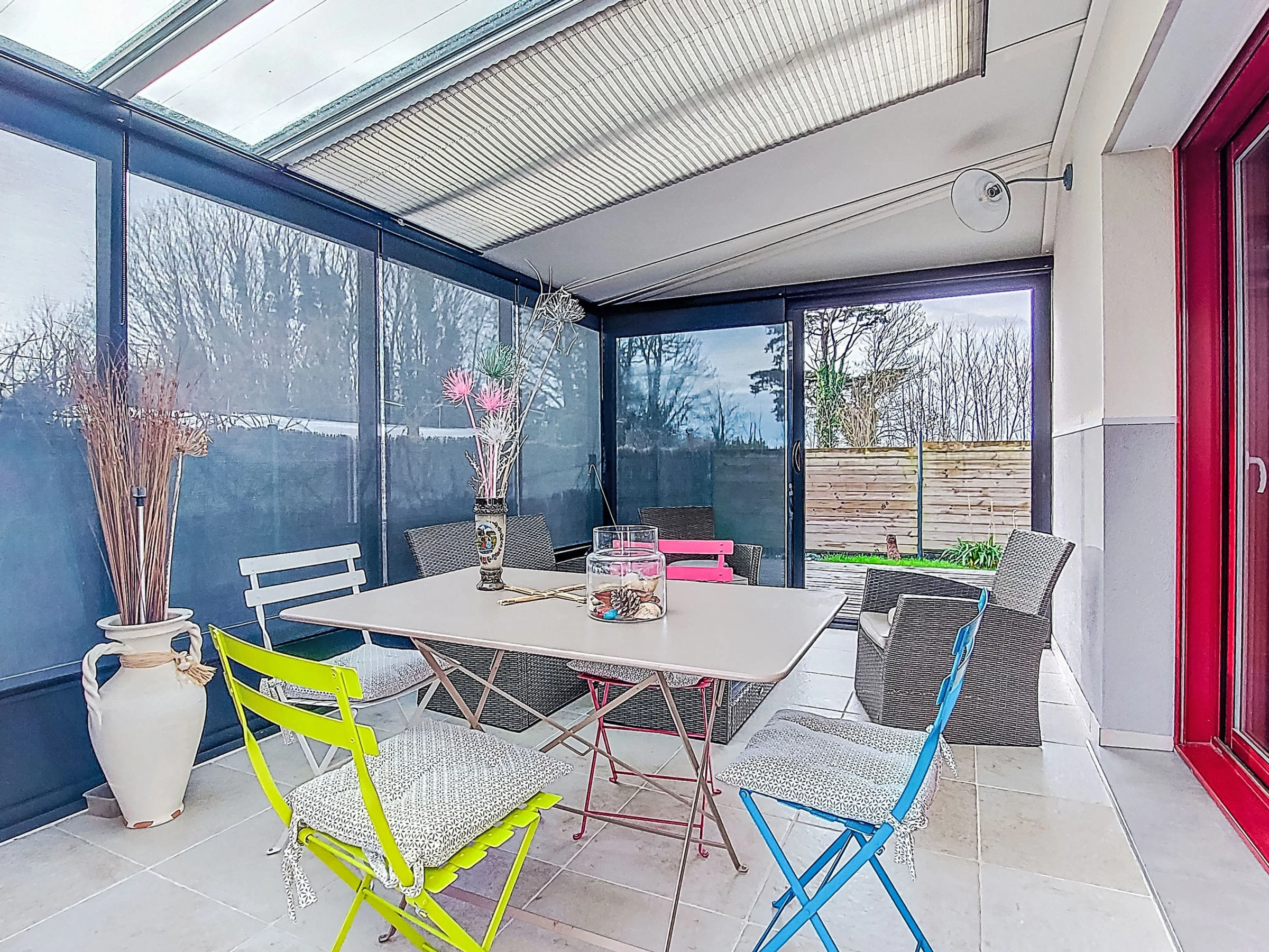 "Bienvenue", 4-room house 70 m2. Beautiful and cosy furnishings: living/dining room 40 m2. Exit to the garden, to the veranda. 1 room 10 m2 with 1 french bed (140 cm, length 190 cm). Small office. 1 room 12 m2 with 1 sofabed (140 cm, length 190 cm). Large, open kitchen (oven, dishwasher, 3 induction hot plates, toaster, kettle, microwave, freezer, electric coffee machine, cooking island). Shower, sep. WC. Electric heating. Facilities: washing machine, dryer, iron, hair dryer. Internet (WiFi, free). Please note: non-smoking house. Smoke alarm. Offer by a private individual according to Art. 155, IV of CGI.