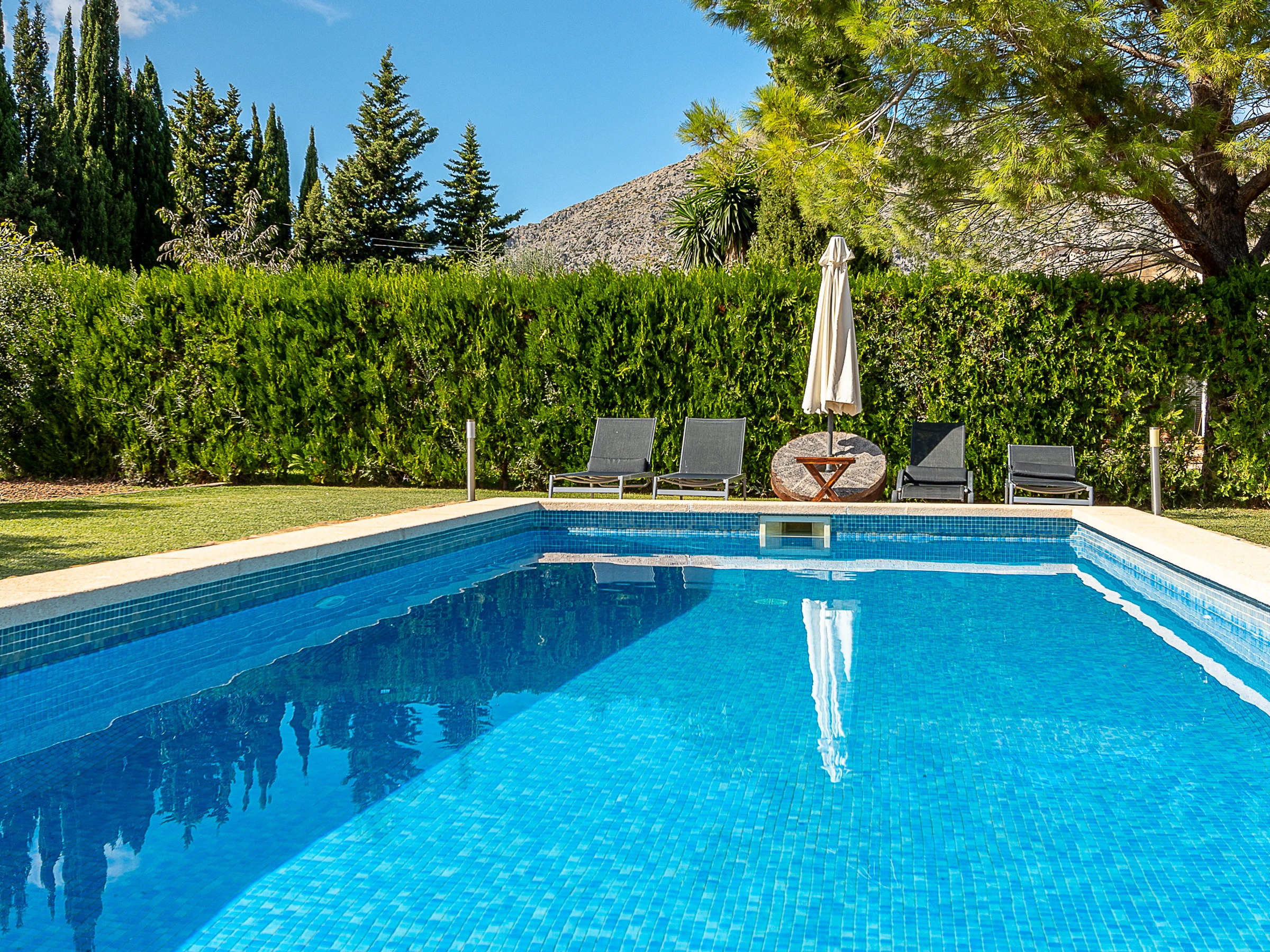 Located just a few minutes by car from the old town of Pollensa and the best beaches in the north of the island, such as Cala San Vicente and Pollença Bay, the villa is surrounded by impressive mountainous landscapes, perfect for combining days of peaceful beach, bike routes and excursions through the Serra de Tramuntana.