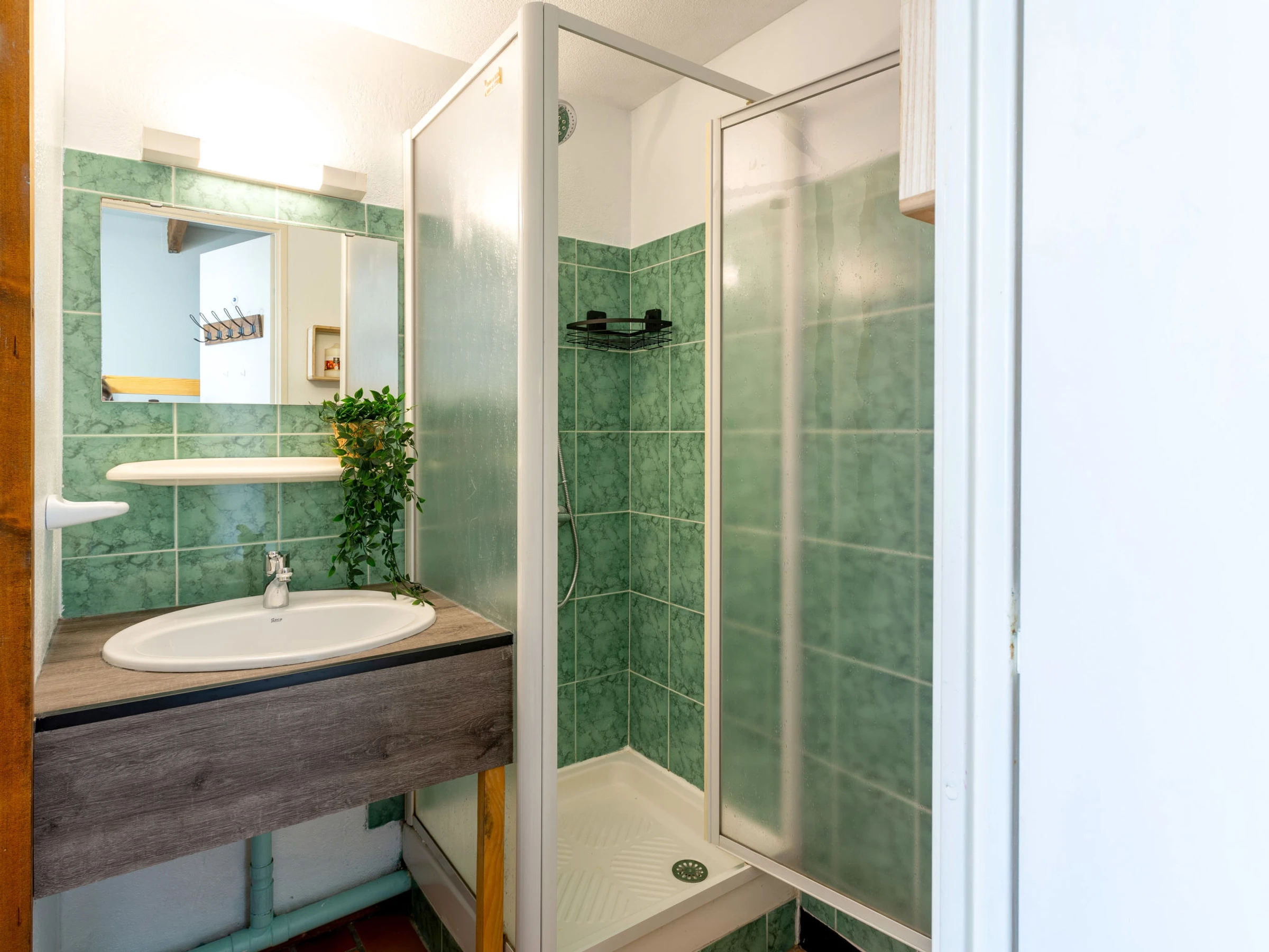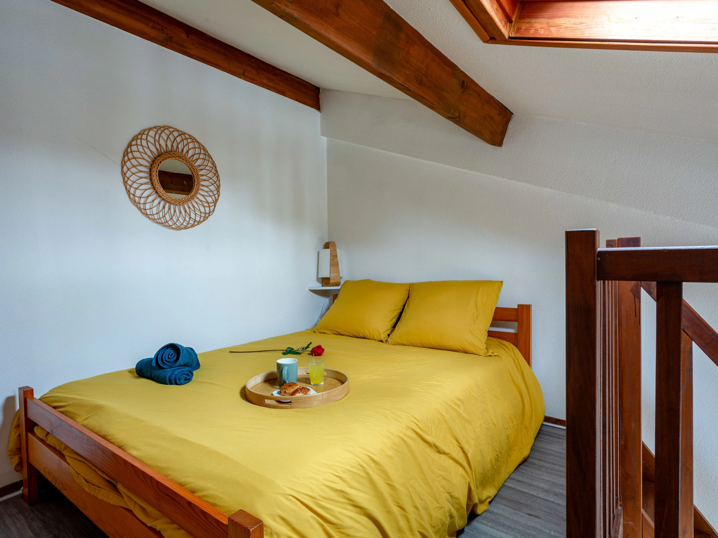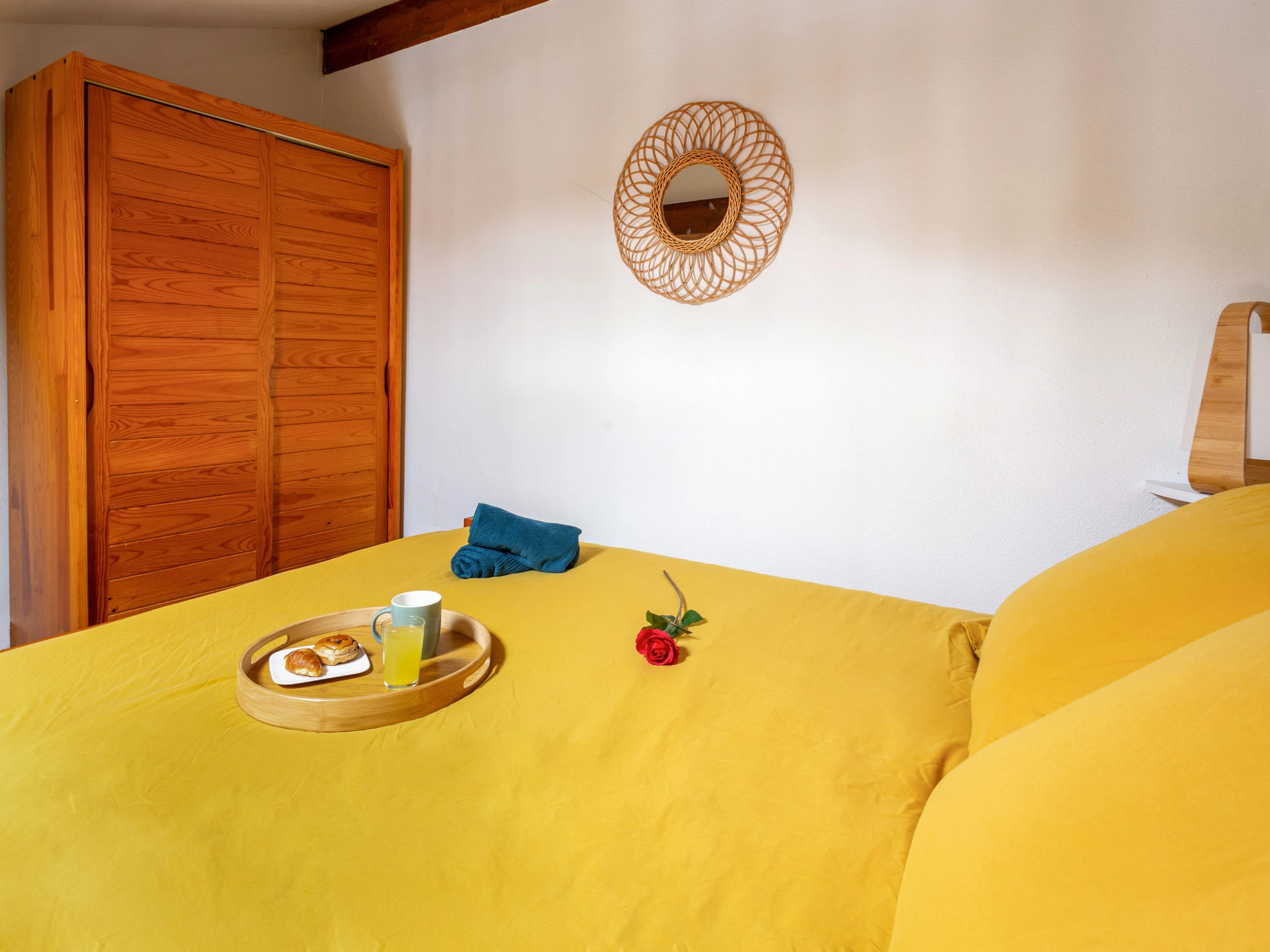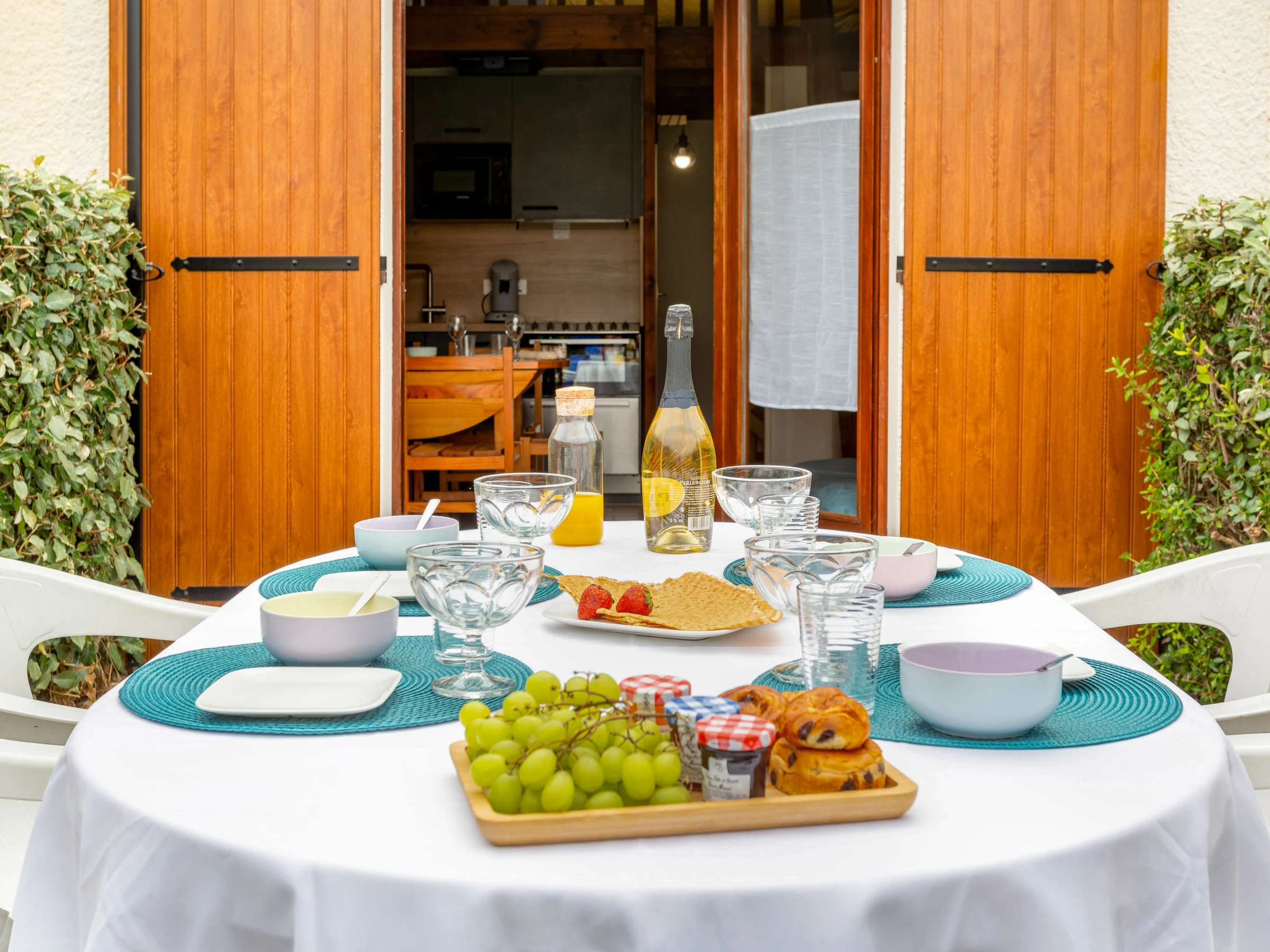 "Poisson", 2-room terraced house 26 m2 on 2 levels, west facing position. Simple furnishings: living/dining room with 1 sofabed (140 cm, length 190 cm). Exit to the terrace. Interconnecting room with 1 x 2 bunk beds (70 cm, length 190 cm). Small, open kitchen (mini-oven, oven, dishwasher, 4 induction hot plates, toaster, kettle, microwave, freezer, electric coffee machine, Capsules for coffee machine (Senseo) extra). Shower/WC. Upper floor: (steep stair), 1 open room with sloping ceilings with 1 french bed (1 x 140 cm, length 200 cm). Electric heating. Terrace 20 m2, south facing position and west facing position. Terrace furniture, electric barbecue. Side view of the sea. Facilities: iron, hair dryer. Internet (WiFi, extra). Reserved parking space n 100 (1 car). Please note: non-smoking house. 1 small pet/ dog allowed. Smoke alarm. Bed layout is flexible. There are more sleeping options available than the maximum number of people allowed which may, however, not be exceeded. Offer by a commercial proprietor according to Art. 155, IV, CGI [hidden]