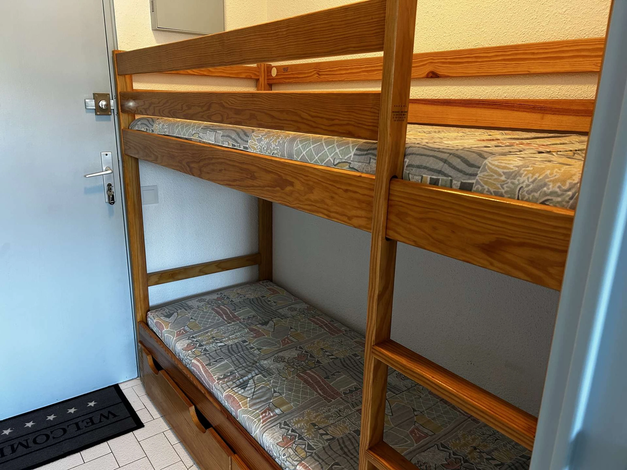 Located in the North Beach area of Port Camargue, on the first floor of the "Le Grand Pavois" residence, this apartment comprises an entrance hall with a sleeping alcove and two bunk beds; a living room with a television and a sofa bed for two; a kitchenette with electric hobs, a combination oven, and a refrigerator; a bathroom with a bathtub; and a separate toilet.