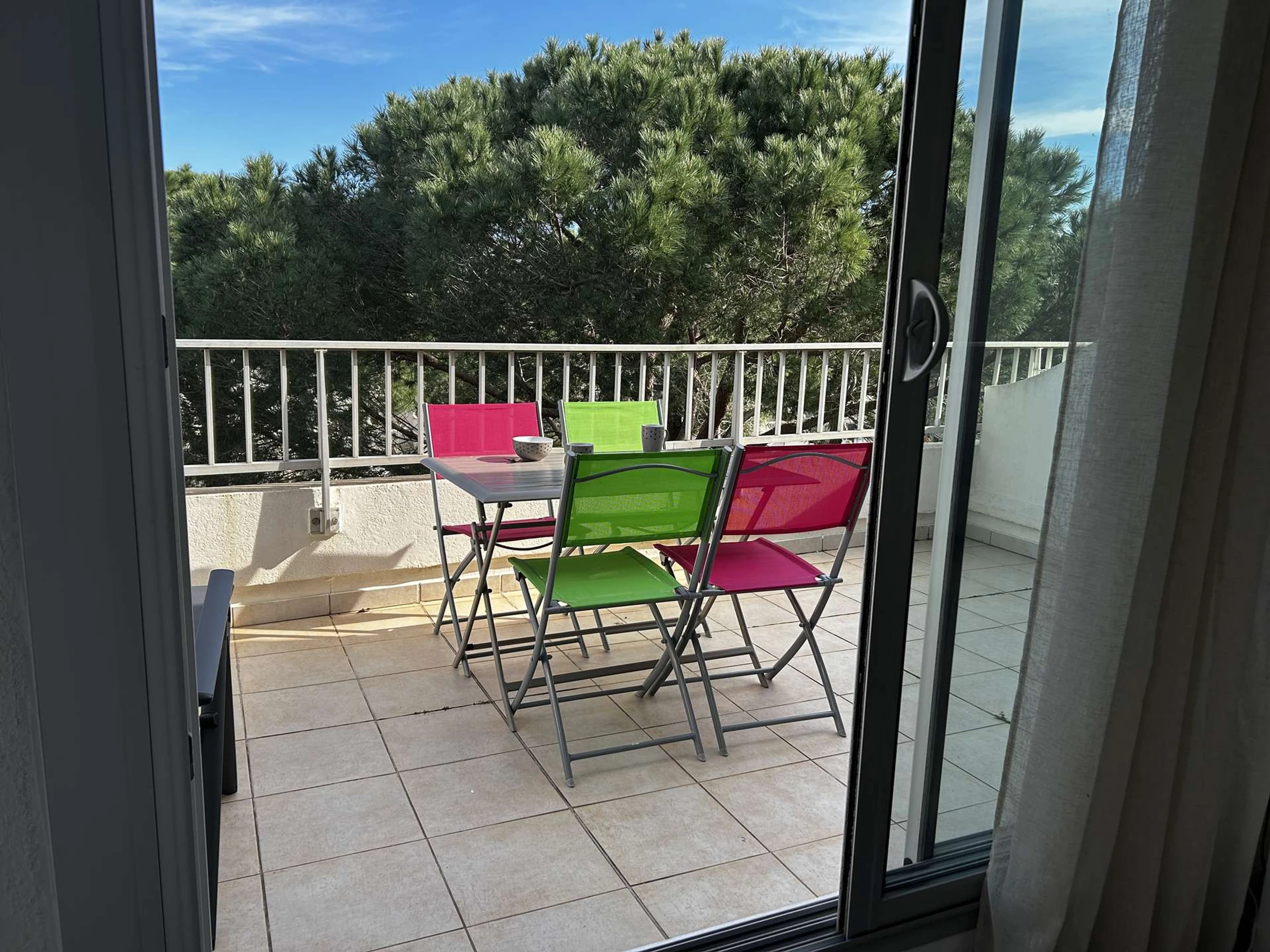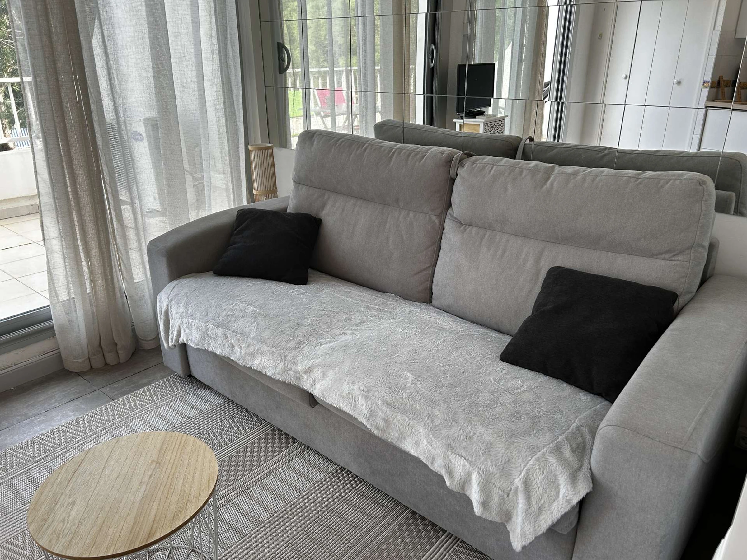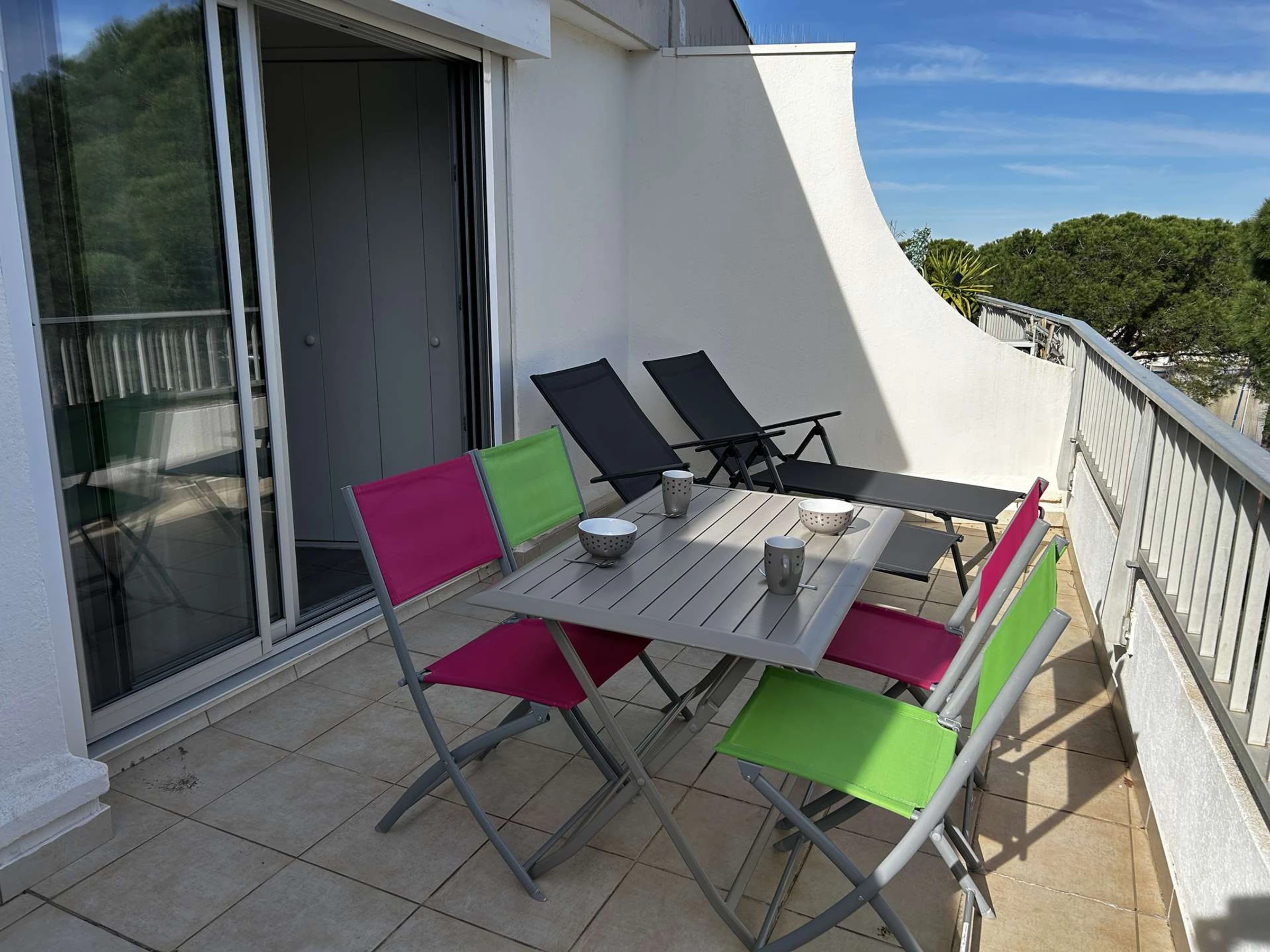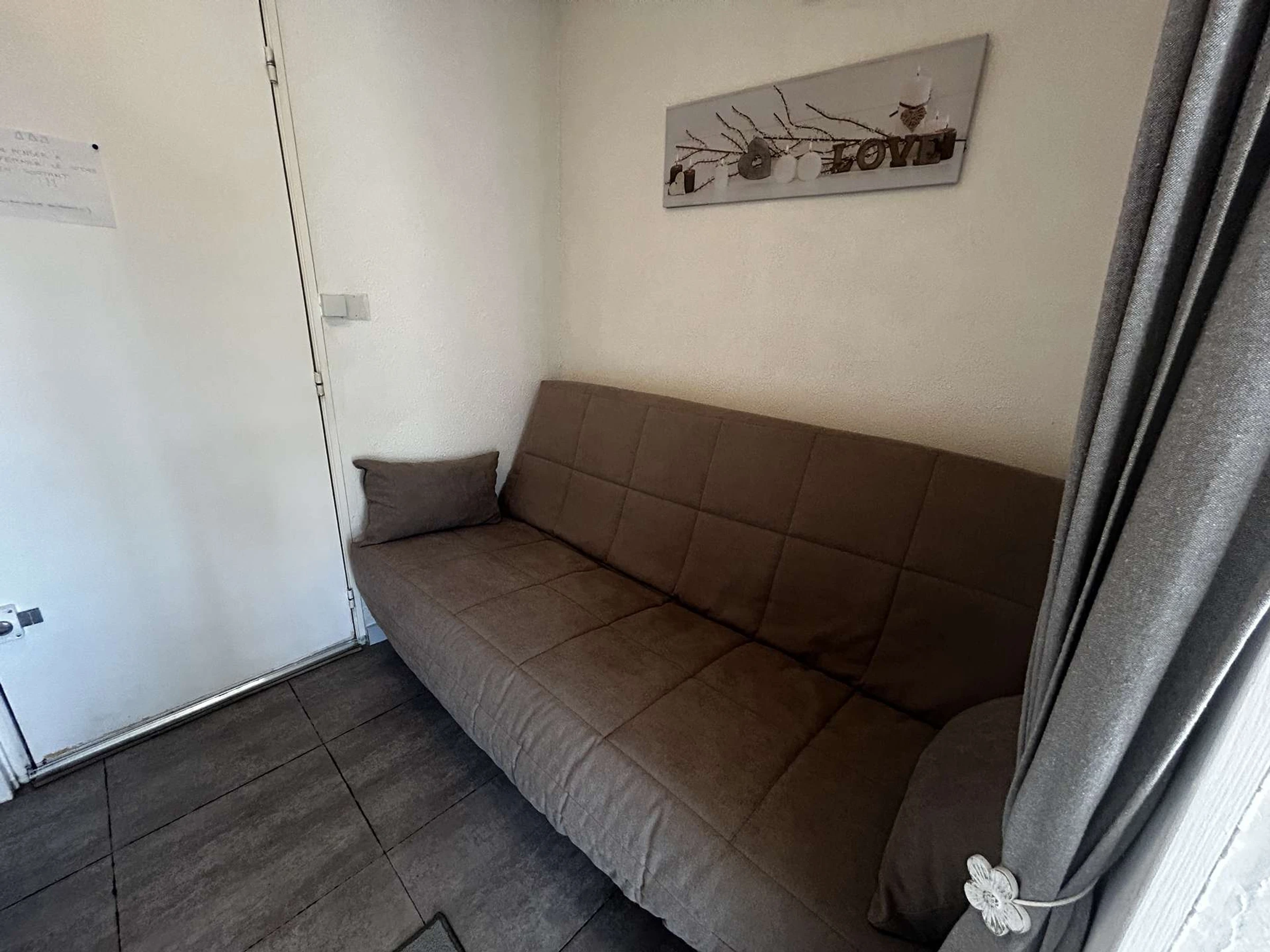 This apartment is located in the South Beach area of Port Camargue, on the 3rd floor of the "Les Caravelles" residence. It comprises a living room with a sofa bed and television; a fully equipped kitchenette; a shower room; and a separate toilet. The living room opens onto a southeast-facing terrace of approximately 15 m². The terrace is furnished with sun loungers, outdoor furniture, and a sunshade, allowing you to enjoy the lovely view of the gardens and the canal.
