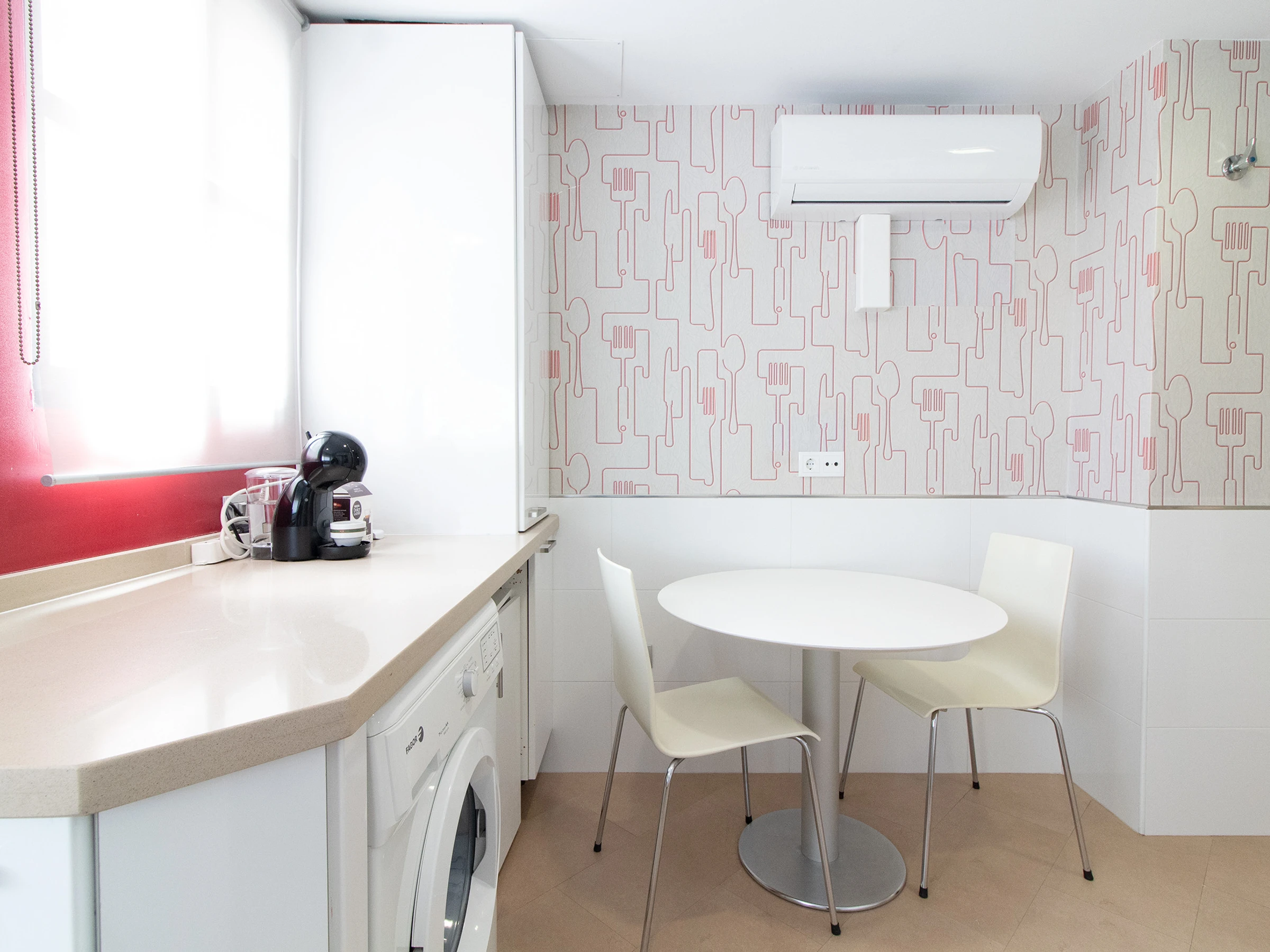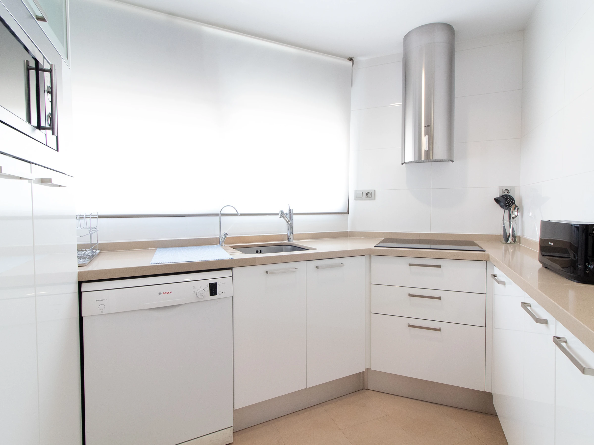 The independent kitchen, of induction, is equipped with refrigerator, microwave, oven, freezer, dishwasher, dishes/cutlery, kitchen utensils, coffee machine and toaster.