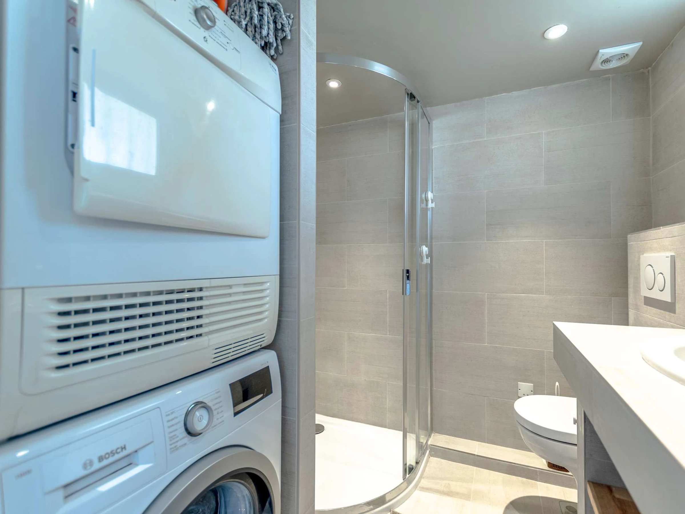 Next to it is a modern bathroom with WC, functional and well-designed.