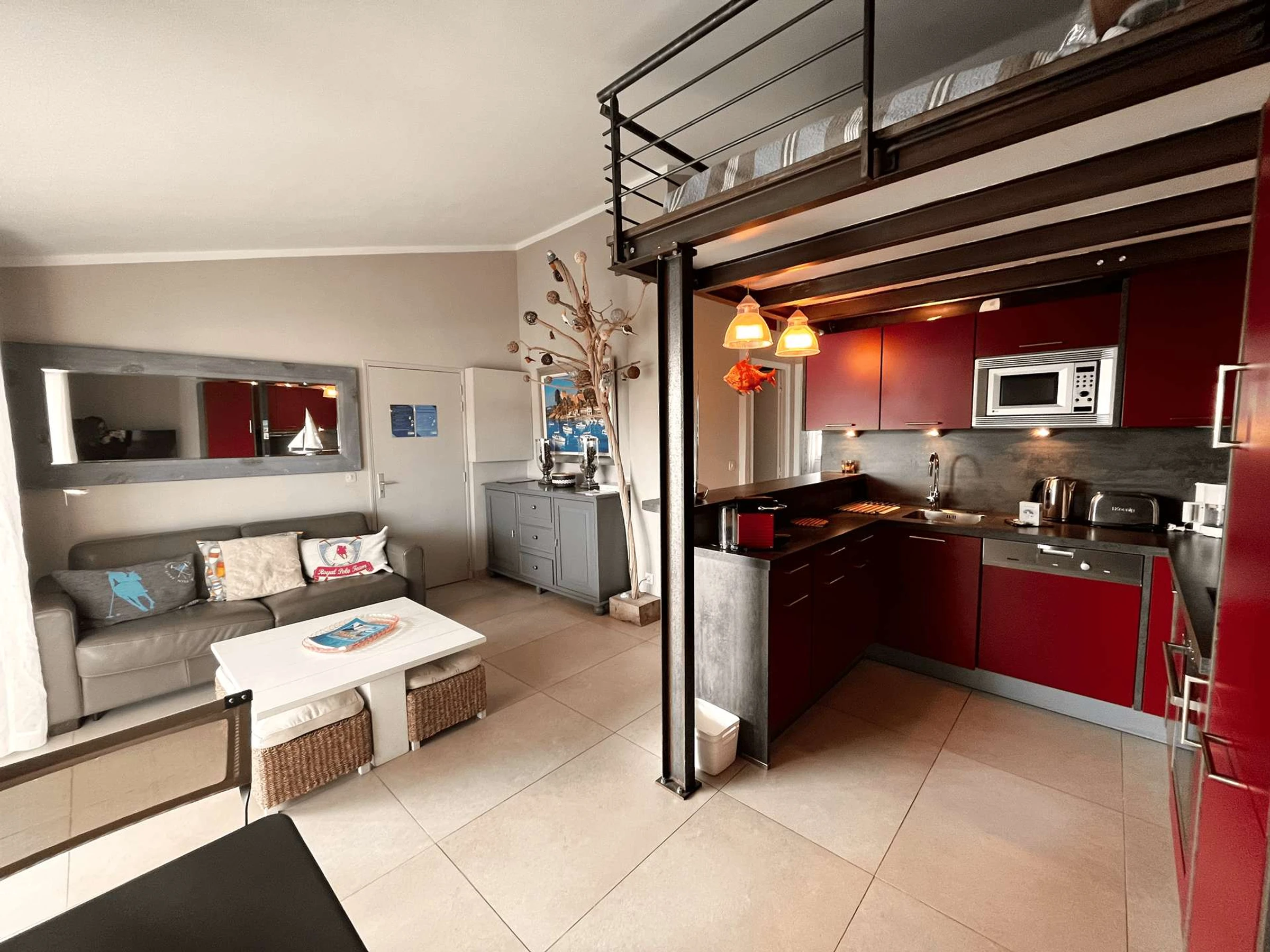 Upon arrival, you will discover a bright living room with a fully equipped open-plan kitchen, thoughtfully designed for moments of relaxation and conviviality. The apartment also offers two comfortable bedrooms, each featuring a 160 cm double bed, as well as a modern shower room.