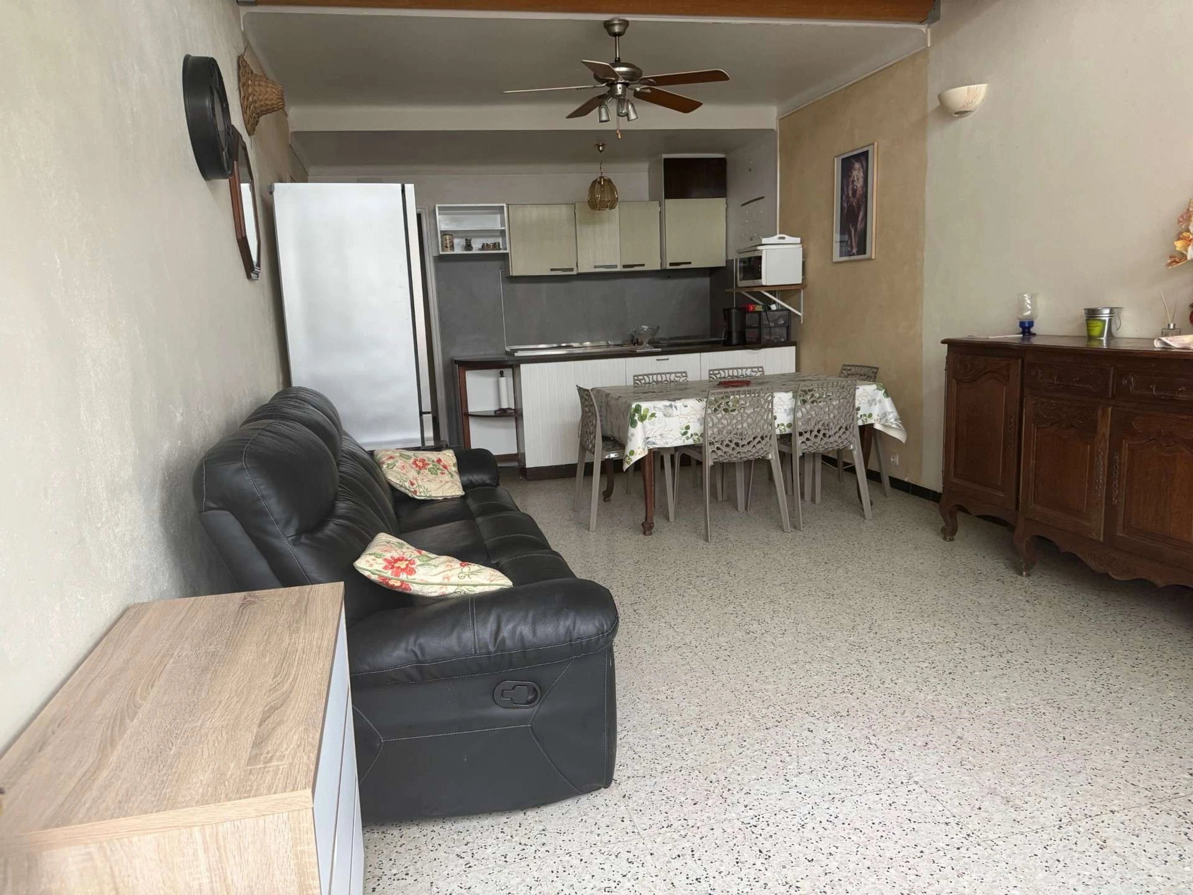 The advantages of this holiday rental: a large terrace with garden furniture, two air-conditioned bedrooms (one on the ground floor and one upstairs), and a washing machine and dishwasher.