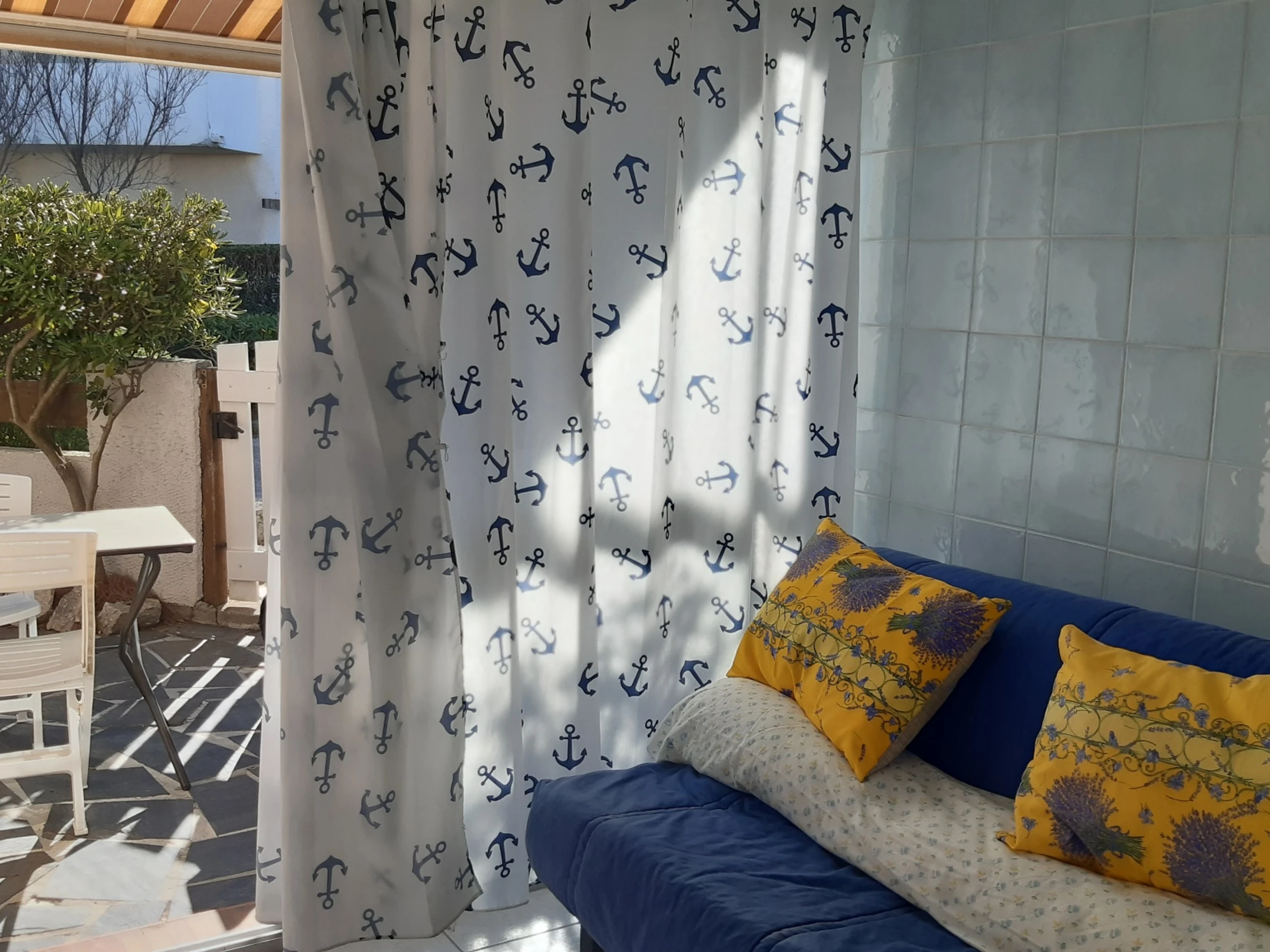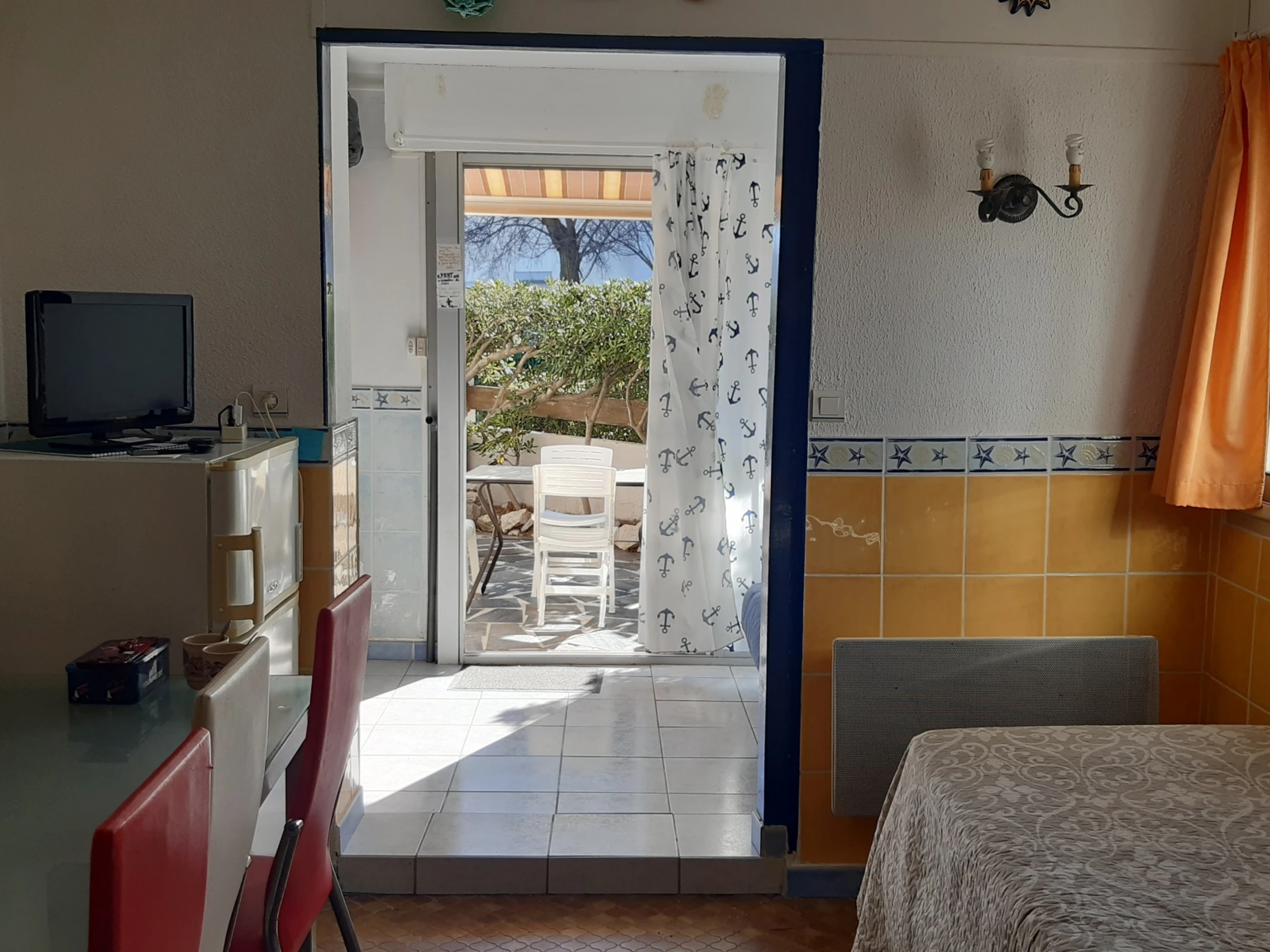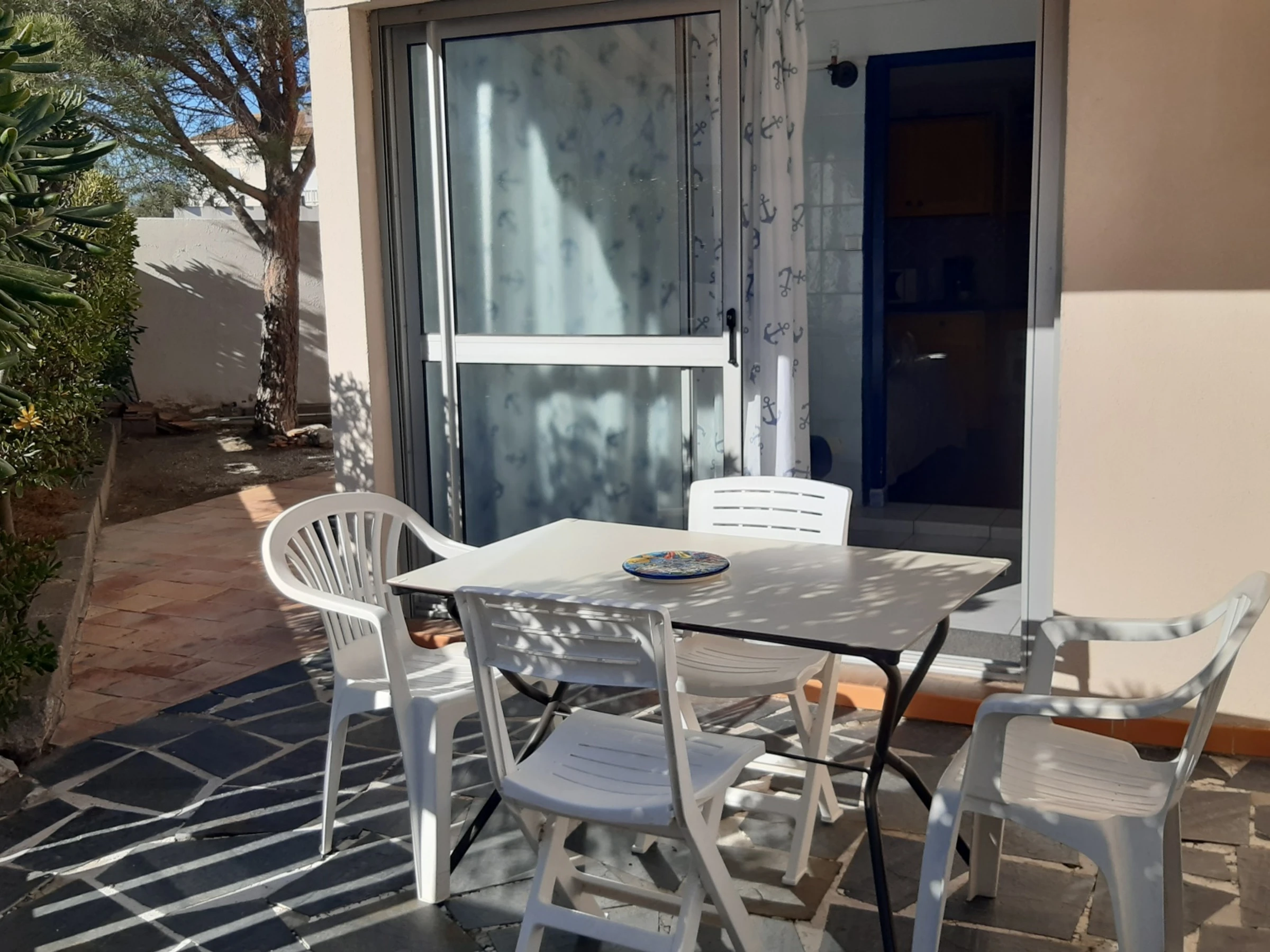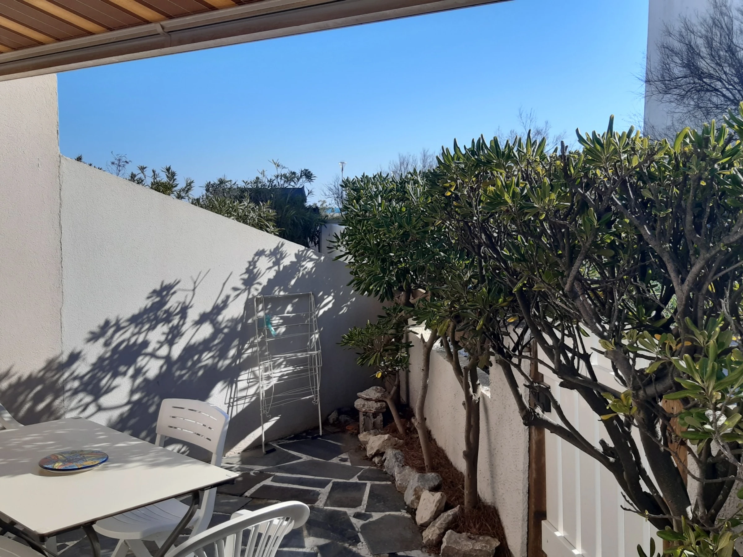 Aigues Marines Residence. Sleeps 5. Pleasant one-bedroom apartment with a loggia located on the ground floor in a sought-after seafront residence. Partial sea view from the tree-lined terrace.