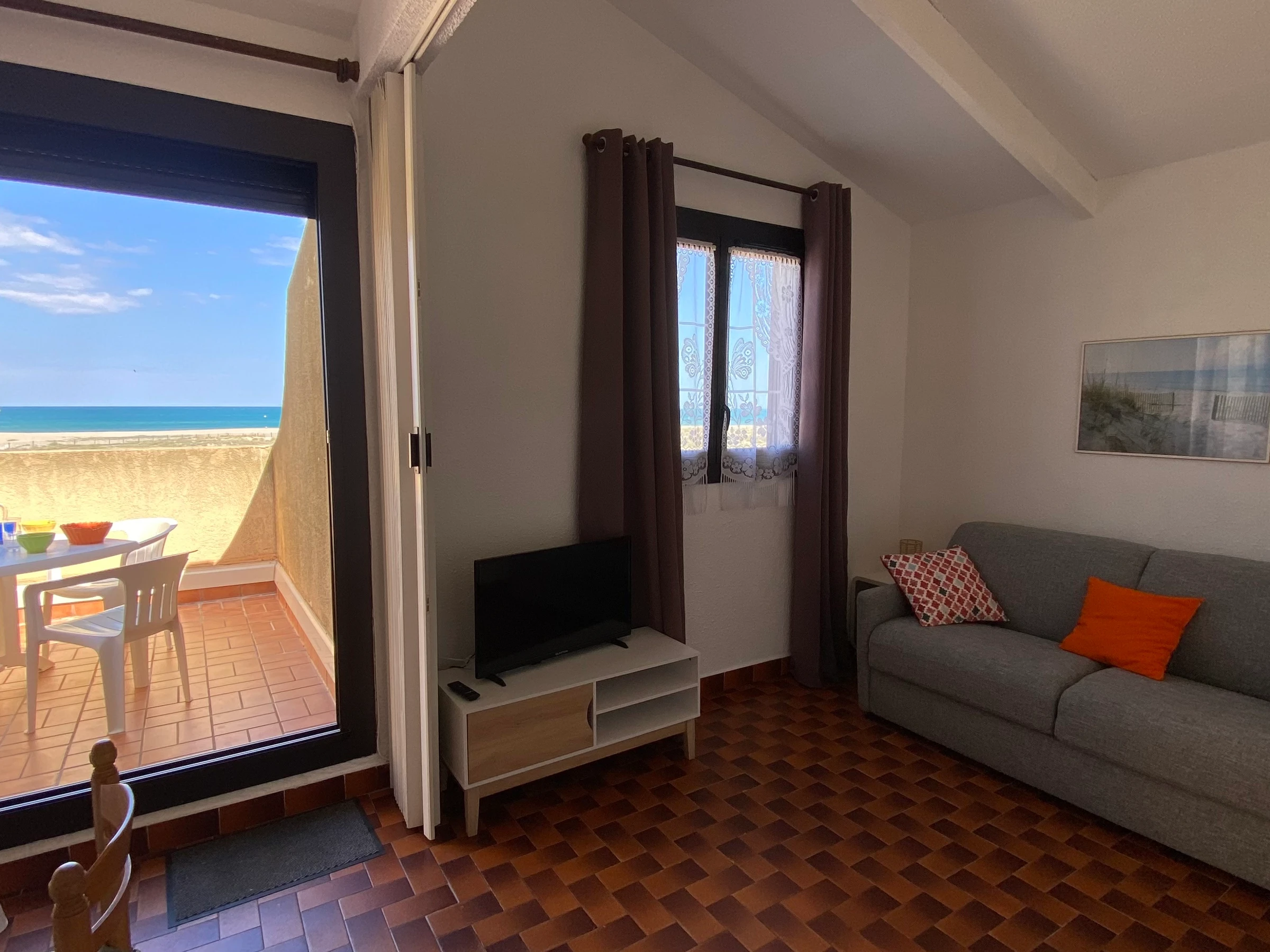 Pleasant living area, lounge (sofa bed), equipped kitchenette, one bedroom (two single beds), one bathroom, and a separate toilet.