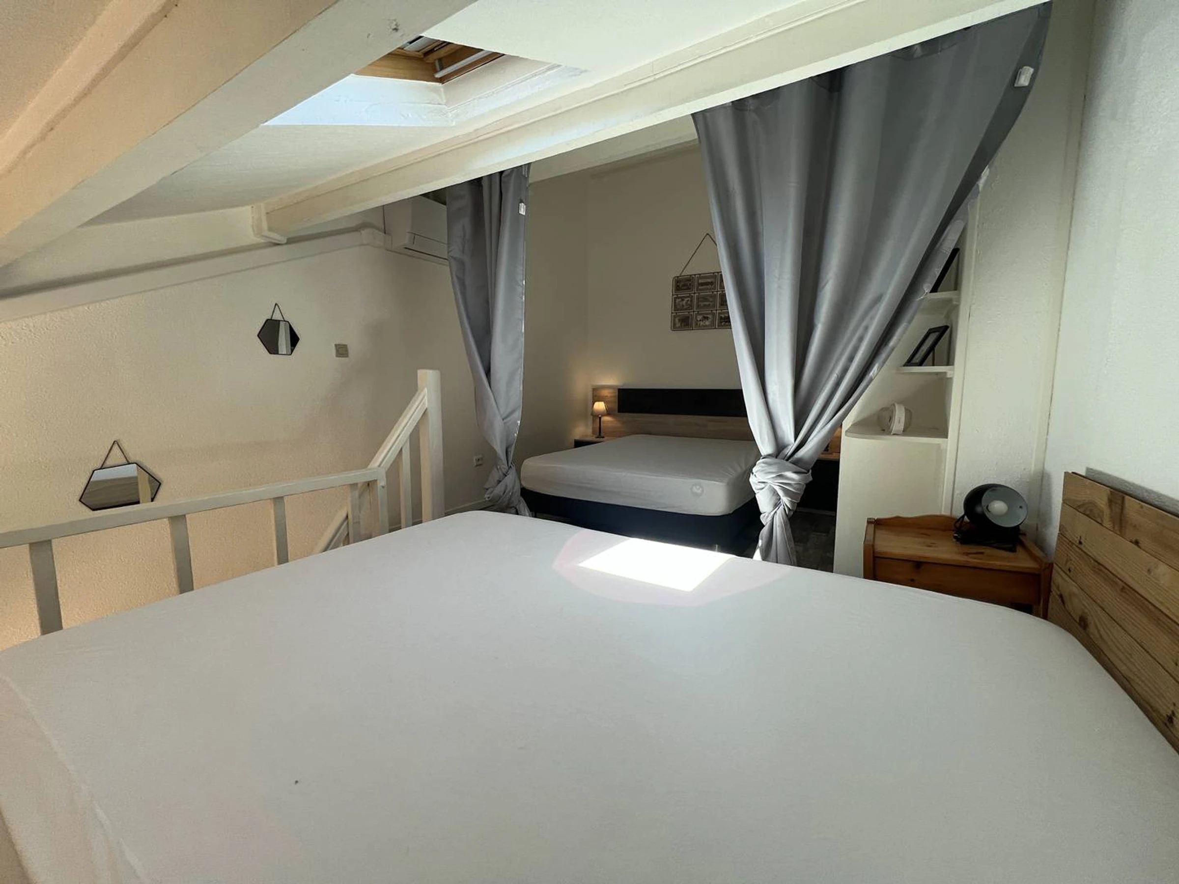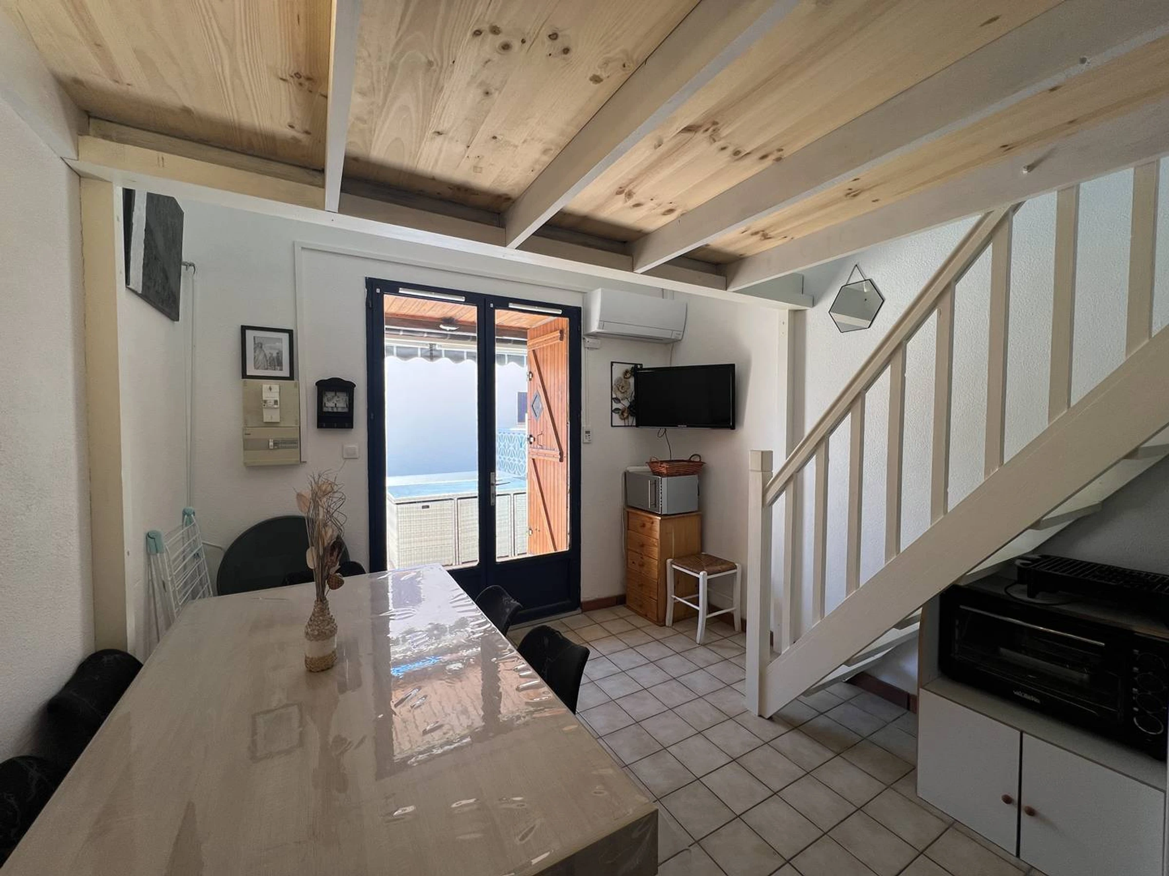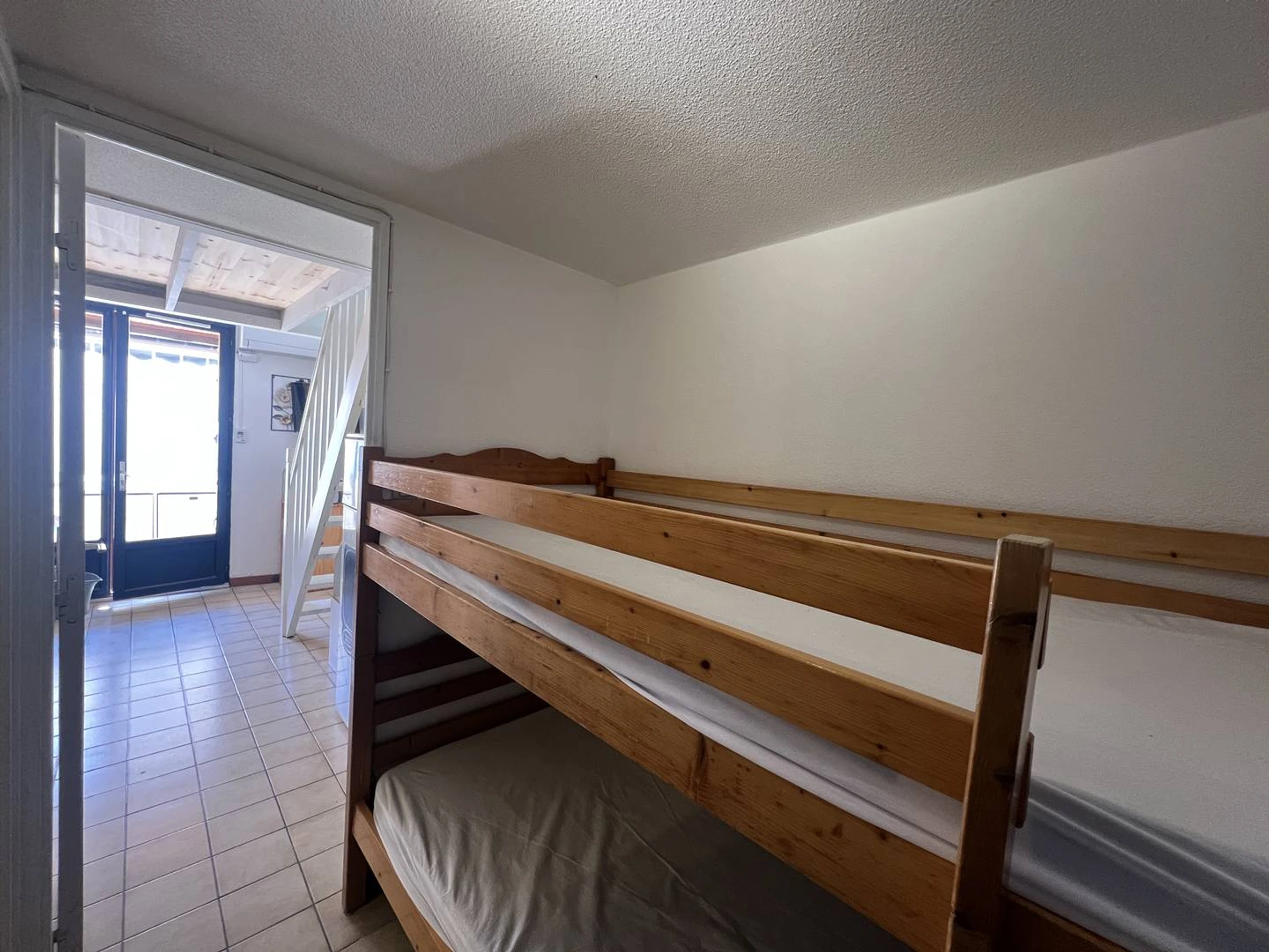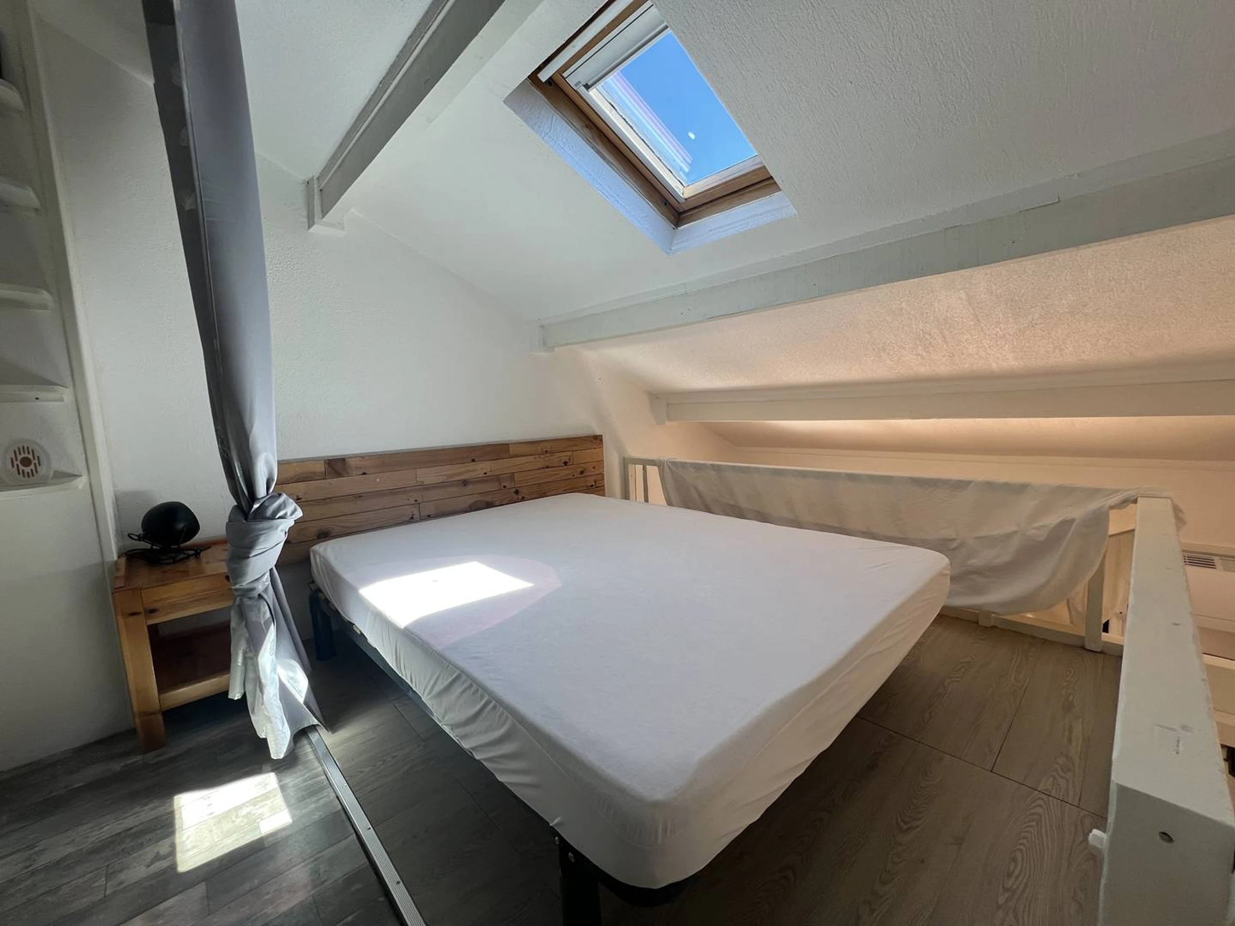 PORT LEUCATE (11), Located in the Hawai II residence, this apartment features a kitchen open to the living room, a bathroom with toilet, a sleeping alcove, a mezzanine with two sleeping areas, and a terrace. Private parking.