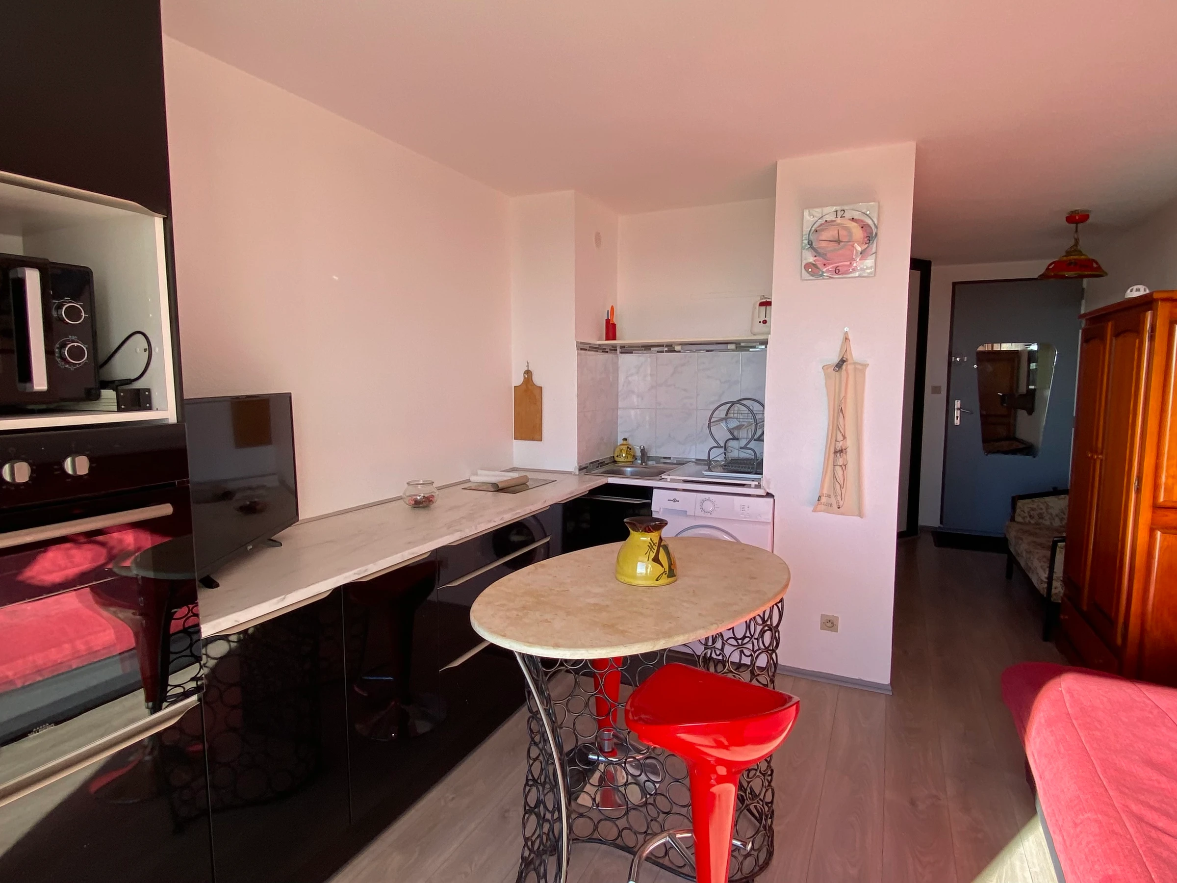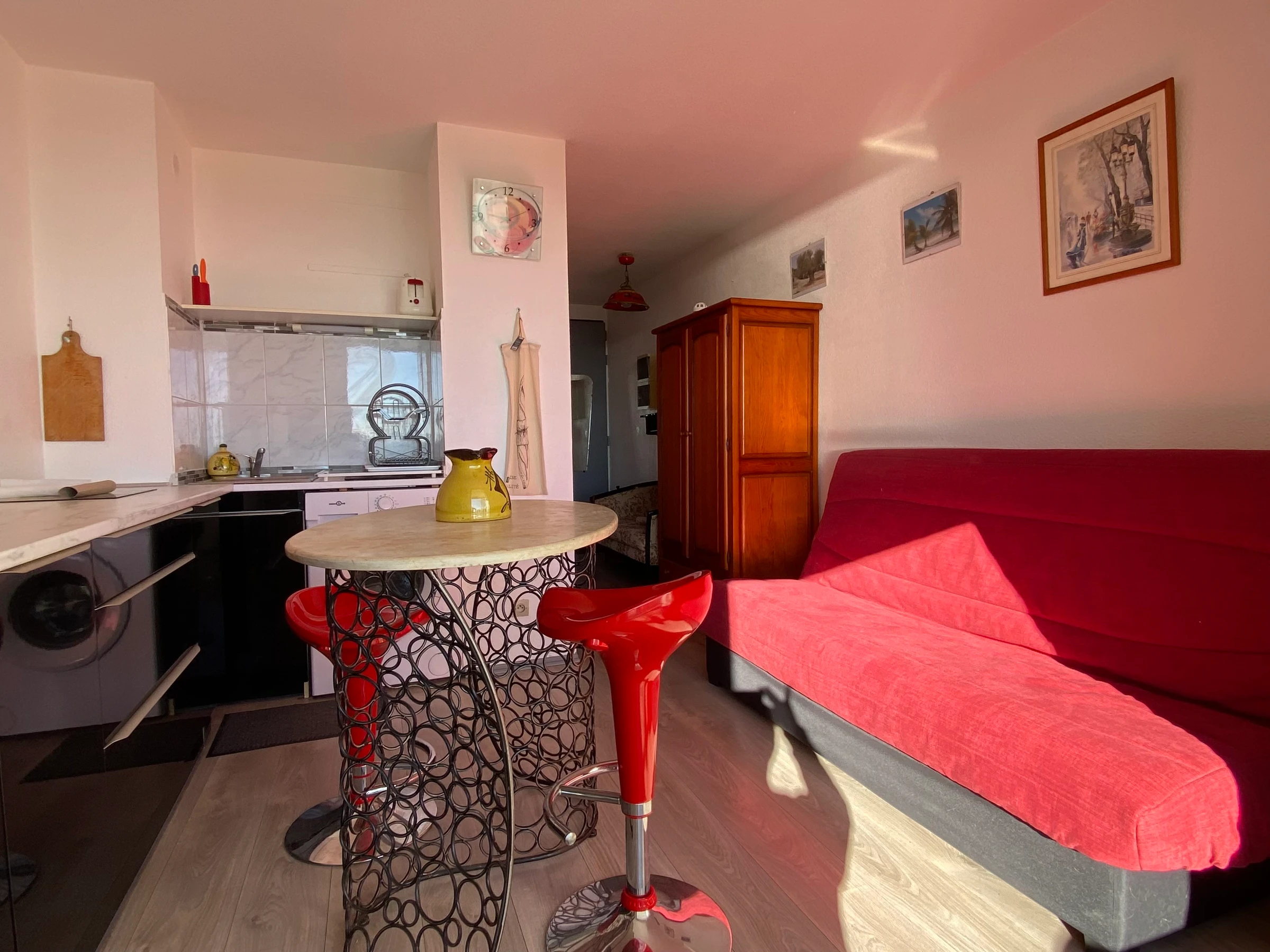 Belle Plage Residence. Sleeps 4. Beautiful one-bedroom apartment (T2), located on the 2nd floor of a sought-after residence, with a superb sea view. Newly renovated, it features a comfortable living room (with a sofa bed) opening onto a modern, fully equipped kitchen, a bedroom (double bed), and a shower room with toilet. A closed balcony offers a lovely sea view. Ideal for a couple or family holiday! Come and enjoy the Mediterranean sun! One private and secure parking space is included in the residence.