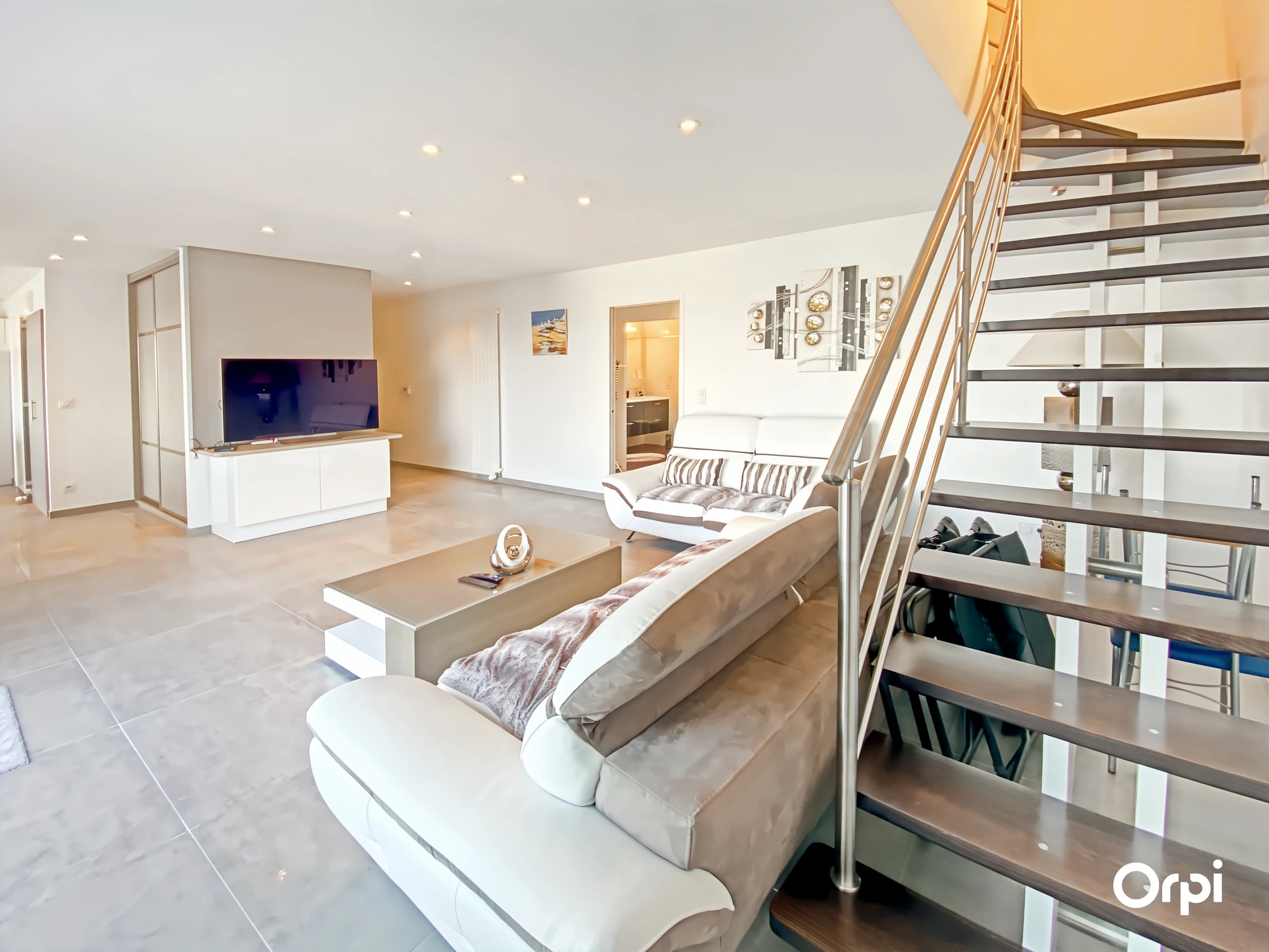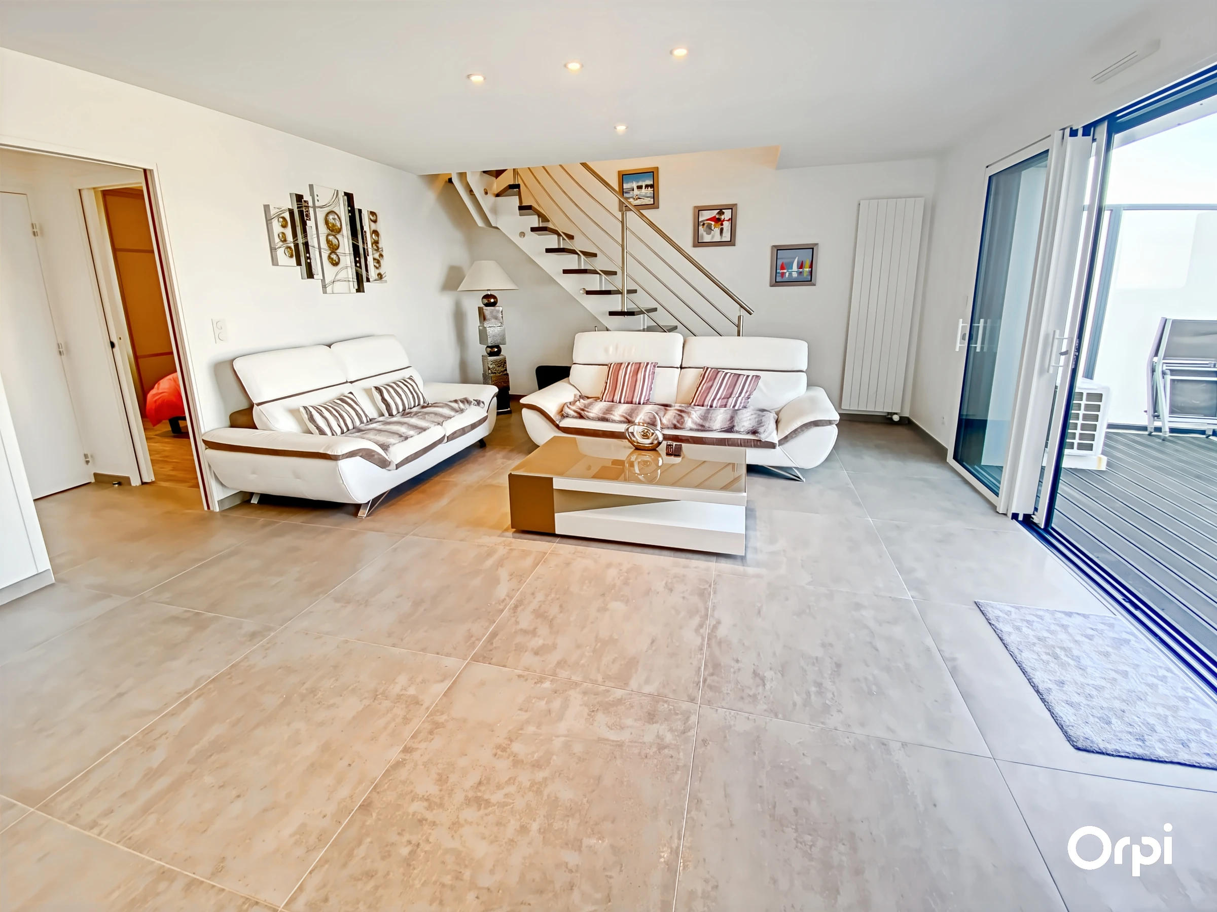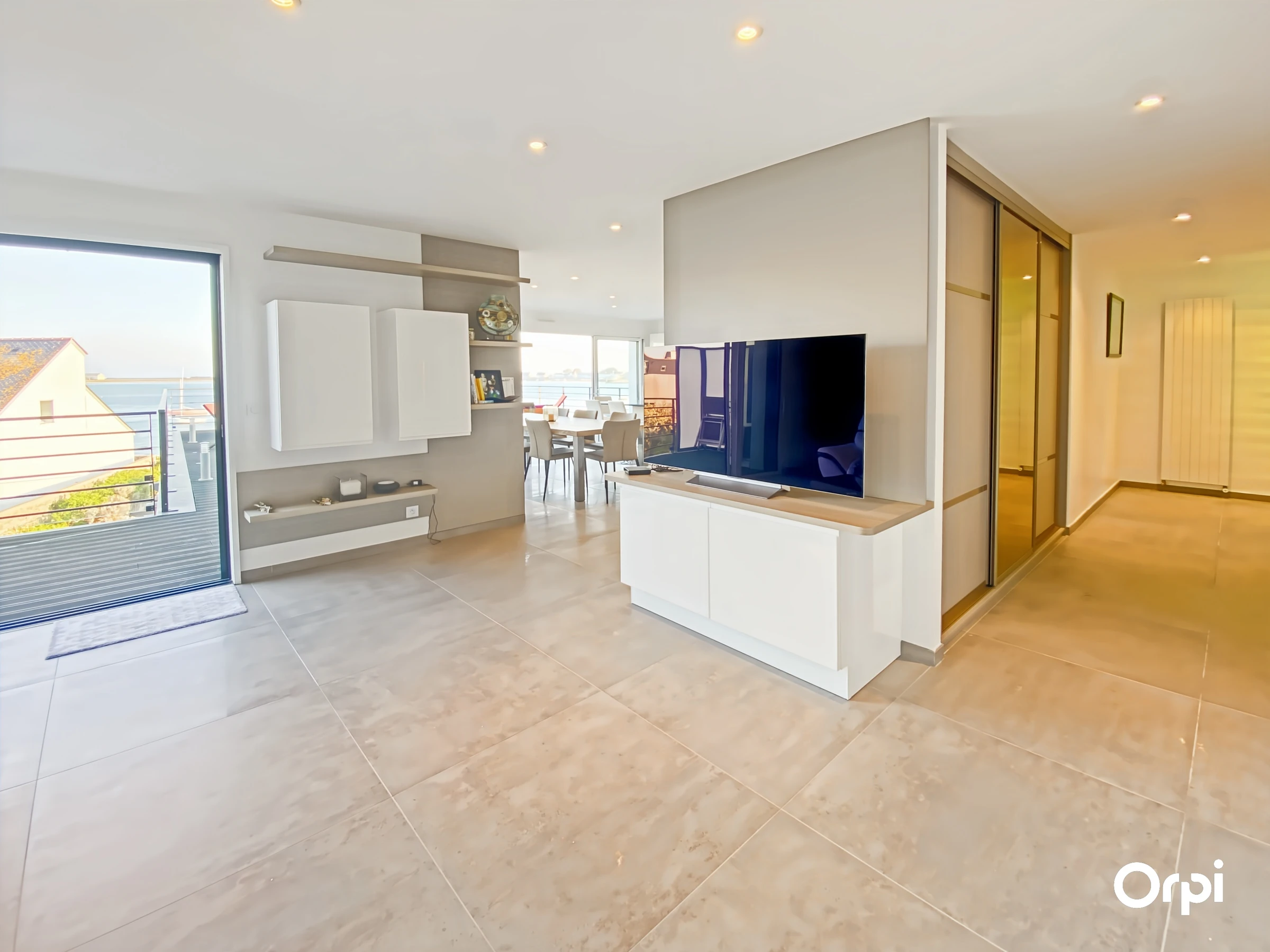 Beautiful 4-room duplex apartment with a very sunny terrace featuring a jacuzzi (from May to September) and a full view of the Gâvres Sea in a small, luxury 2015 residence, "LES ALIZÉS." "Relaxation and tranquility guaranteed." It offers an entrance hall with closet, a living room opening onto a dining room and kitchen/laundry room with access to a sea-view terrace, two bedrooms (queen-size bed) with closet, a bathroom, and a toilet. The upper floor features a mezzanine with sea views and a shower area (queen-size bed + queen-size sofa bed). Parking is free in the residence, and the accommodation benefits from Wi-Fi and a private garage.