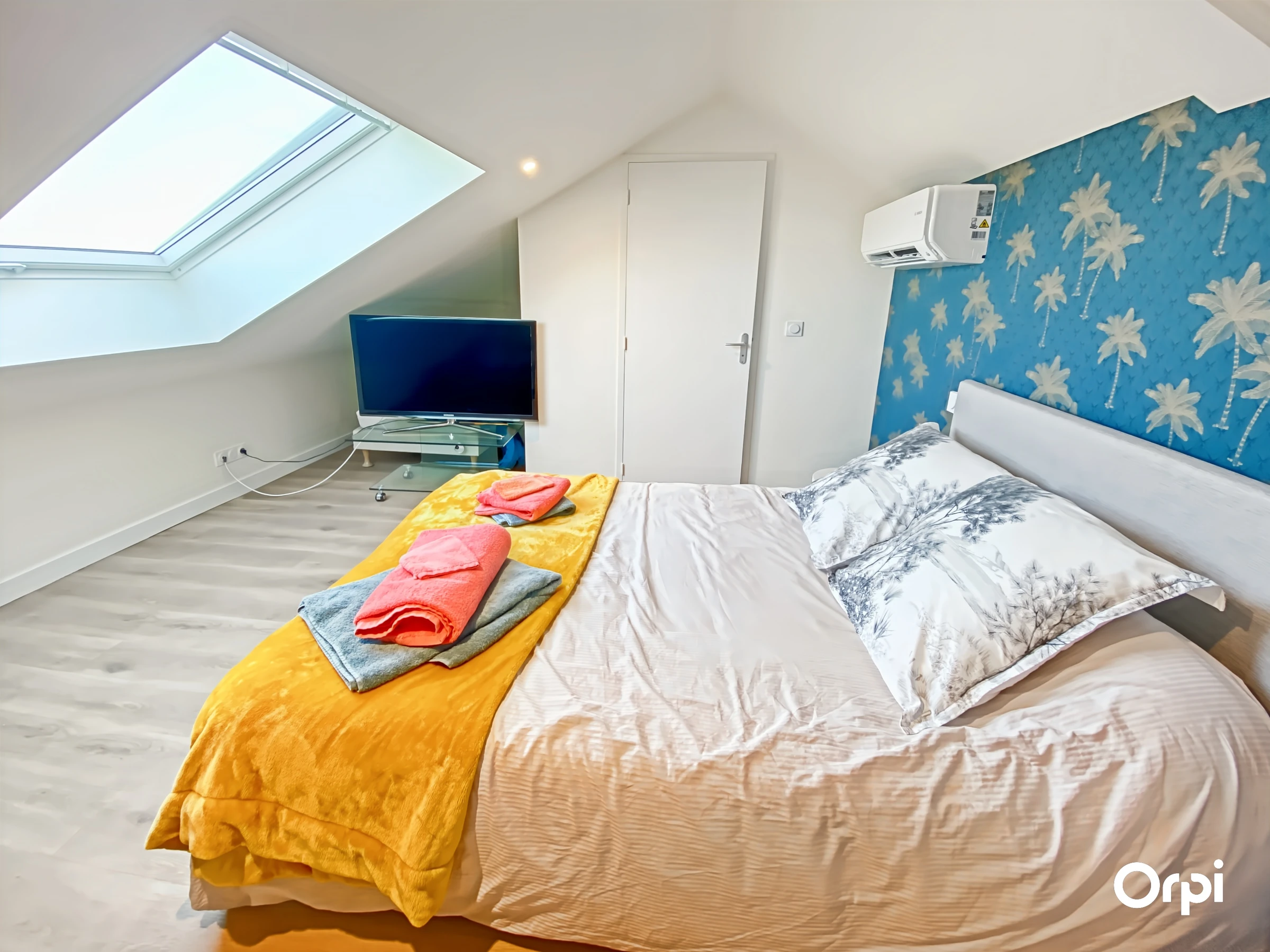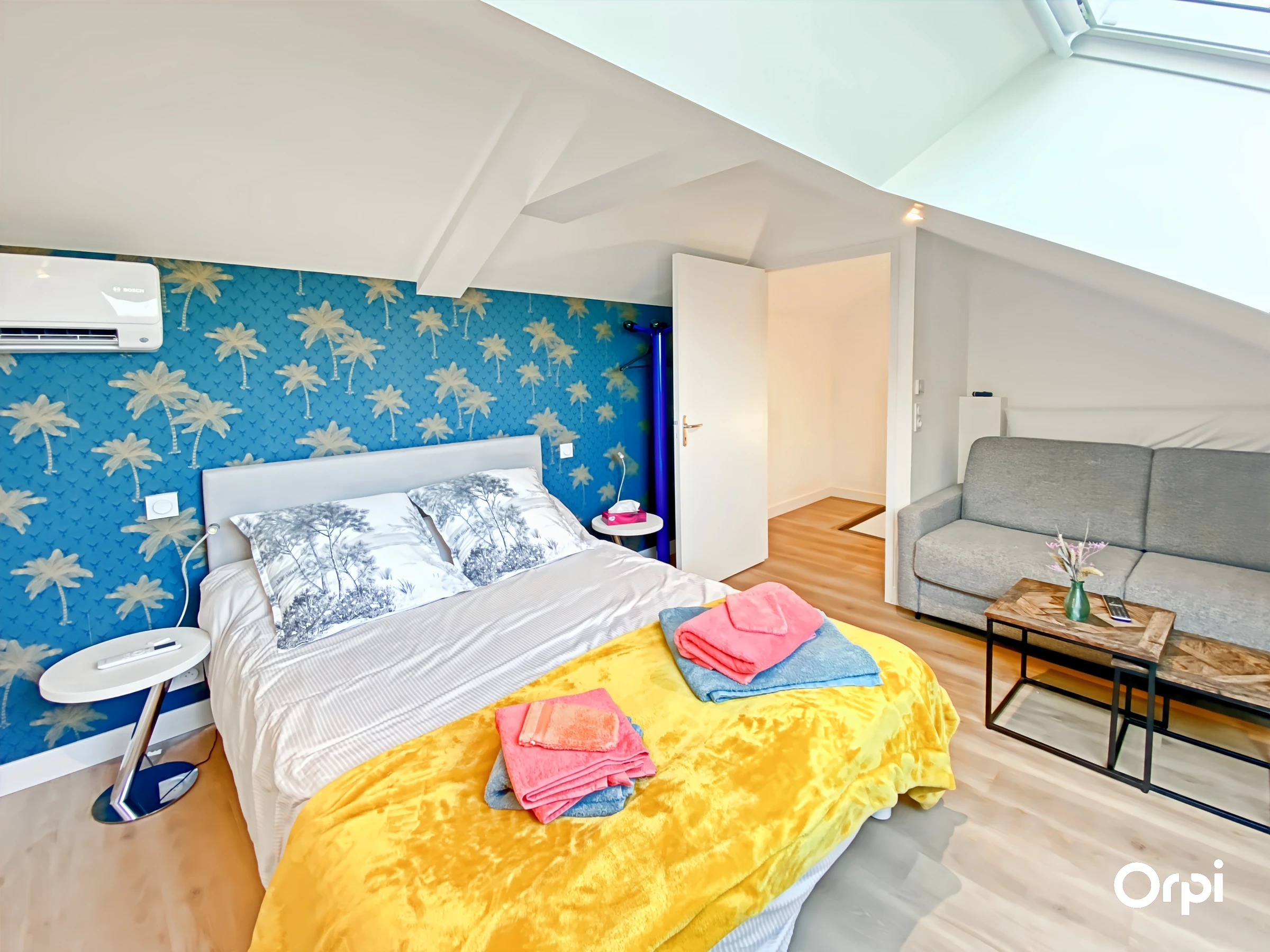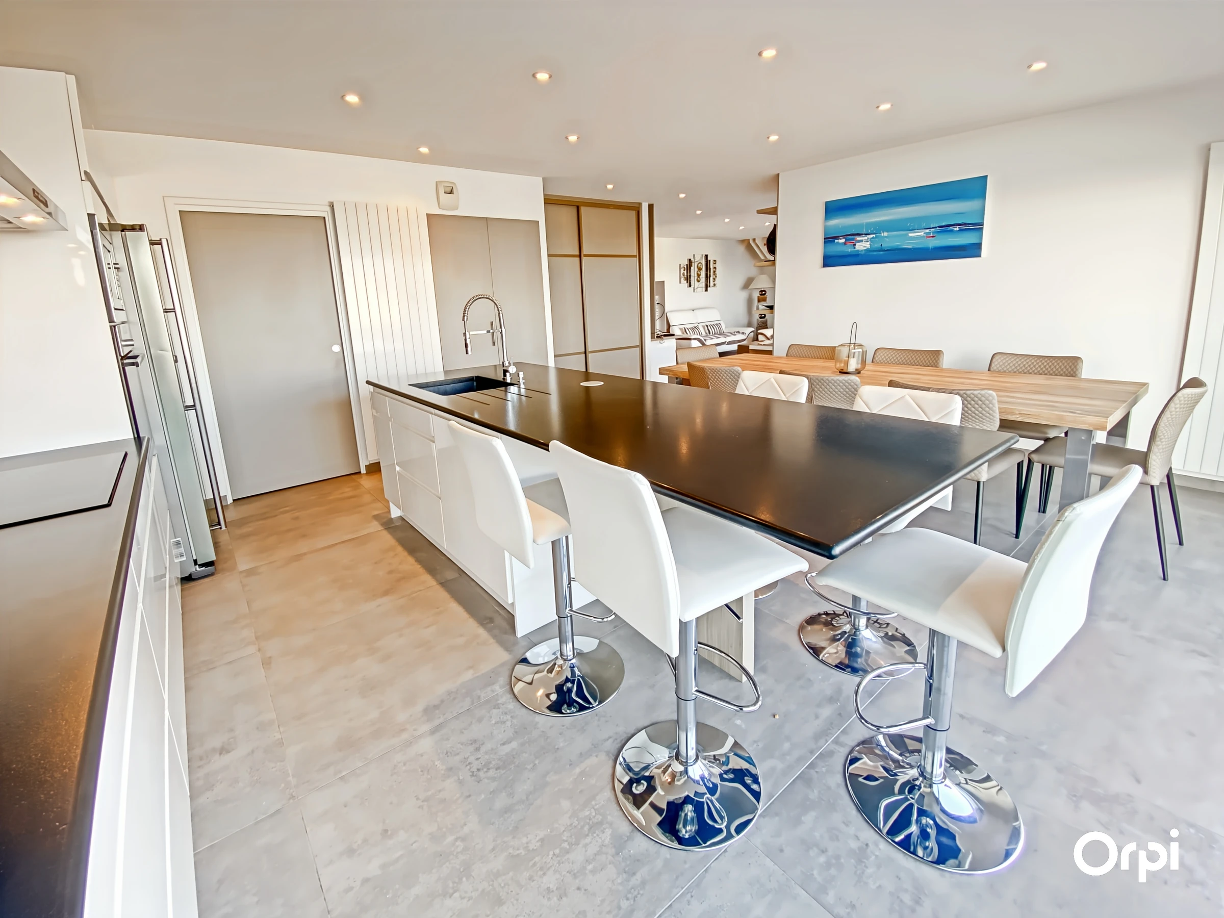 Beautiful 4-room duplex apartment with a very sunny terrace featuring a jacuzzi (from May to September) and a full view of the Gâvres Sea in a small, luxury 2015 residence, "LES ALIZÉS." "Relaxation and tranquility guaranteed." It offers an entrance hall with closet, a living room opening onto a dining room and kitchen/laundry room with access to a sea-view terrace, two bedrooms (queen-size bed) with closet, a bathroom, and a toilet. The upper floor features a mezzanine with sea views and a shower area (queen-size bed + queen-size sofa bed). Parking is free in the residence, and the accommodation benefits from Wi-Fi and a private garage.