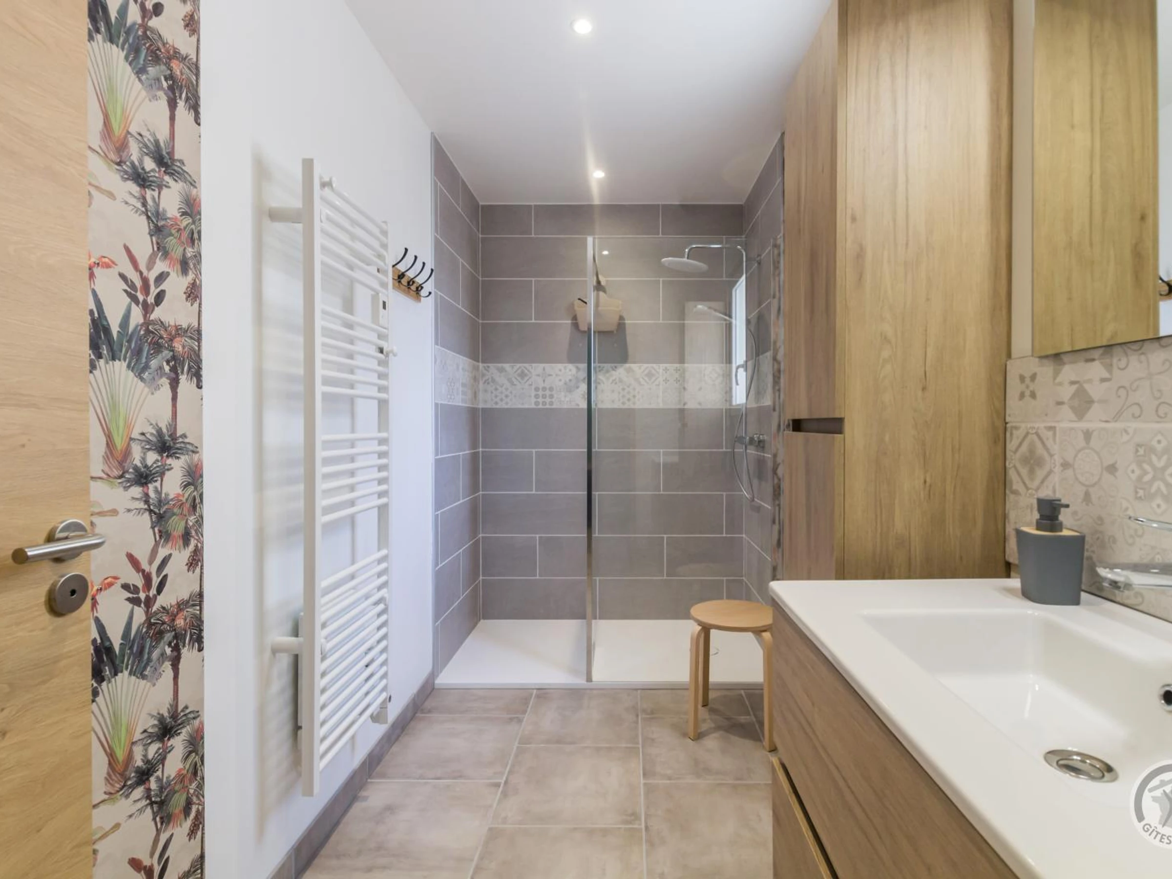 Detached house less than 100m from the beach. Ground floor: Shower room, bedroom 1 (double bed 140x190cm and bunk bed 90x190cm), bedroom 2 (queen bed 160x200cm), bedroom 3 (double bed 140x190cm), WC with shower. Large utility room with laundry facilities (washing machine), sink, and garage door leading outside (bike or trailer storage possible). First floor: Living room (smart TV, Wi-Fi) with fully equipped kitchenette (oven, induction hob, dishwasher, microwave, refrigerator with freezer, standard coffee maker + Dolce Gusto machine). Separate WC. Baby equipment available on request (cot, high chair, changing table, baby bath). Electric heating (underfloor heating) included. Bed linen provided and beds made upon arrival. Towels available for hire. Cleaning service available at an extra cost. Private, unfenced garden. Balcony terrace on the first floor. Garden furniture. Gas barbecue. Parking. The inverted layout of this comfortable house offers a refreshing change of pace, with the light-filled living area located on the first floor. Combined with the large balcony terrace, it provides a lovely view of the sea at its far end and allows you to make the most of the sunshine. The extra-large sofa in the living room is perfect for gathering the whole family for drinks or a cozy evening watching TV. A beautiful contemporary staircase (with high steps) leads to the three bedrooms and bathrooms on the lower floor. The owners have thoughtfully included a second walk-in shower, ideal for rinsing off after a day at the beach, as well as a laundry room that offers storage space for bicycles or nautical equipment. You'll discover the magnificent harbor of Portbail, the picturesque village, and the stunning sunsets over Jersey. The nearby land sailing center is also a great opportunity to try this outdoor activity with the family!