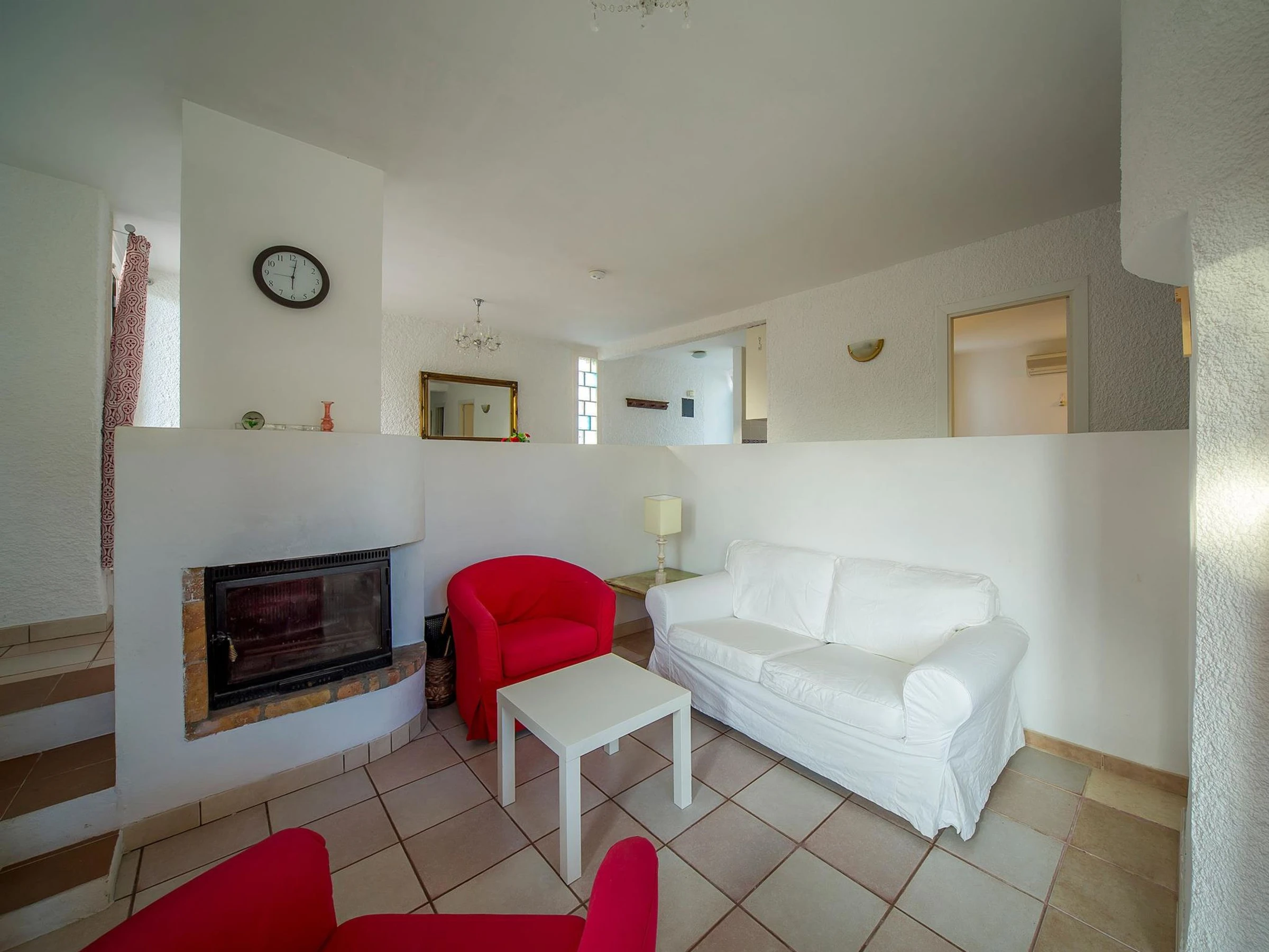Living/dining room with radio, open fireplace and dining-table. Smoking not allowed.