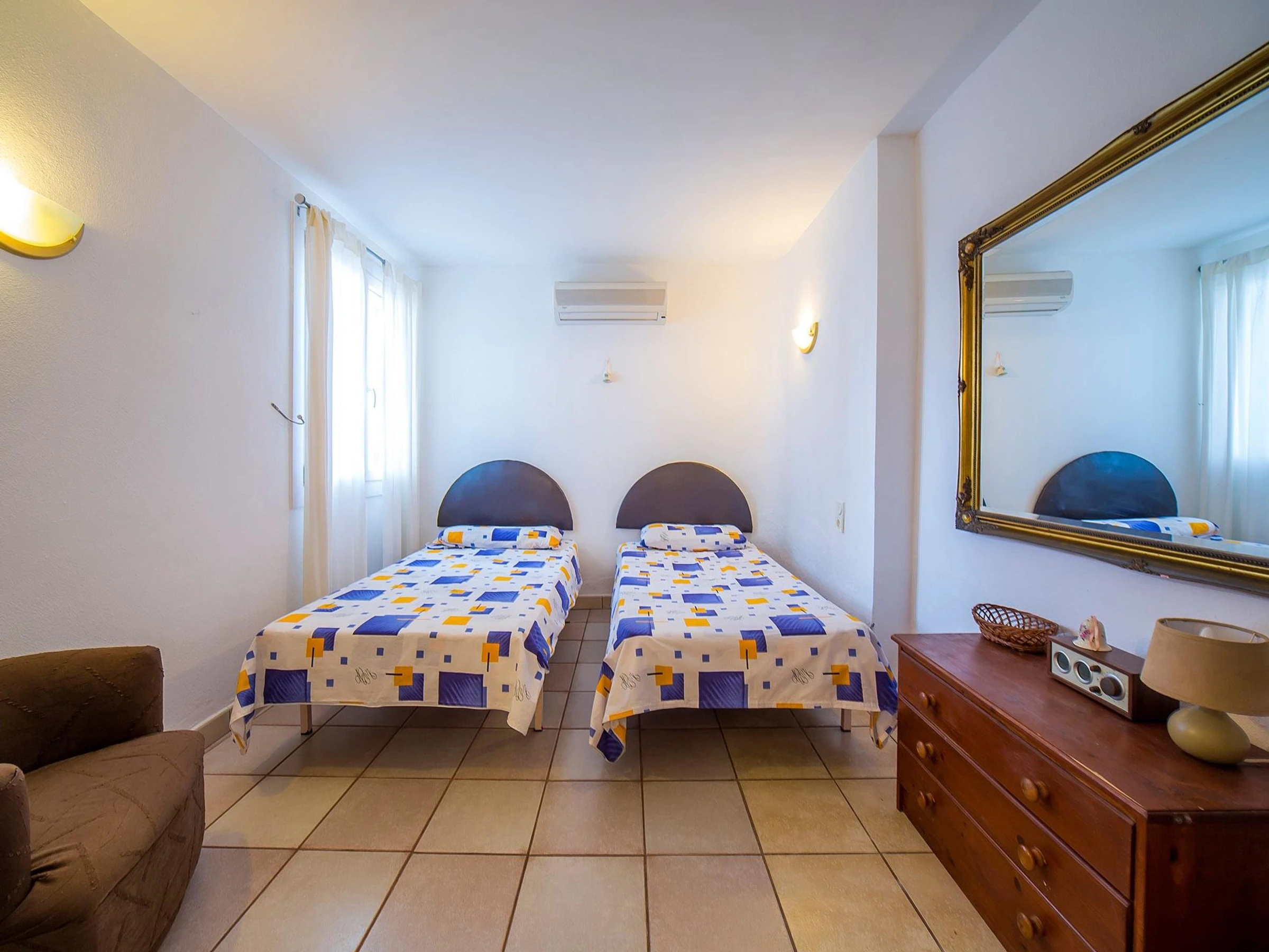 Sleeping room with 2 single beds. Sleeping room with 2 single beds and 1 folding bed.