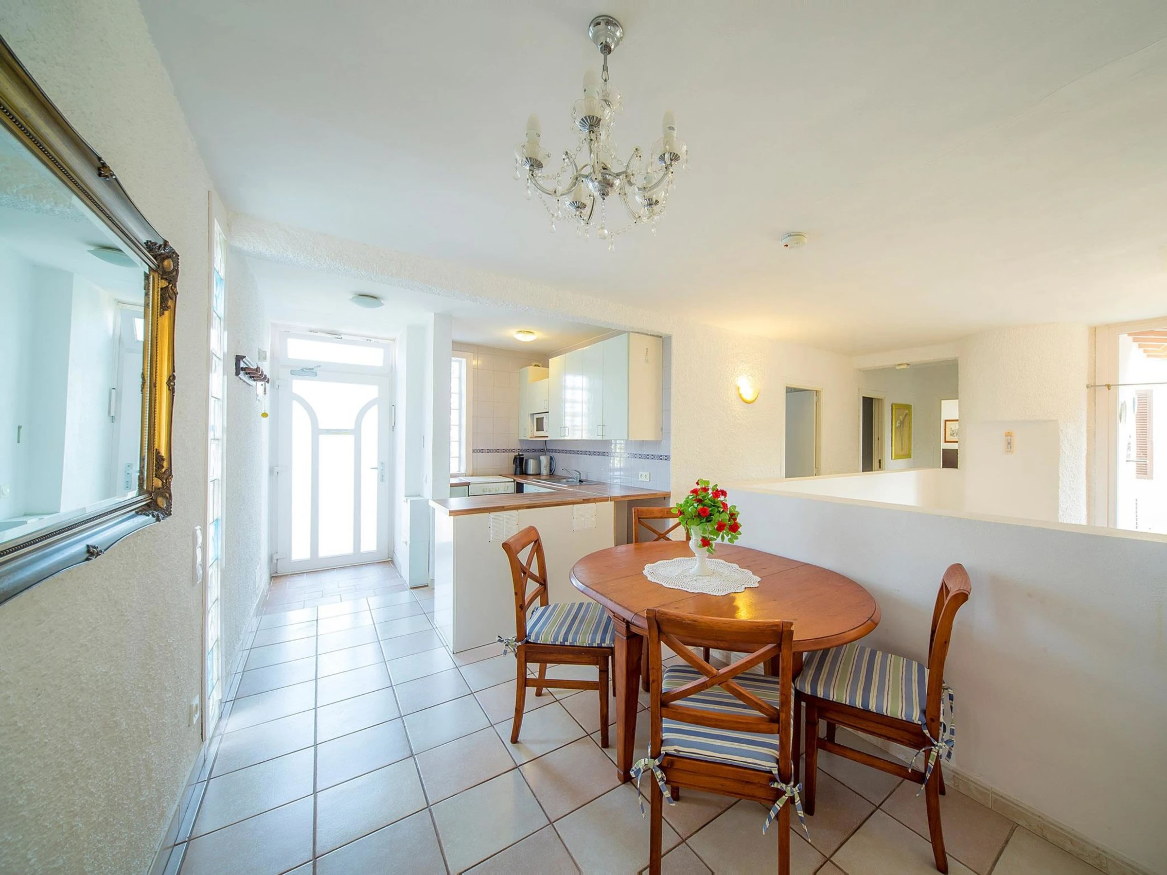 Access & Parking: on the road. All-season motor access to 20 m from the house. Car recommended, footpath 15 m. Situation: in the district of Porto Cristo Novo, above Porto Cristo, quiet, sunny position in a residential area, by the sea, on the beach. View from the apartment of the garden.