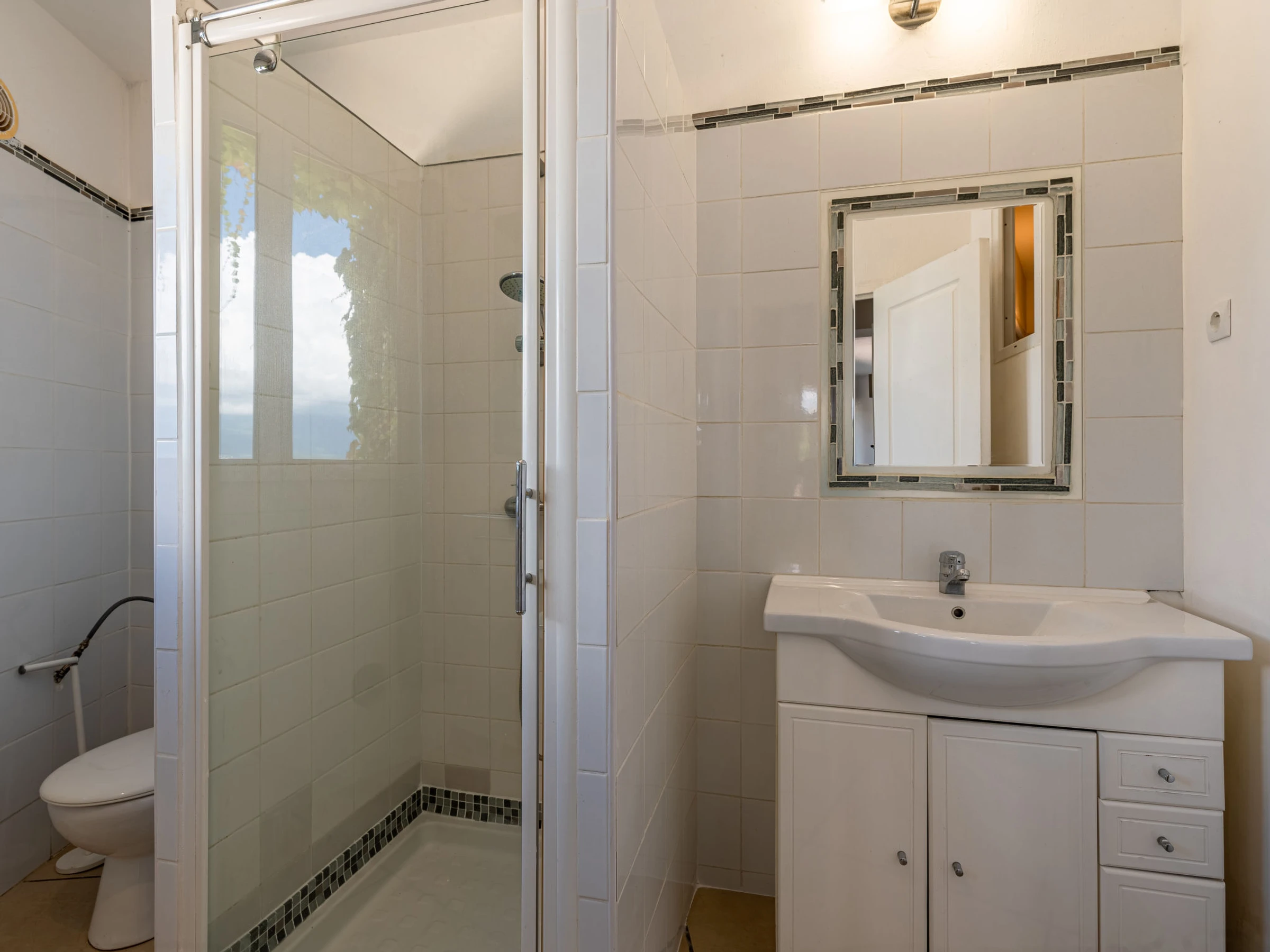 3-family house. In the district of Palombaggia, in the resort 7 km from the centre of Porto-Vecchio, in a sunny, elevated position, 750 m from the sea, 2.5 km from the beach. For shared use: property 1 ha. Steep motor access to the house. Parking at the house. Shop 6 km, supermarket 5 km, shopping centre 8 km, restaurant 350 m, bar 6 km, bakery 6 km, sandy beach "Pavellone" 2.5 km. Sports harbour 6.8 km. Nearby attractions: Plage de Palombaggia 7.8 km, Plage de Santa Giulia 9.8 km, Bonifacio 30 km, Iles Lavezzi. Well-known lakes can easily be reached: Lac de l'Ospédale 30 km. Hiking paths: Aiguilles de Bavella 63 km, Roccapina 41 km. Please note: car recommended. Owner lives in separate semi-detached house.