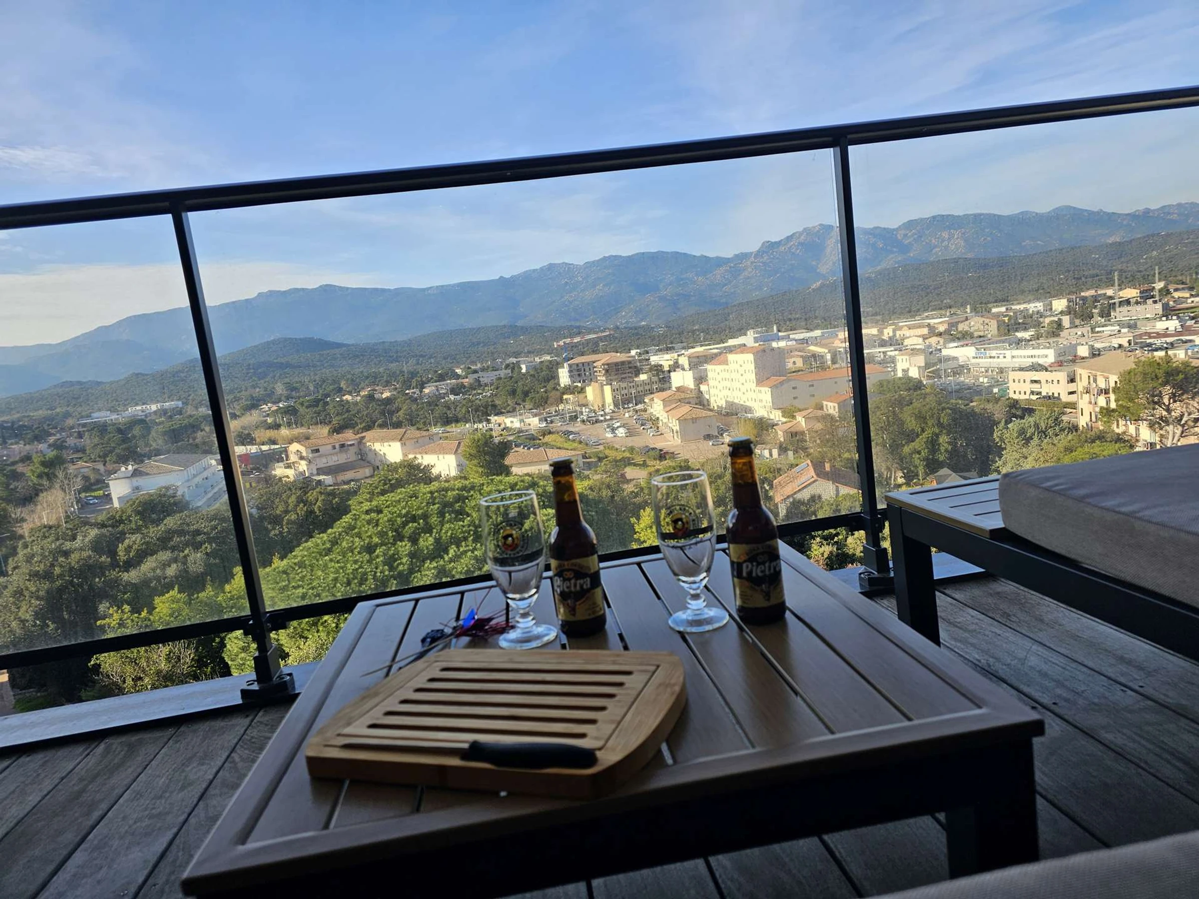 Cet appartement bénéficie d'une pièce principale dotée d'une cuisine équipée ouverte sur le coin nuit composé d'un lit escamotable en 160x200, et de 2 lits gigognes en 90x190, cela donnant sur une jolie terrasse bénéficiant d'une vue sur la vallée de l'Ospedale ainsi qu'une salle d'eau avec WC.