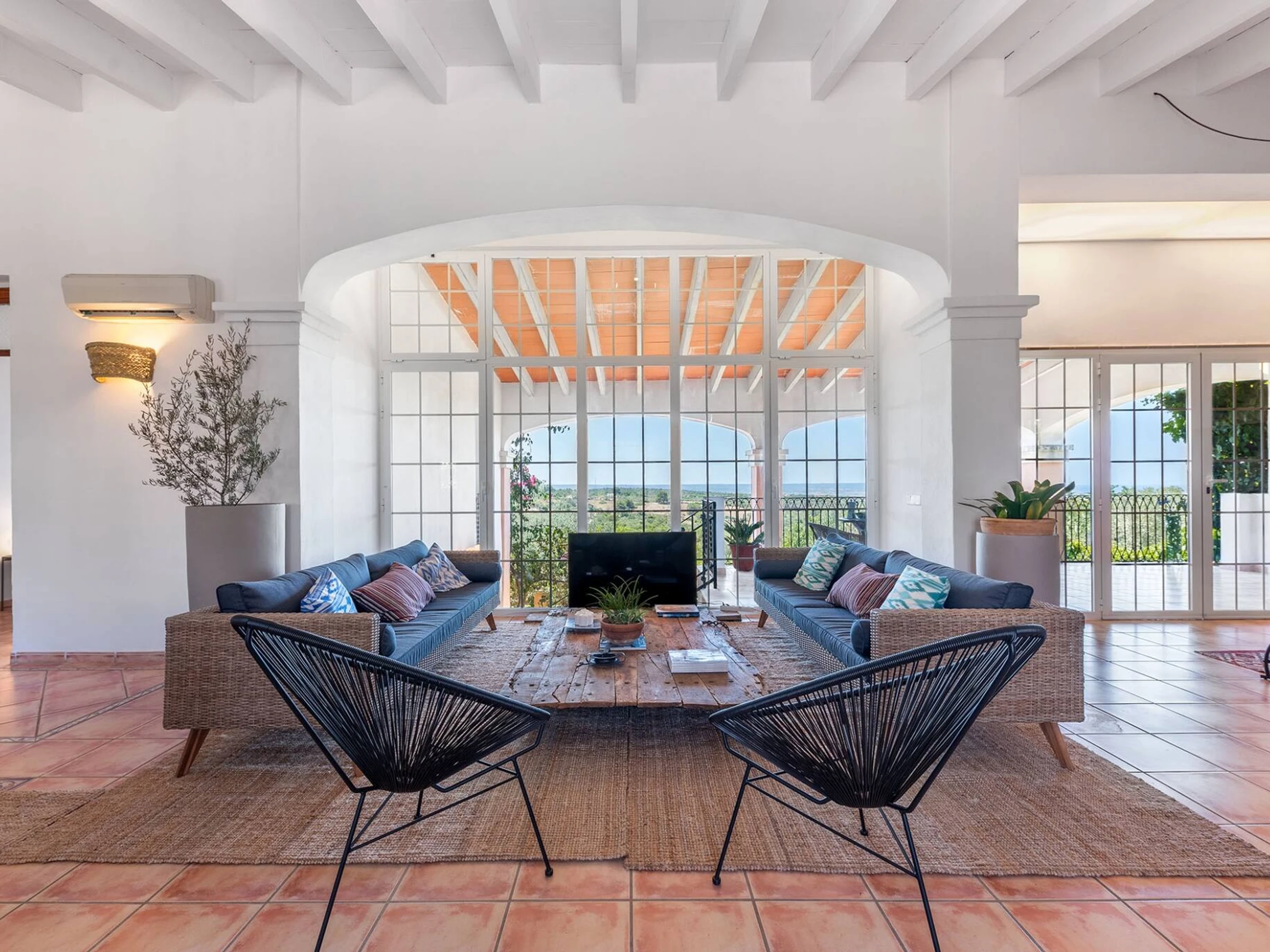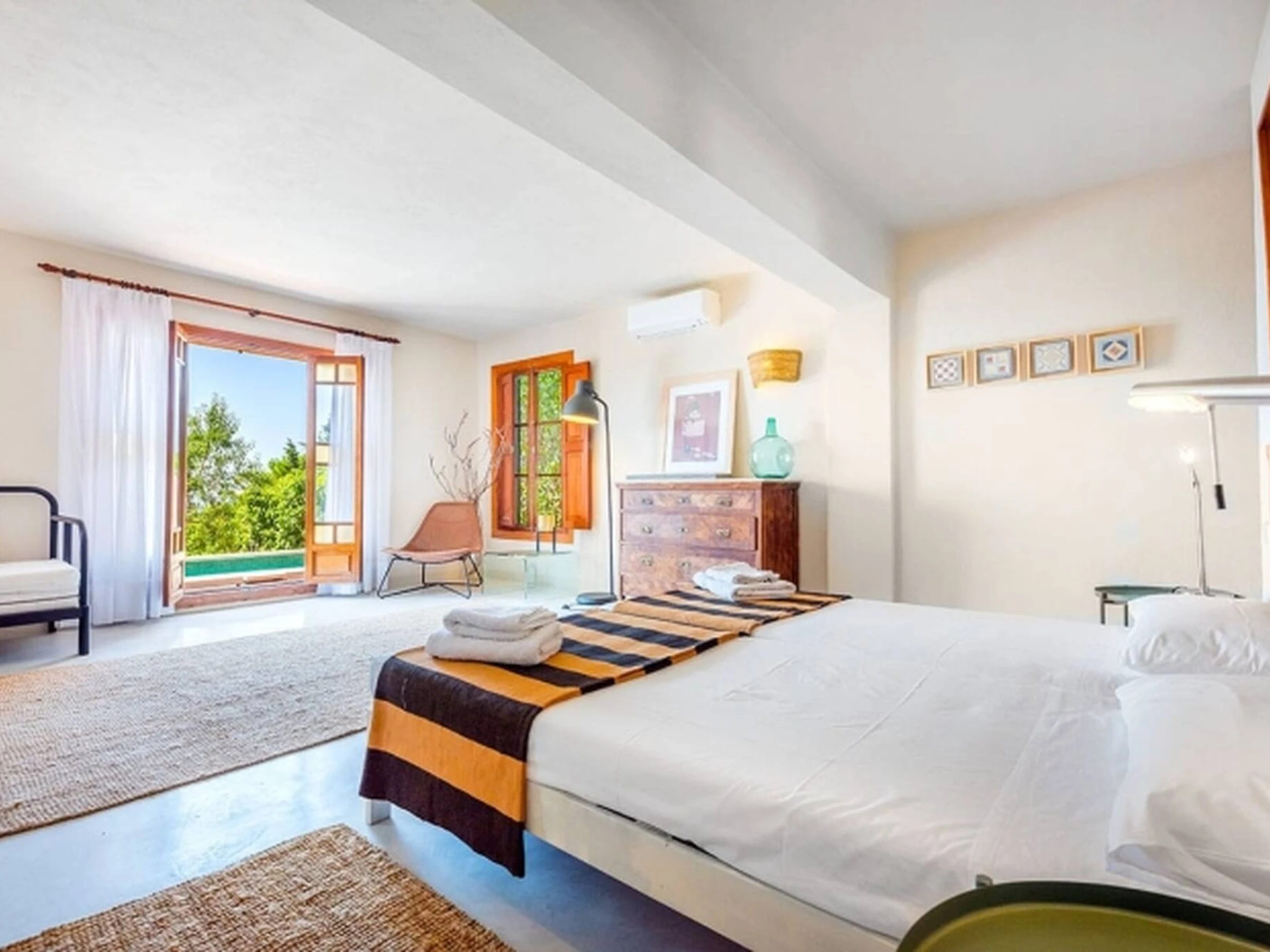 The ground floor has two large bedrooms, one of them with an en-suite bathroom, the other bedroom has a dressing room, and a ( 2 extra)) and. floor has its access the the above Thereplace and air conditioning throughout the property, so comfort is guaranteed in any time of the year. For our youngest guests, we have 2 cots and 2 high chairs at their disposal.