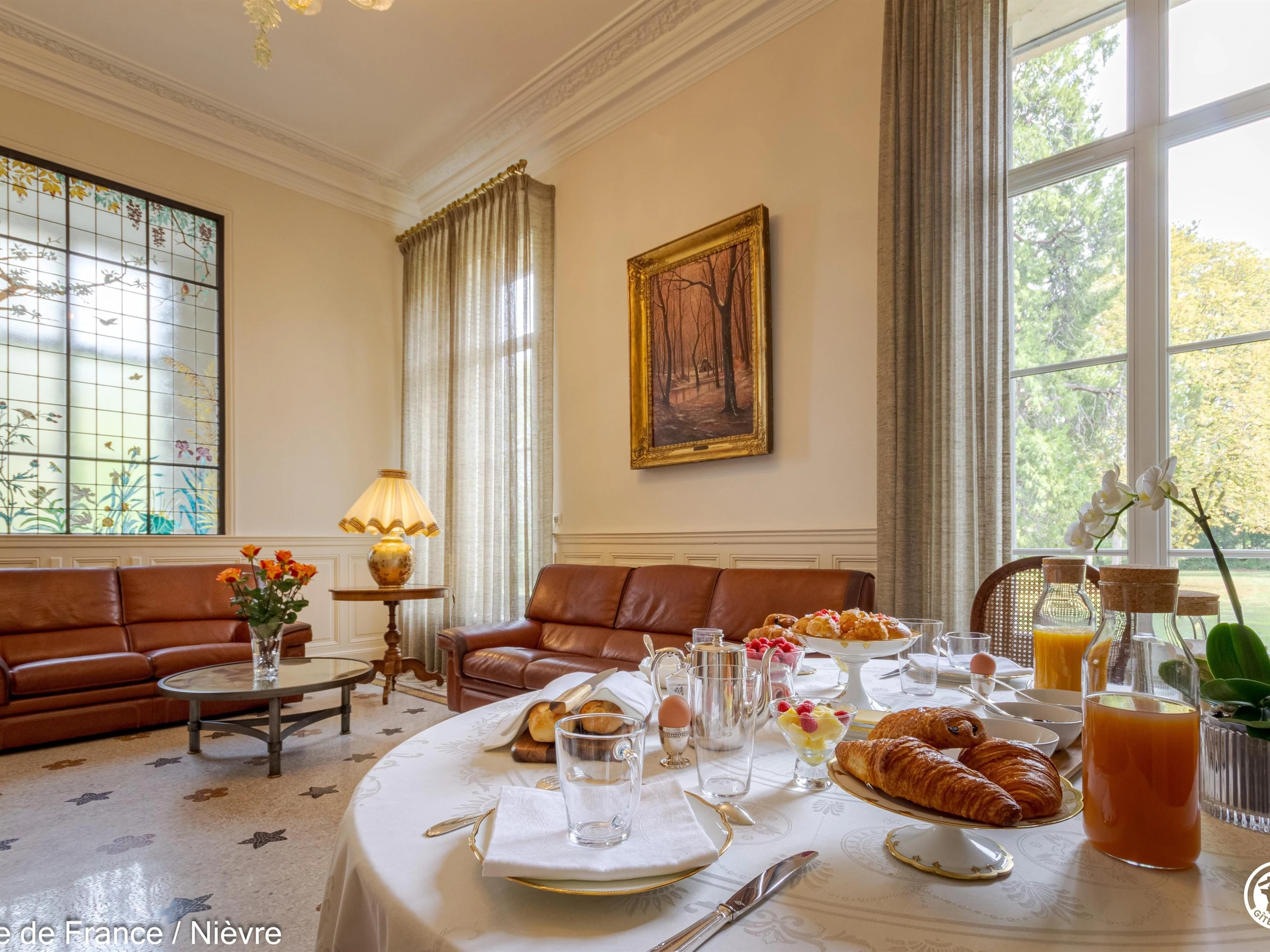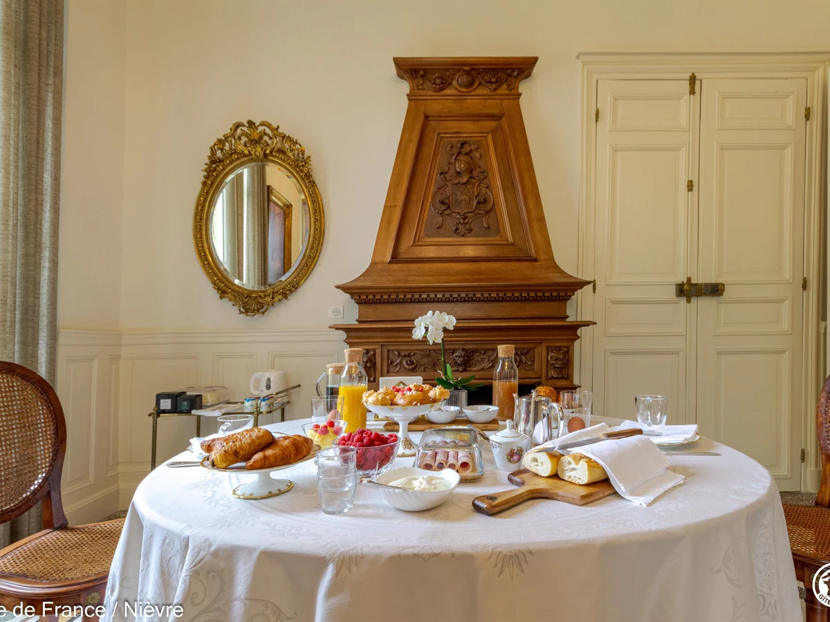 In the lounge and its large dining room, you are in the ideal place to experience château life, for one or more nights in this exceptional guest room. Breakfast is served between 8:00 and 9:30 am.