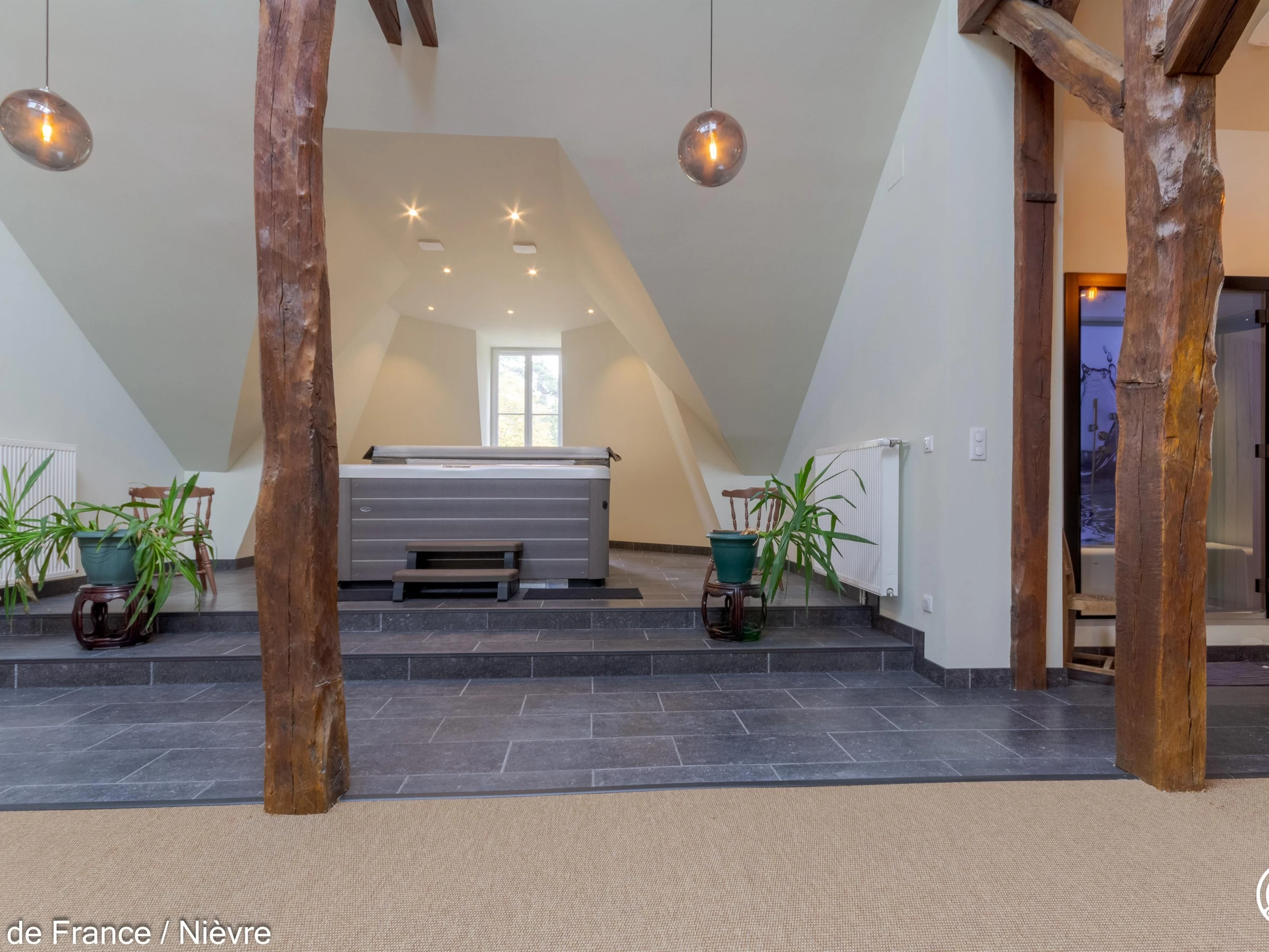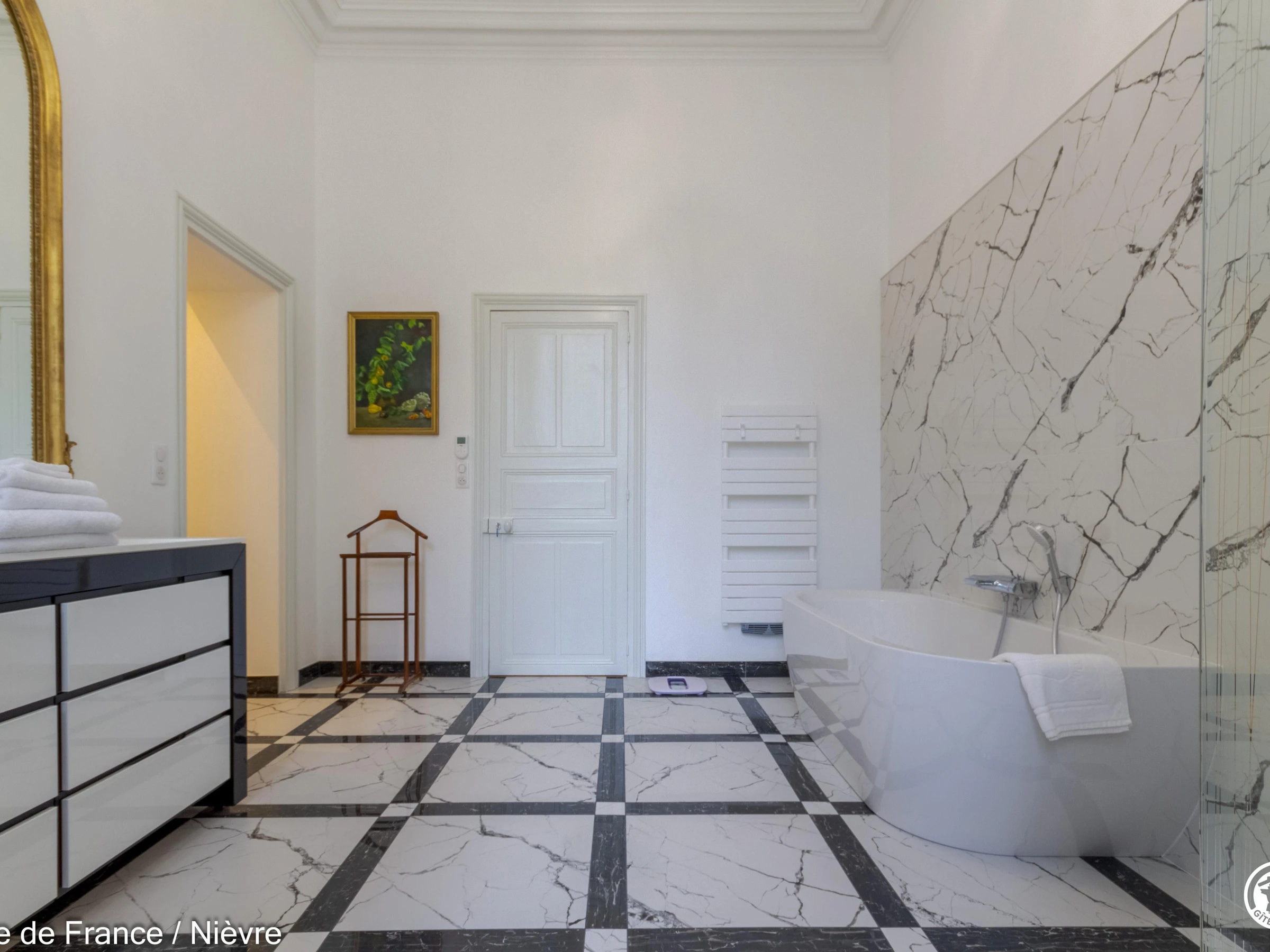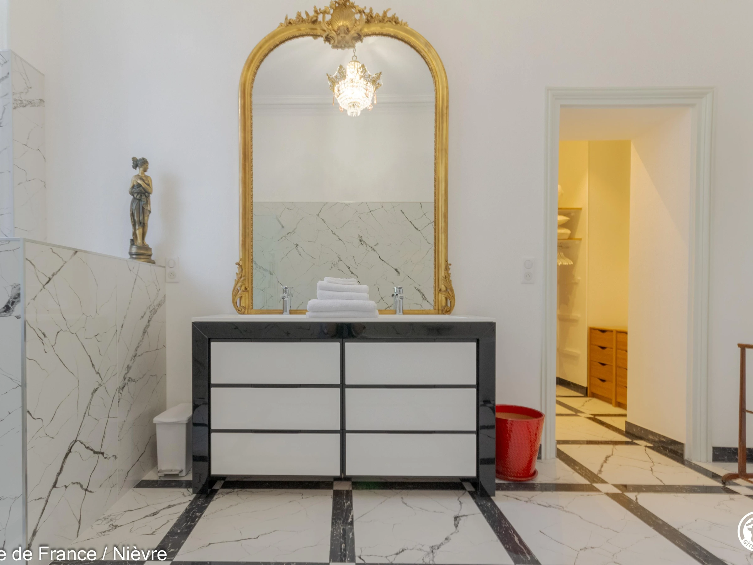 During your stay at the château, you can enjoy the proximity of the Sancerre and Pouilly vineyards, where you can taste exquisite wines and discover the charm of this renowned wine region. The Rotonde room, a haven of peace in 50 m², is located on the first floor of the Château des Métairies and offers breathtaking views of the large wooded park surrounded by historic walls. This room is decorated with antique furniture and offers modern comforts with its king-size bed (180 x 200 cm), dressing room, large-screen television, minibar, and complimentary tea and coffee making facilities. Its large private bathroom with park views is equipped with a bathtub, walk-in showers, towel warmer, double sinks, and separate WC.