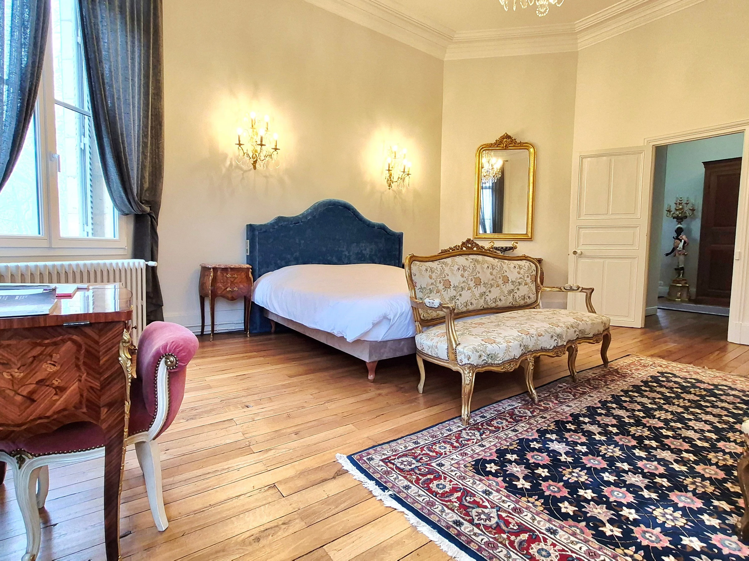 The Rotonde room, a 50 m² haven of peace on the first floor of the Château des Métairies, offers breathtaking views of the large wooded park surrounded by historic walls. You will be the only guests in the château! Secure covered parking is available.