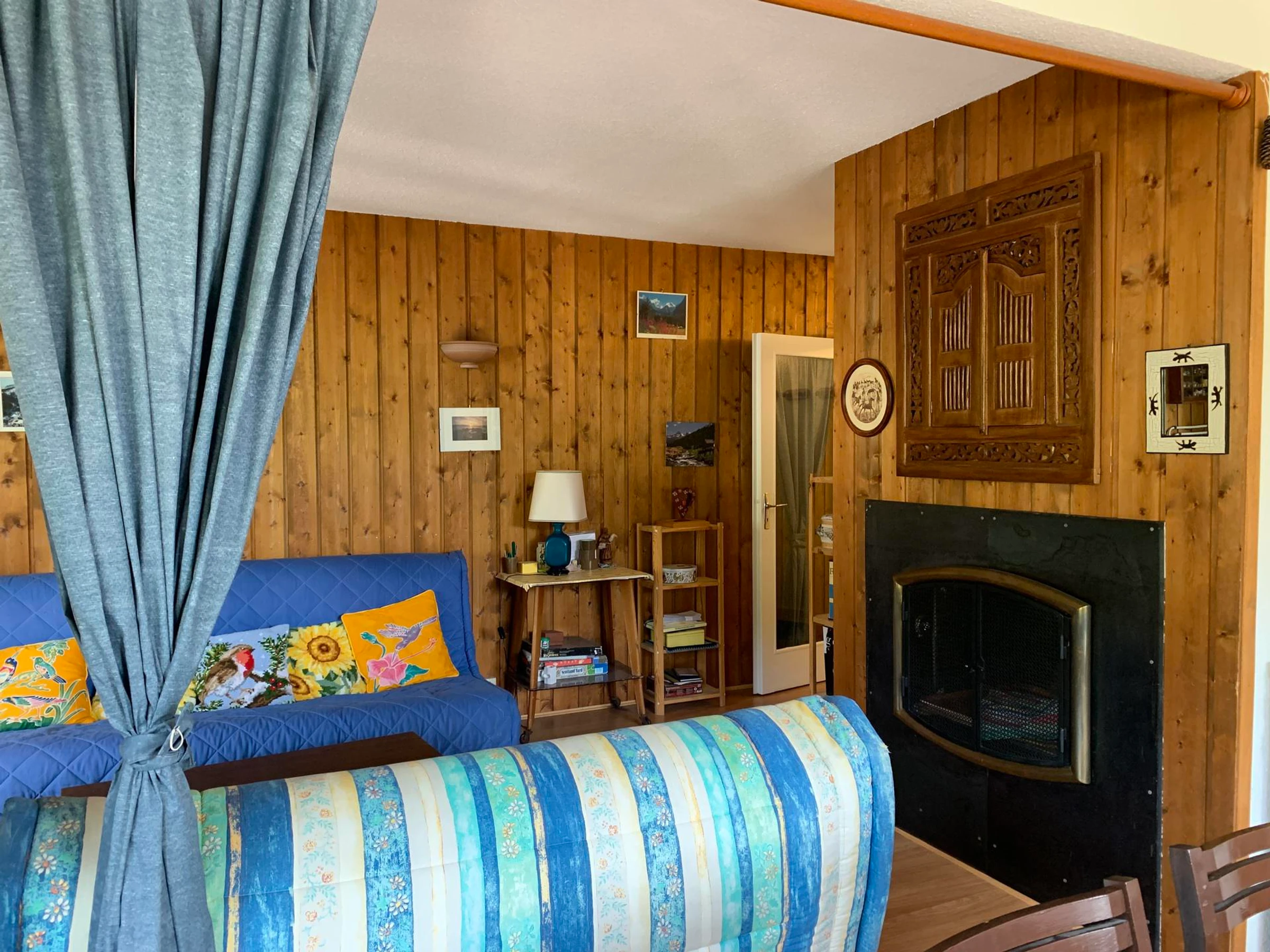 * Living room: two sofas, one of which is a sofa bed, TV and DVD player, decorative fireplace, balcony access, electric roller shutter;