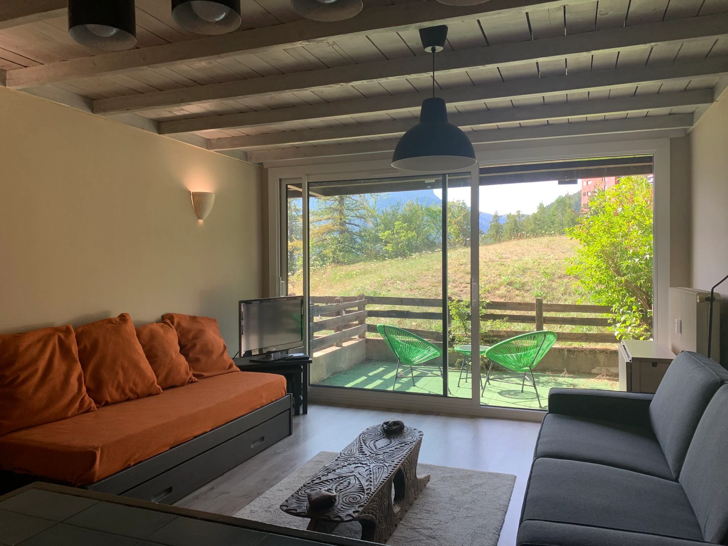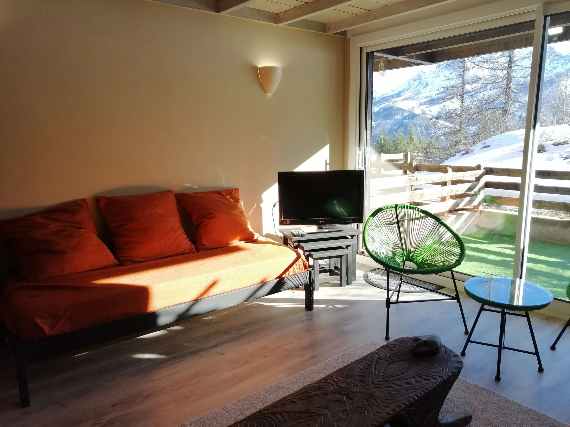 Studio for 4/5 people, approximately 31m². Located on the 3rd floor with elevator. South facing with balcony and view over the slopes and the Pain de Sucre mountain top.