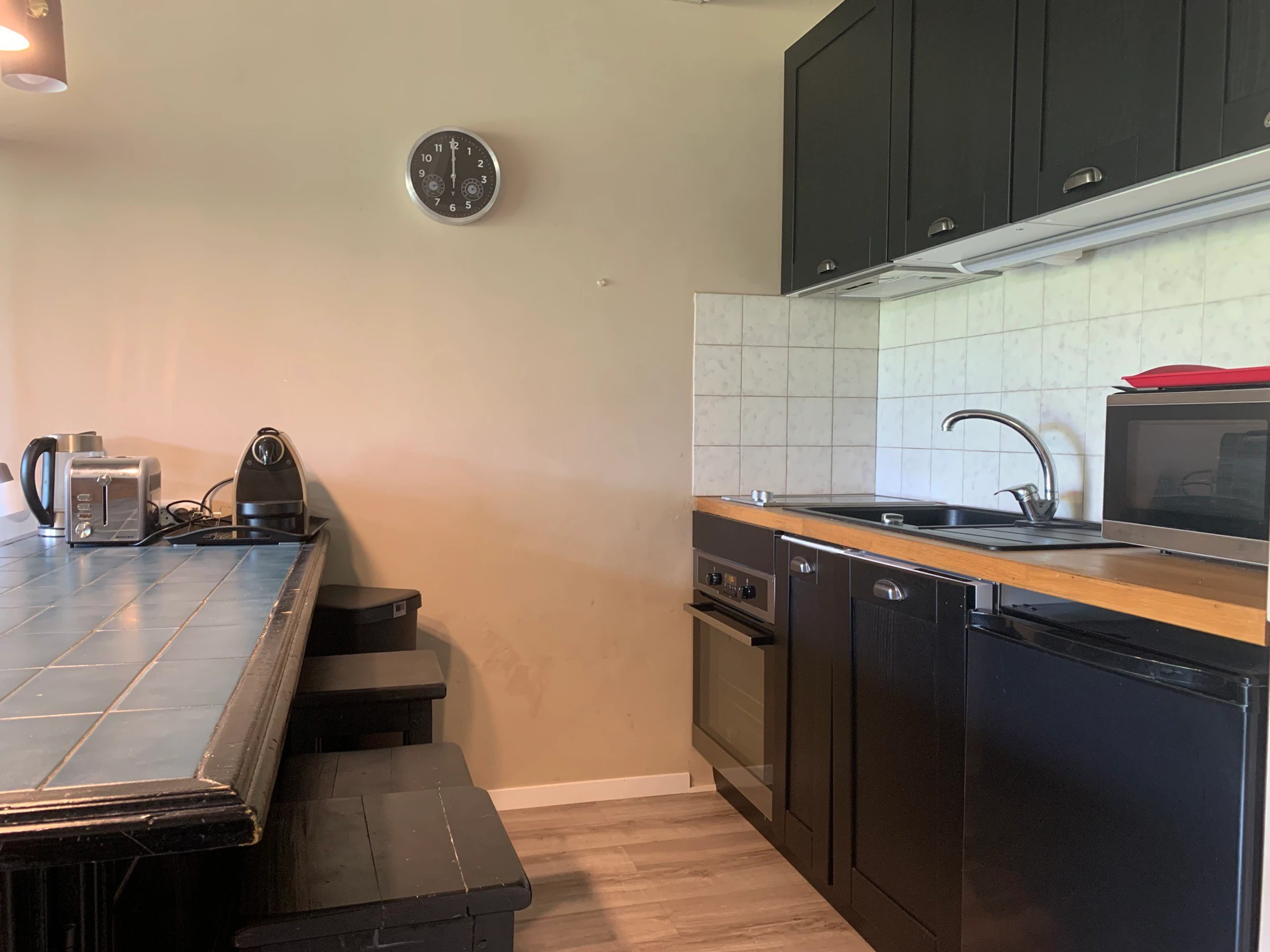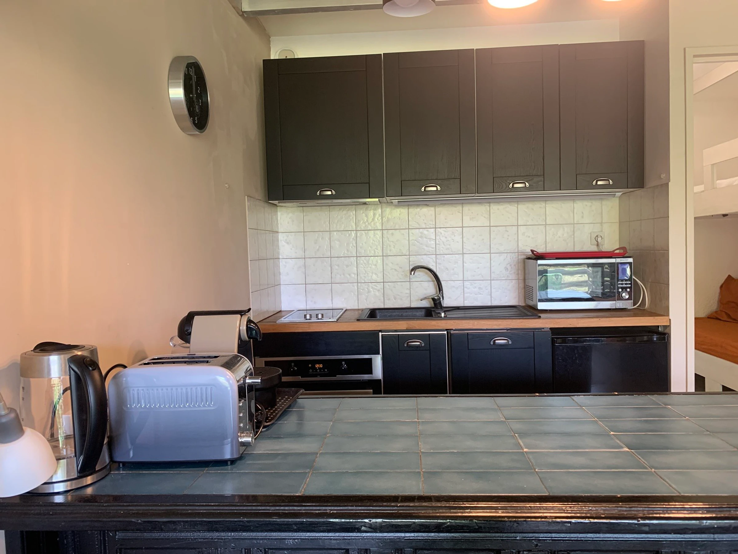 * Open plan kitchen: oven, microwave, fridge, freezer, 2 ceramic hobs, dishwasher, Nespresso machine, many cupboards;