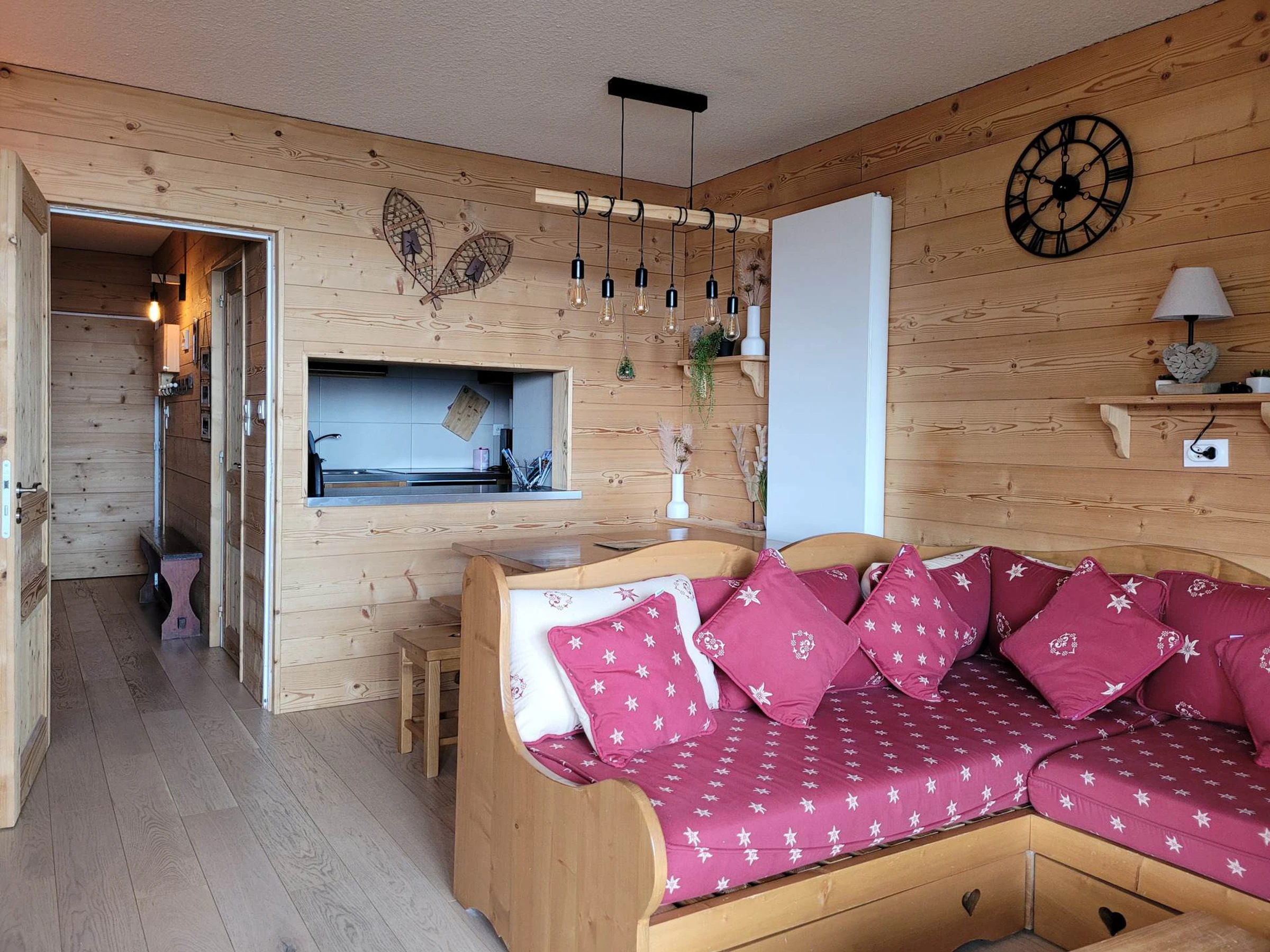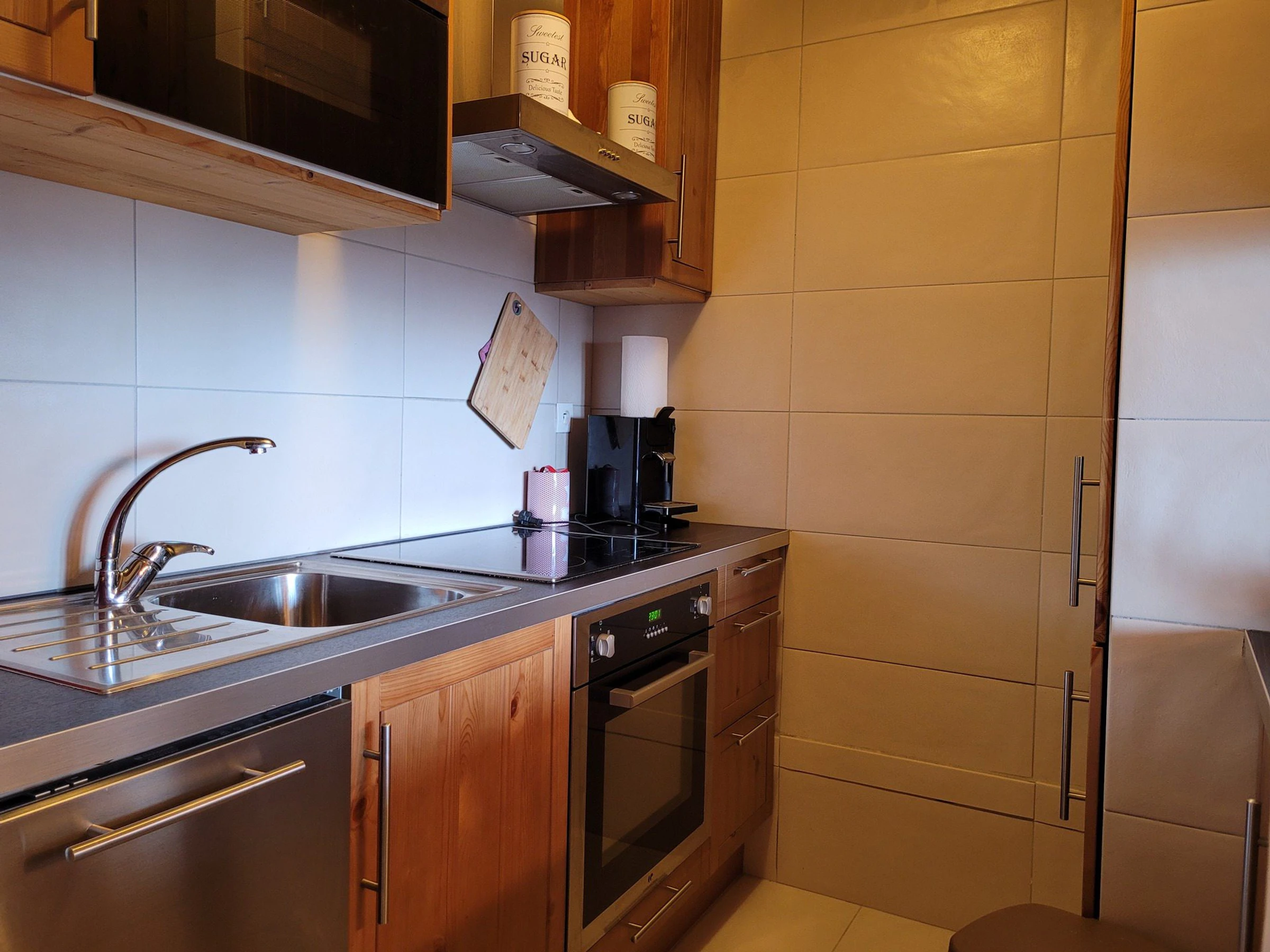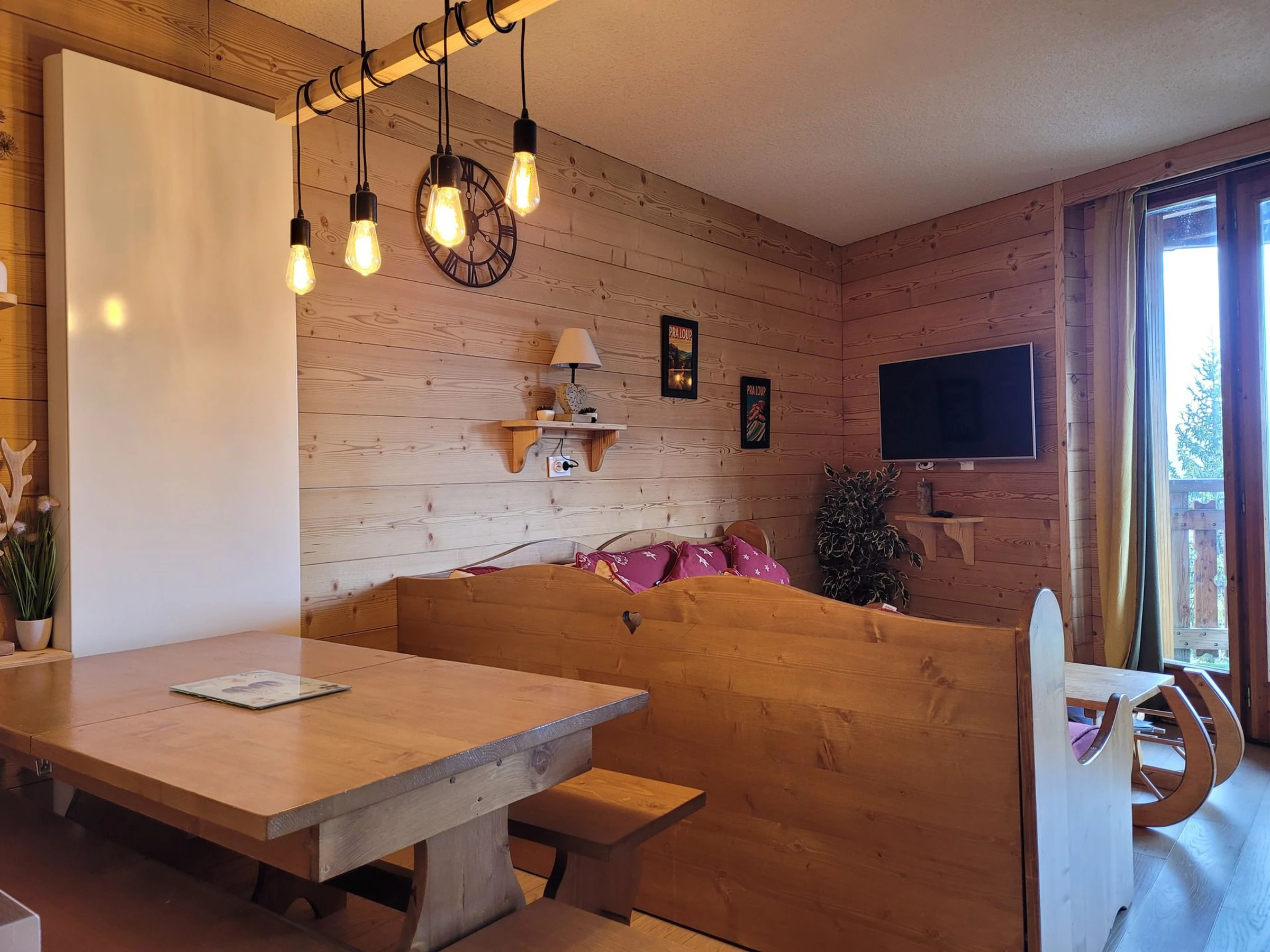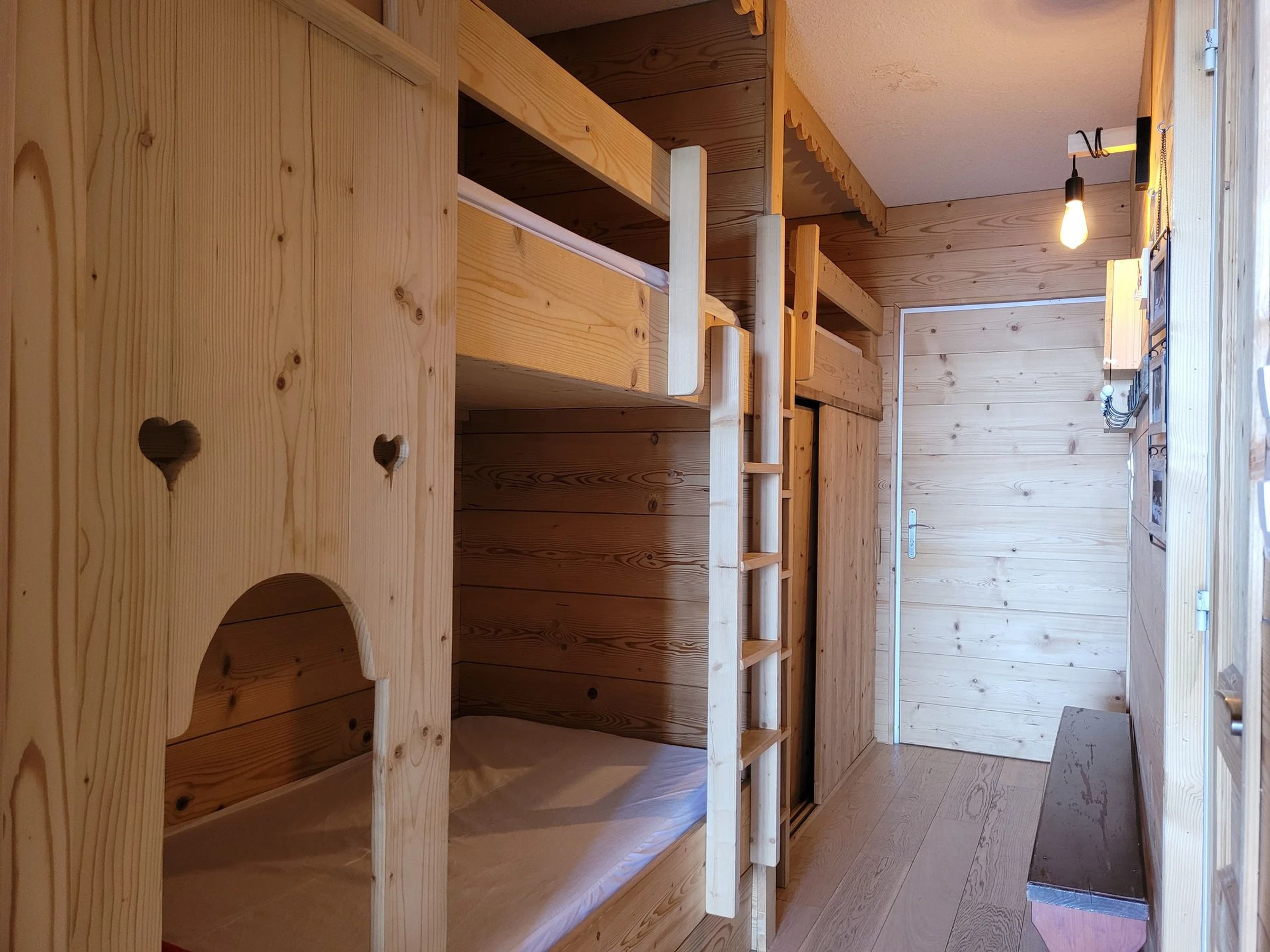 COMMENTS: Magnificent and spacious studio, completely renovated in wood, mountain style, niches for bunk beds, storage and folding bed custom-made. Located near the slopes and the shopping galery with a superb view of the valley and the mountains from its large balcony. Individual ski locker.