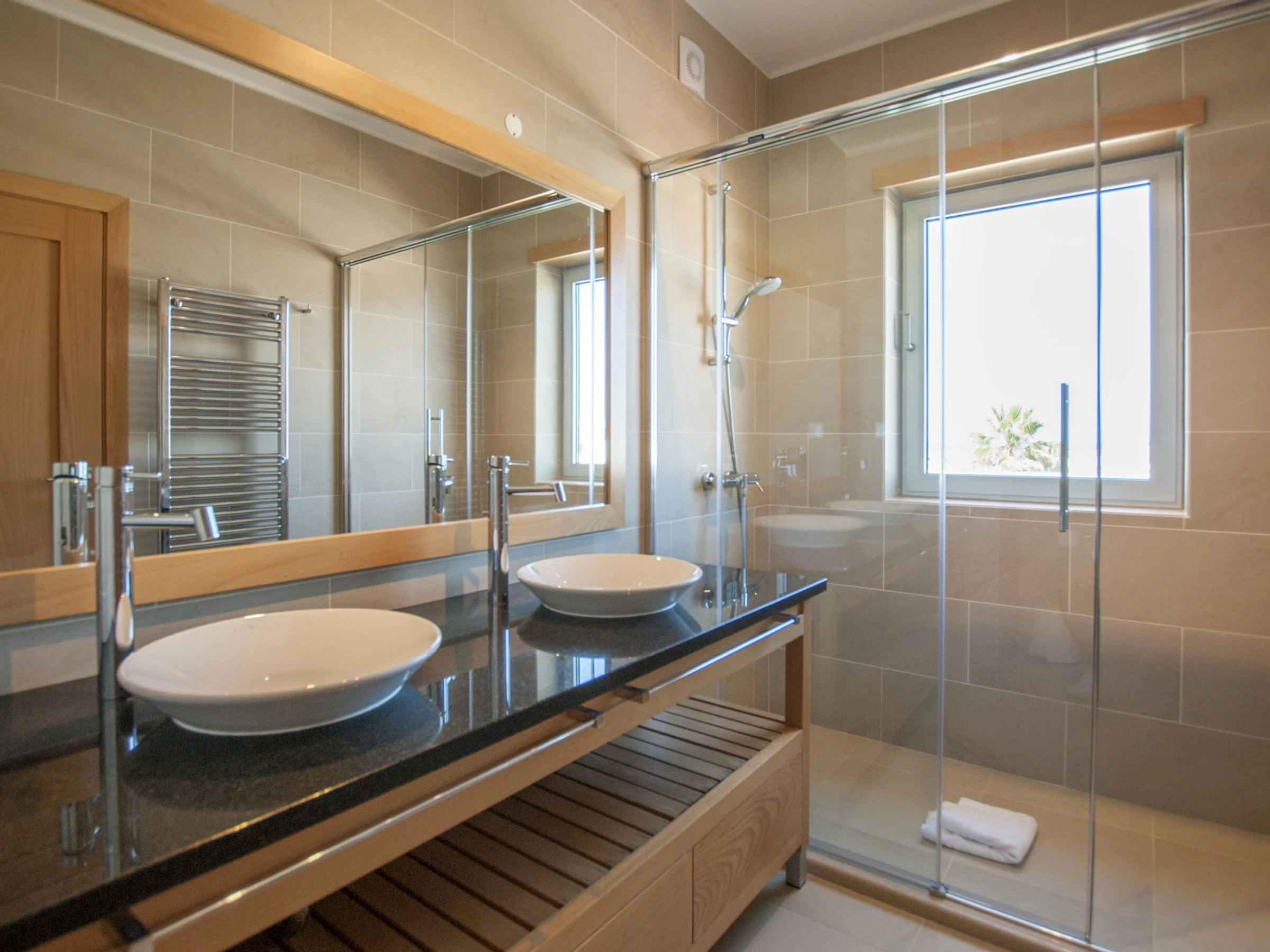 2 suites with double beds and en-suite bathroom with shower