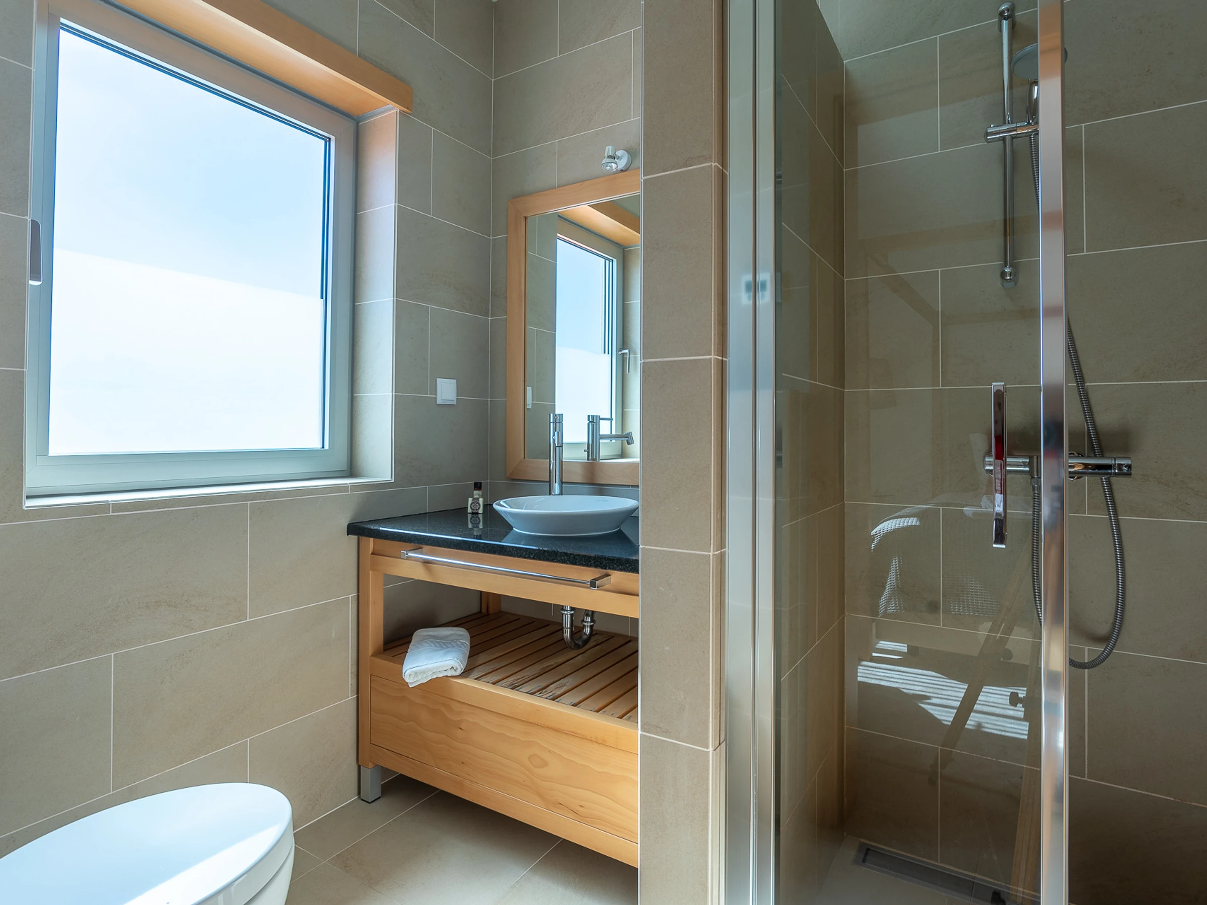 1 suite with double bed and ensuite bathroom with shower, terrace