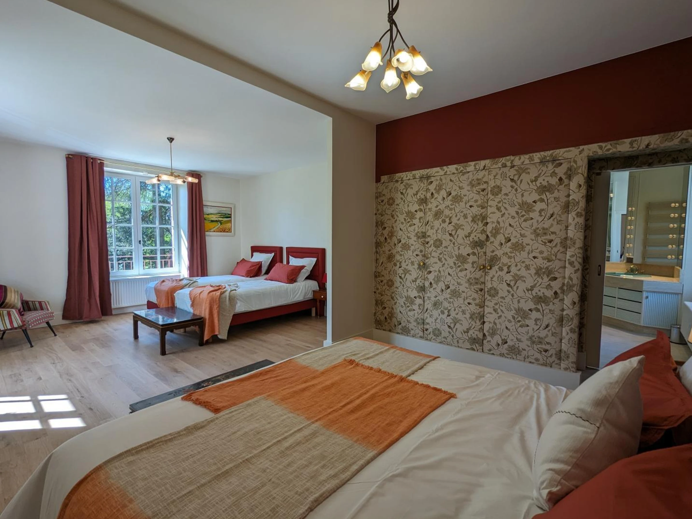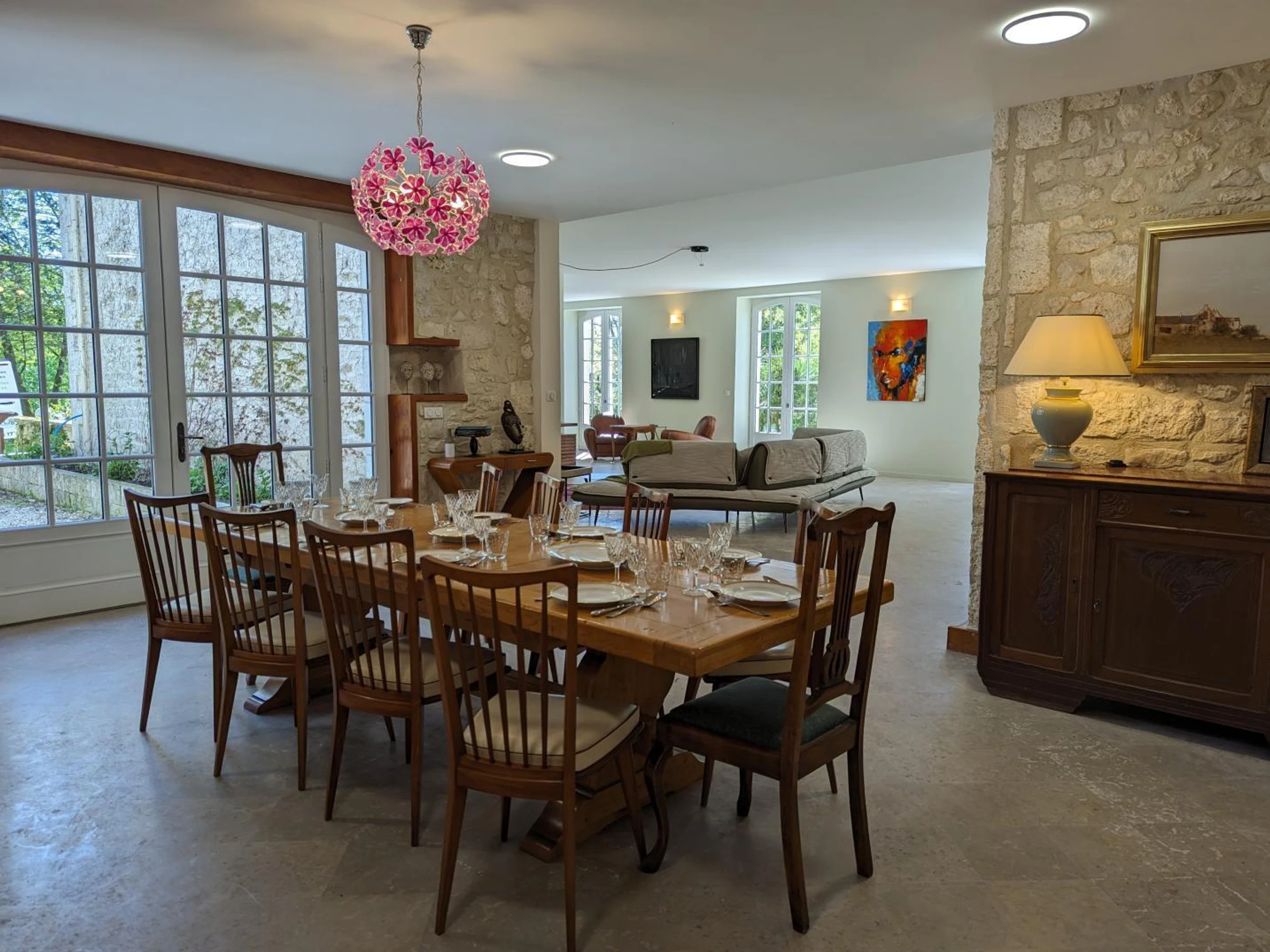Regular cleaning is available. Non-smoking gîte - Certified Panda Gîte in 2025. The wow factor begins in front of the hornbeam driveway that leads to the 7-hectare property, which is completely enclosed. You will then be captivated by the majestic trees, the south-facing house, its spaces for adults and children, its billiards table, and its sumptuous staircase. Audrey and Thierry have hunted for antiques, paintings, and lamps, transporting you from the 1930s to more contemporary times.