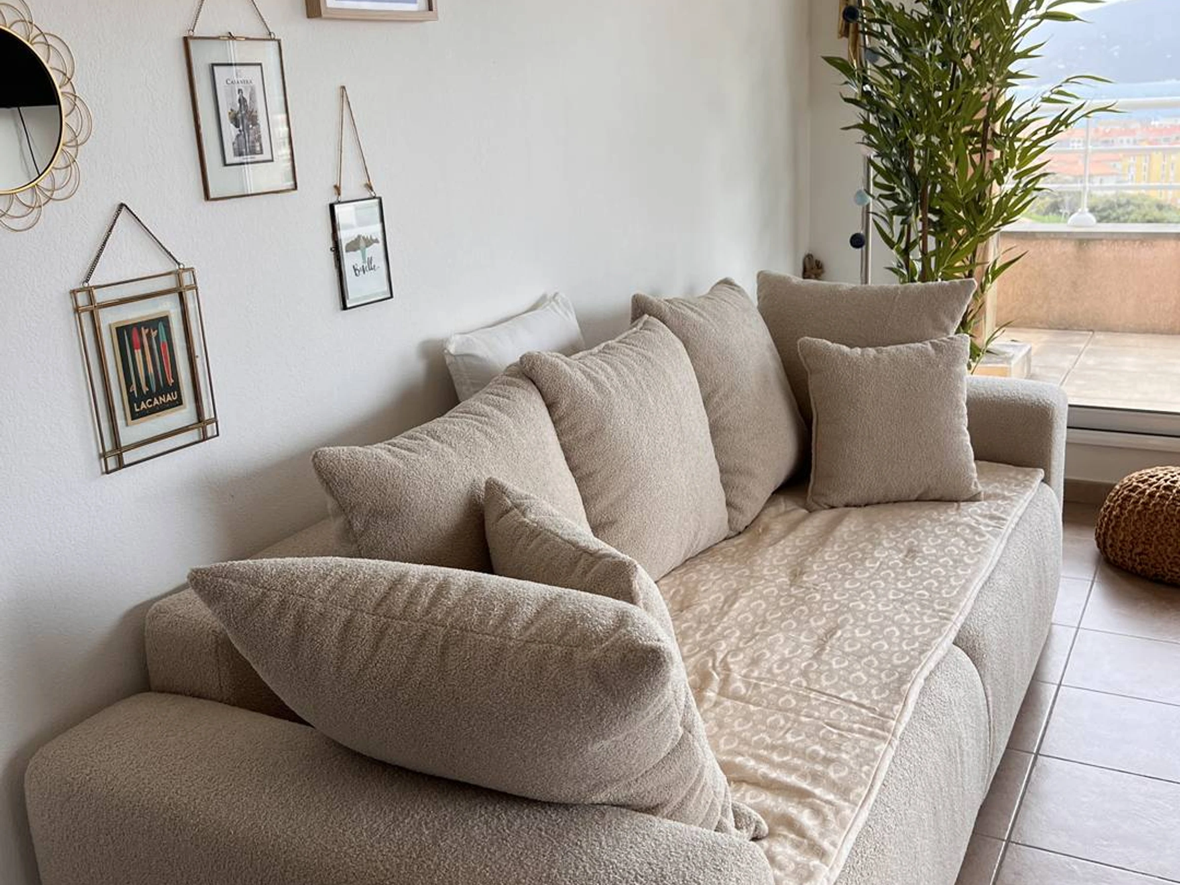The apartment has two bedrooms with 140 cm beds, as well as a sofa bed in the living room. The kitchen is fully fitted and equipped to meet all your needs during your stay. A bathroom completes the interior space. The apartment also has an internet connection and linens provided for optimal comfort.