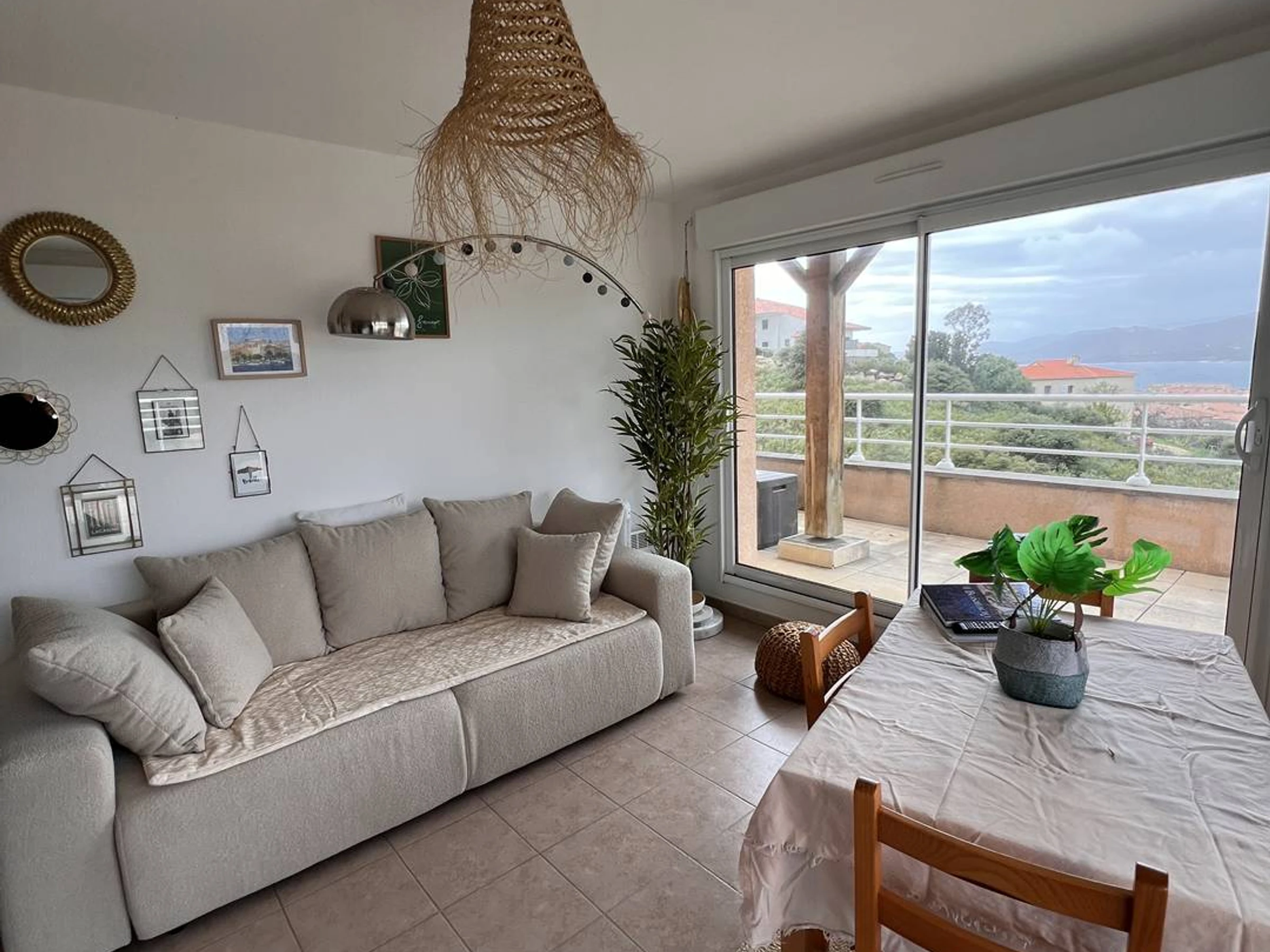 Spacious apartment with breathtaking views of the Gulf of Propriano, ideally located on the heights of the town, between tranquility and proximity. This beautiful, tastefully decorated two-bedroom apartment offers all the necessary comforts for a pleasant stay in Corsica. It can accommodate up to six people, with a supplement of €20 per night per person for more than four people.