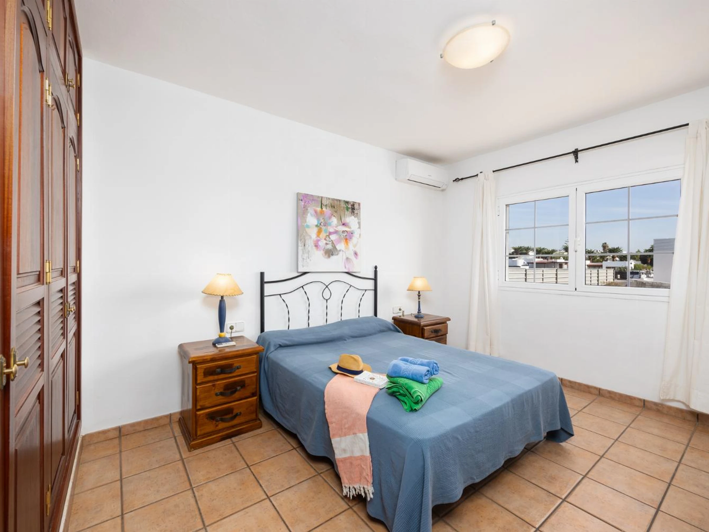 There are 3 bedrooms (1 air conditioned double with en suite and 2