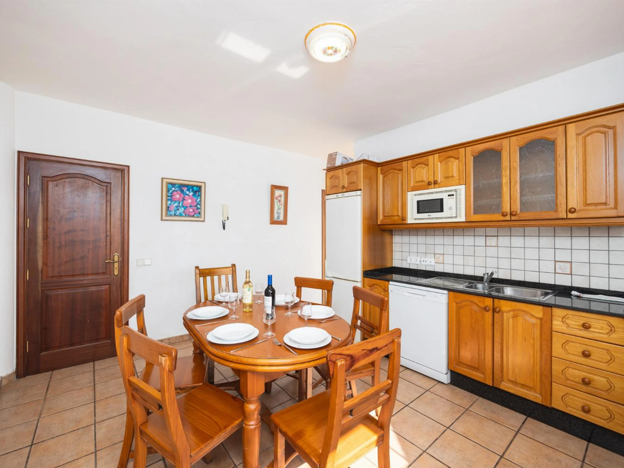 dishwasher, microwave, refrigerator, stove/hob and oven. There is also