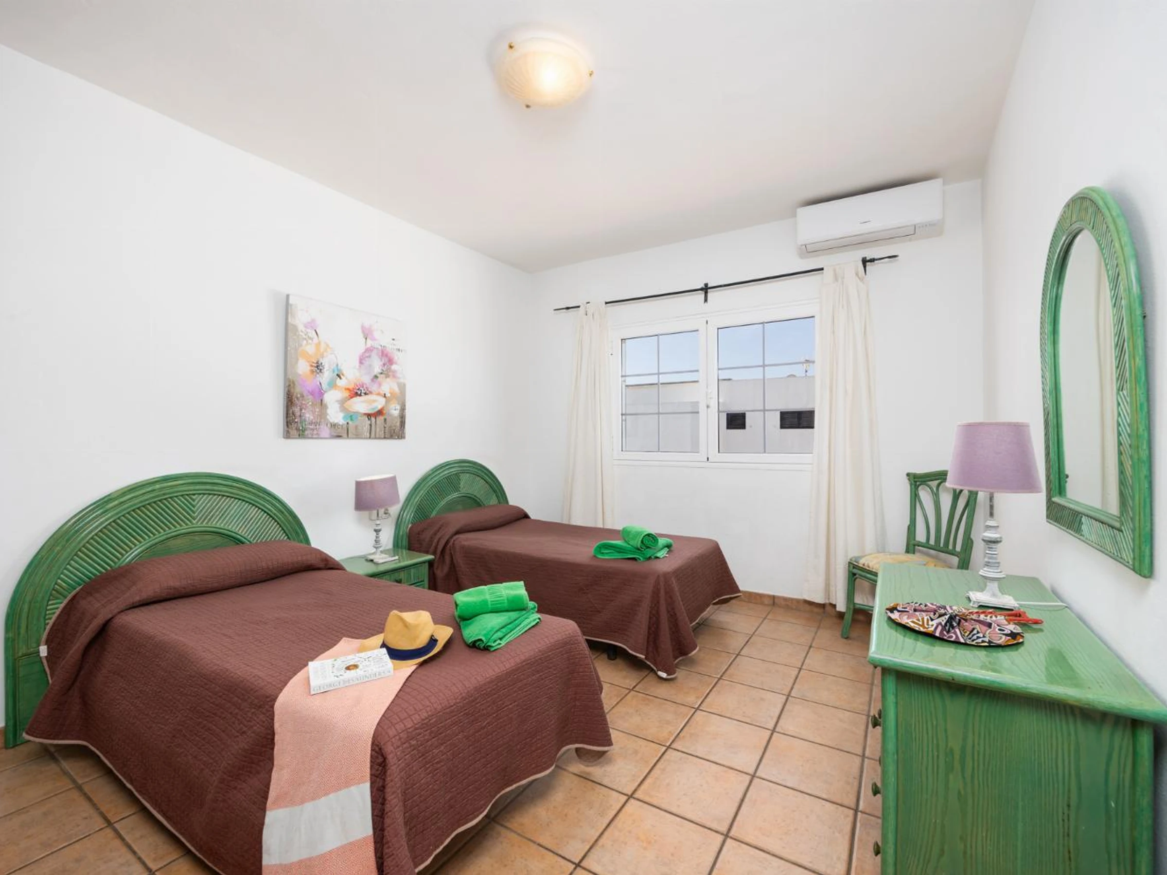 Bedroom 2 is air-conditioned with 2 single beds.