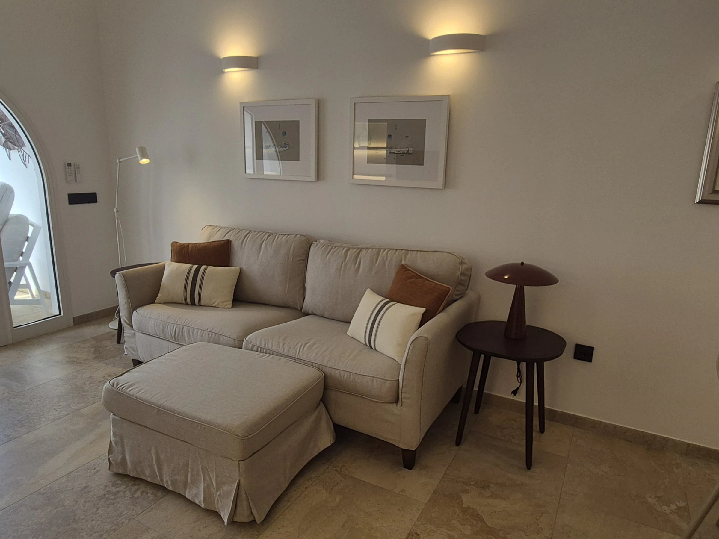Upon arrival, you will find a welcome package that includes water, milk, coffee and tea, sweet and savoury biscuits, half a bottle of local wine and a small cleaning kit.