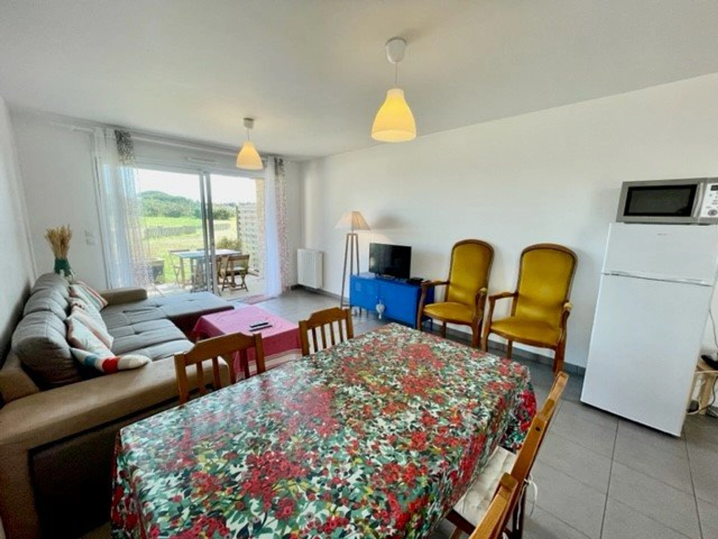 - living room with TV and terrace access,
