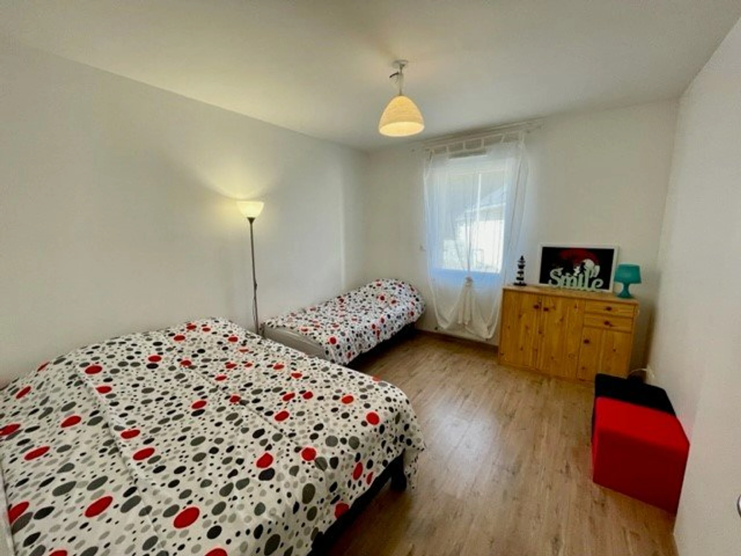 - bedroom with bed of 140cm large and single bed of 90cm large,