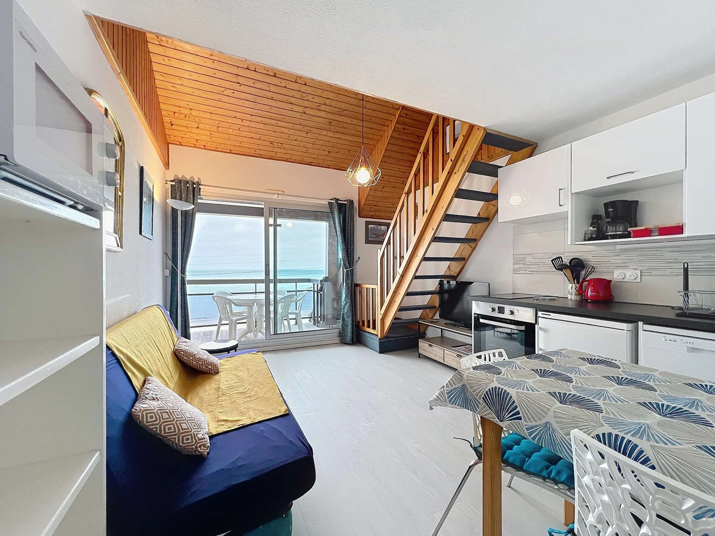apartment 2 rooms with mezzanine facing the sea for 4 people of about 45m² located on the 2nd and top floor of the Residence Front De Mer, door n°32.