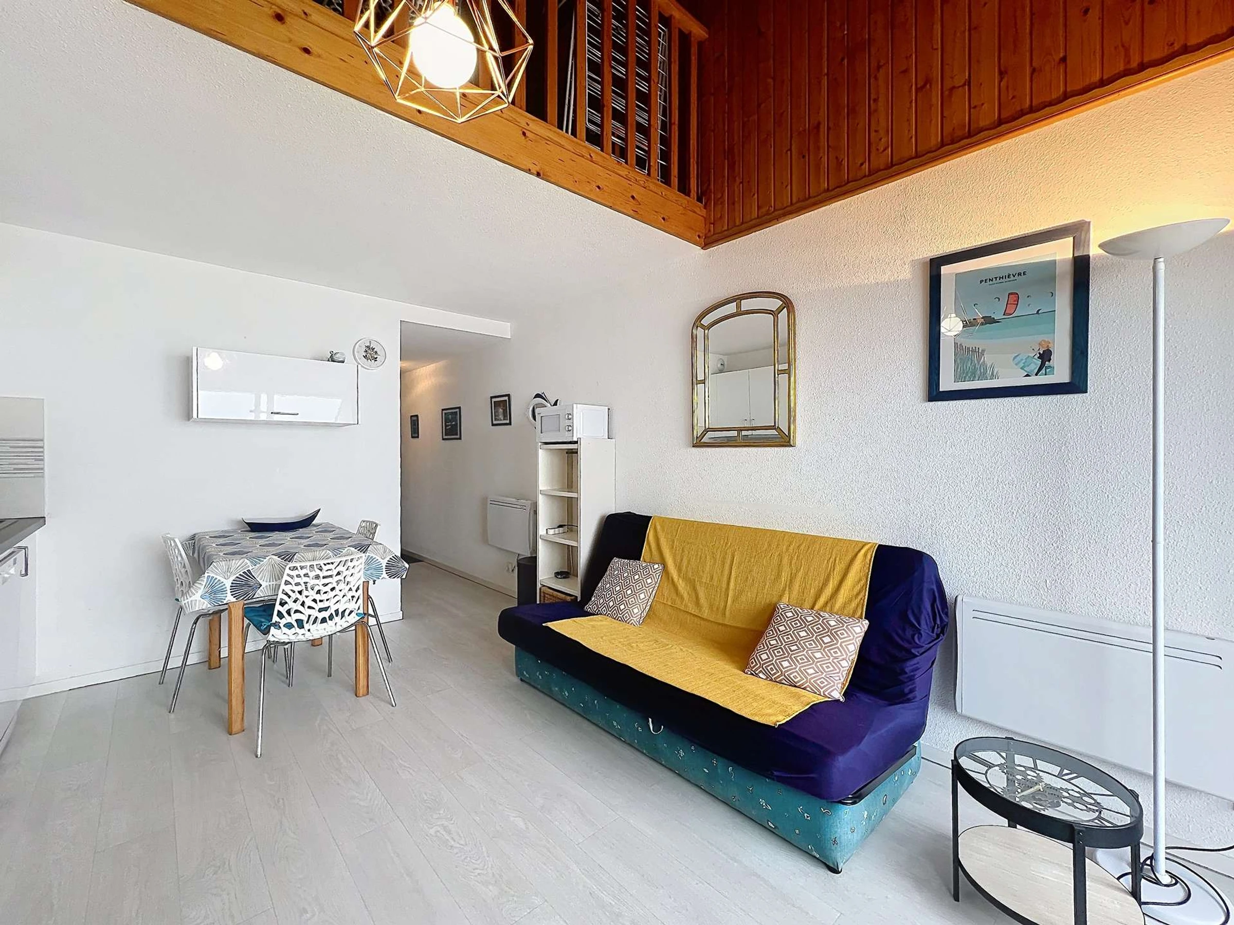- A mezzanine with a 160 cm bed and a 140 cm sofa bed.