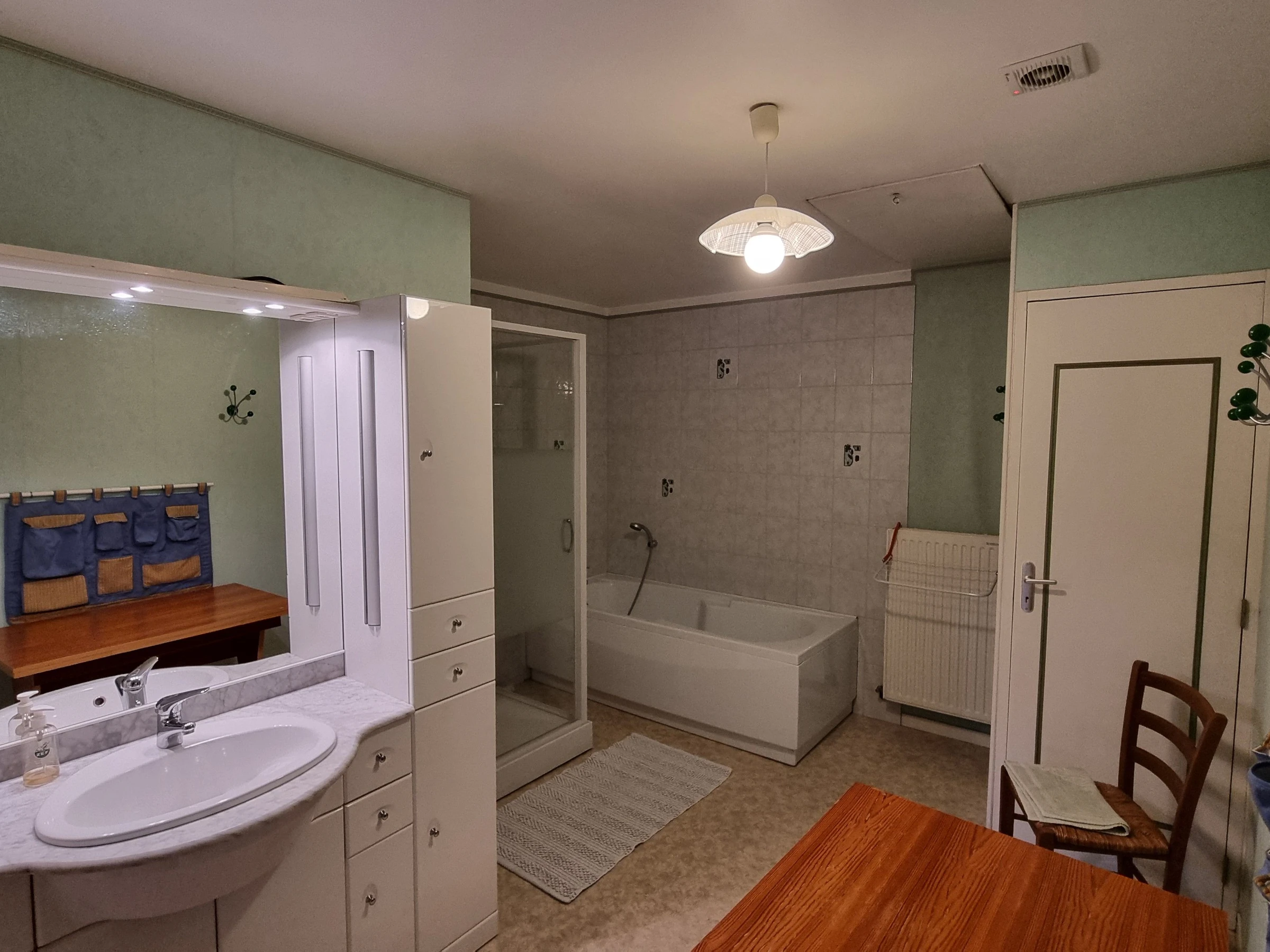 Ground floor: kitchen (freezer), living room, lounge (TV), games room, veranda, shower room (walk-in shower 95x220), separate WC.