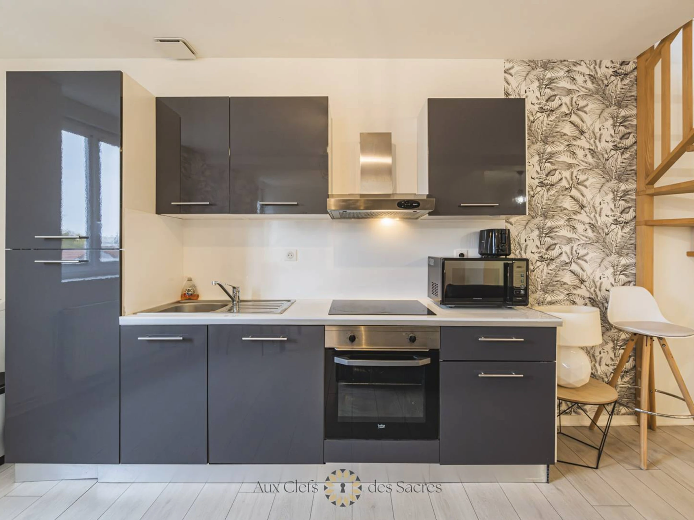 Modern open kitchen: The kitchen, open to the living room, is fully equipped and ready to welcome your culinary talents. Its contemporary and functional design is perfect for cooking with ease while enjoying the company of your guests.